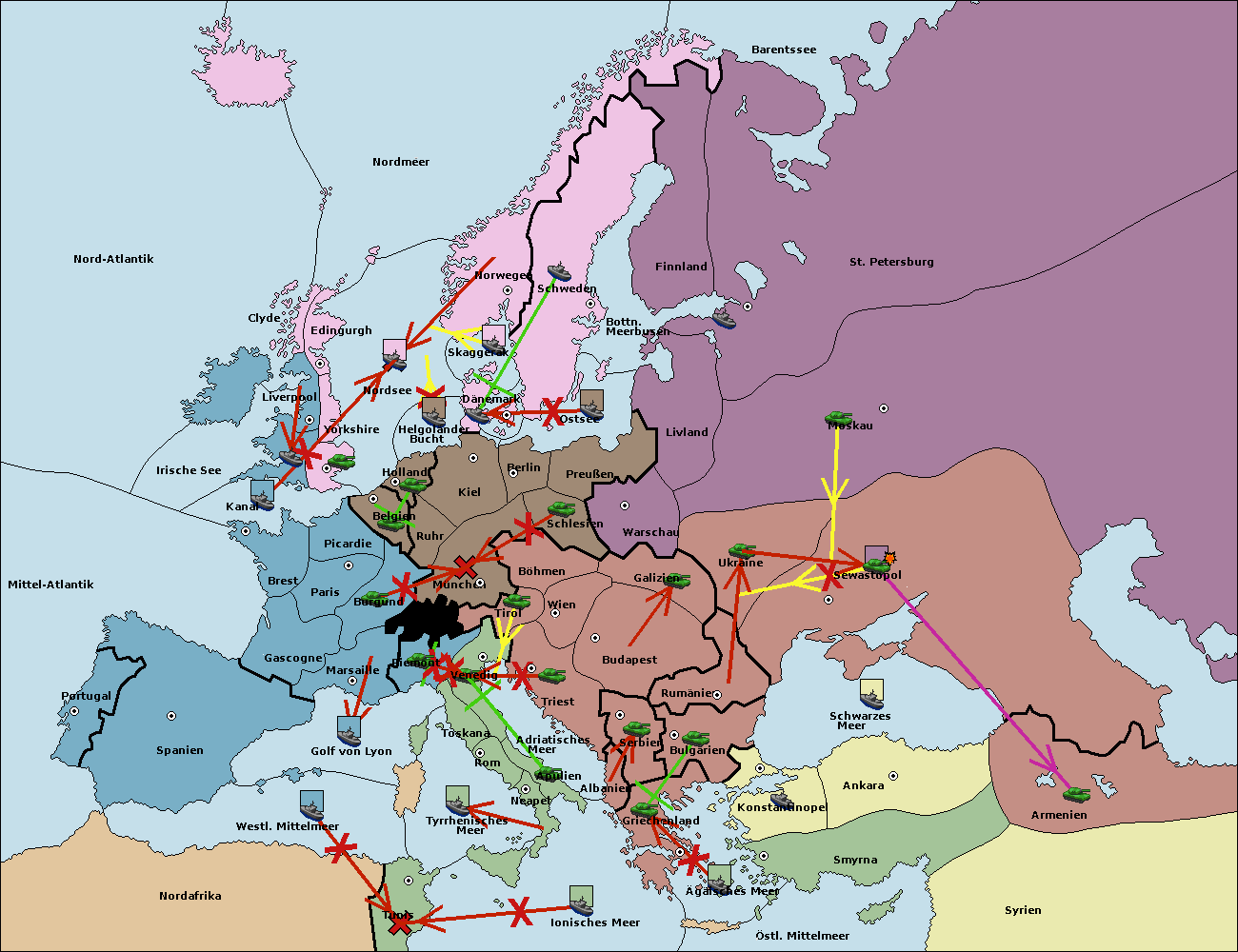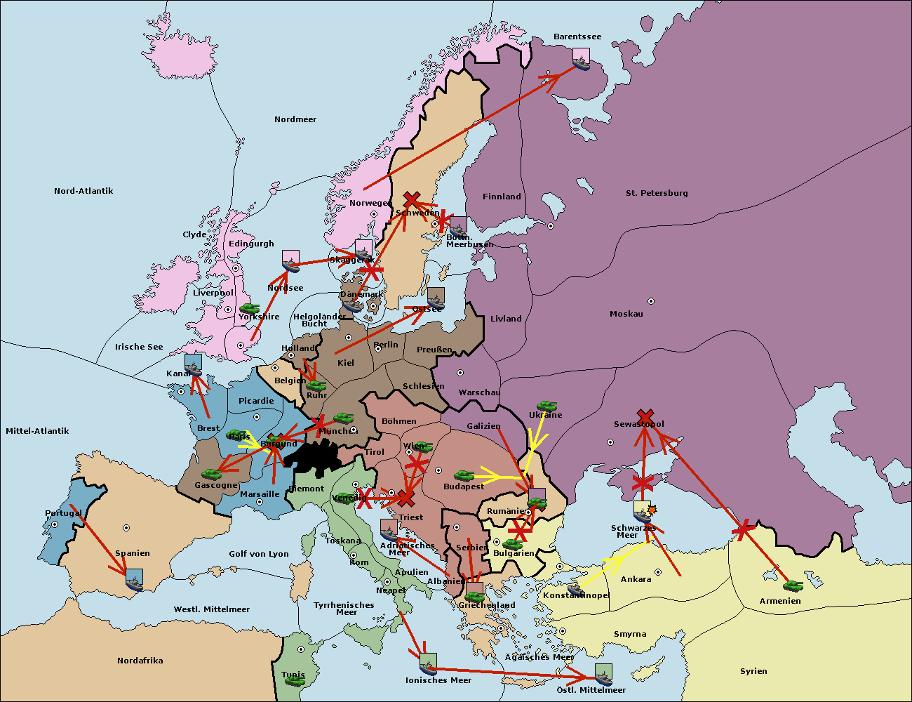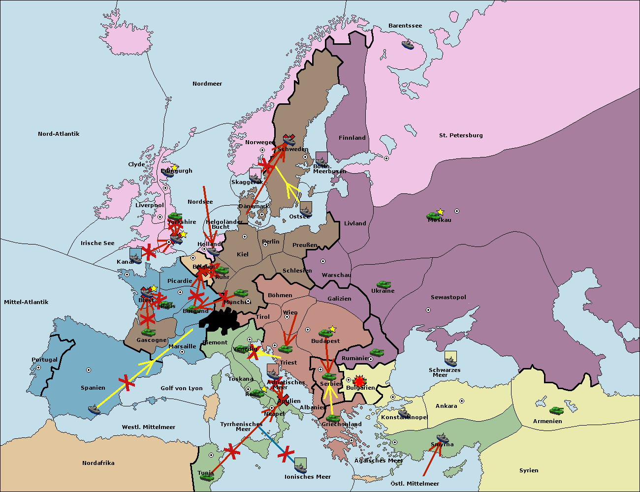 • Die Armee in Bulgarien wird zerstörtFlotte in Bulgarien gebaut.
