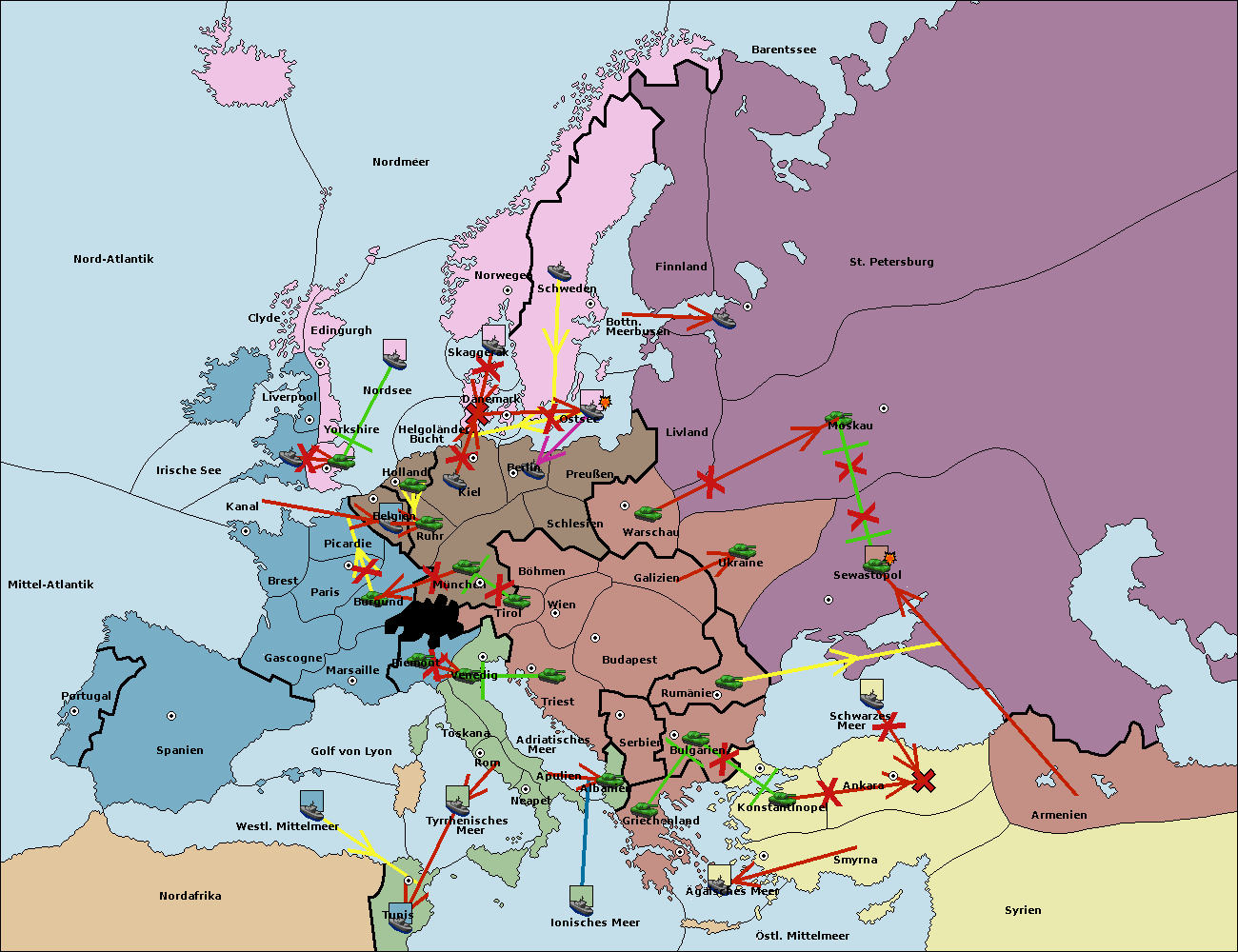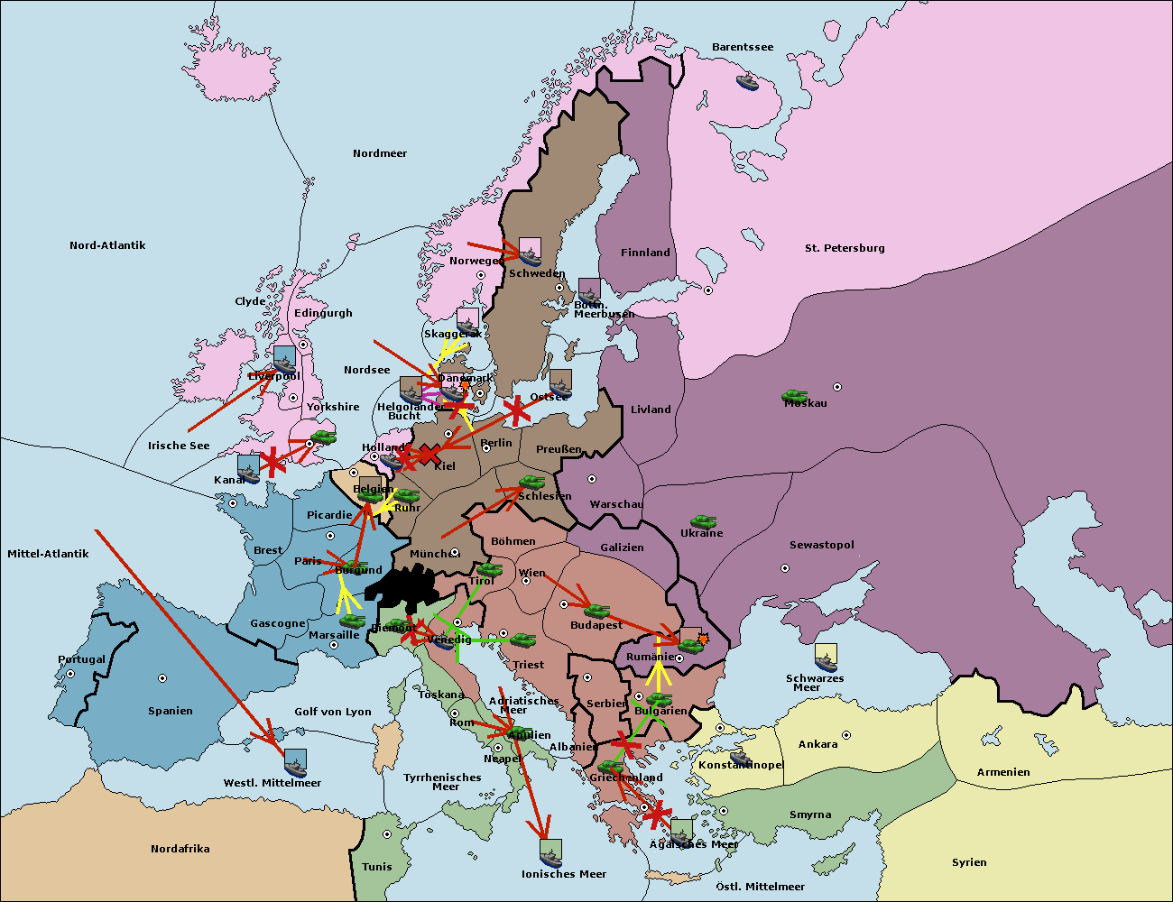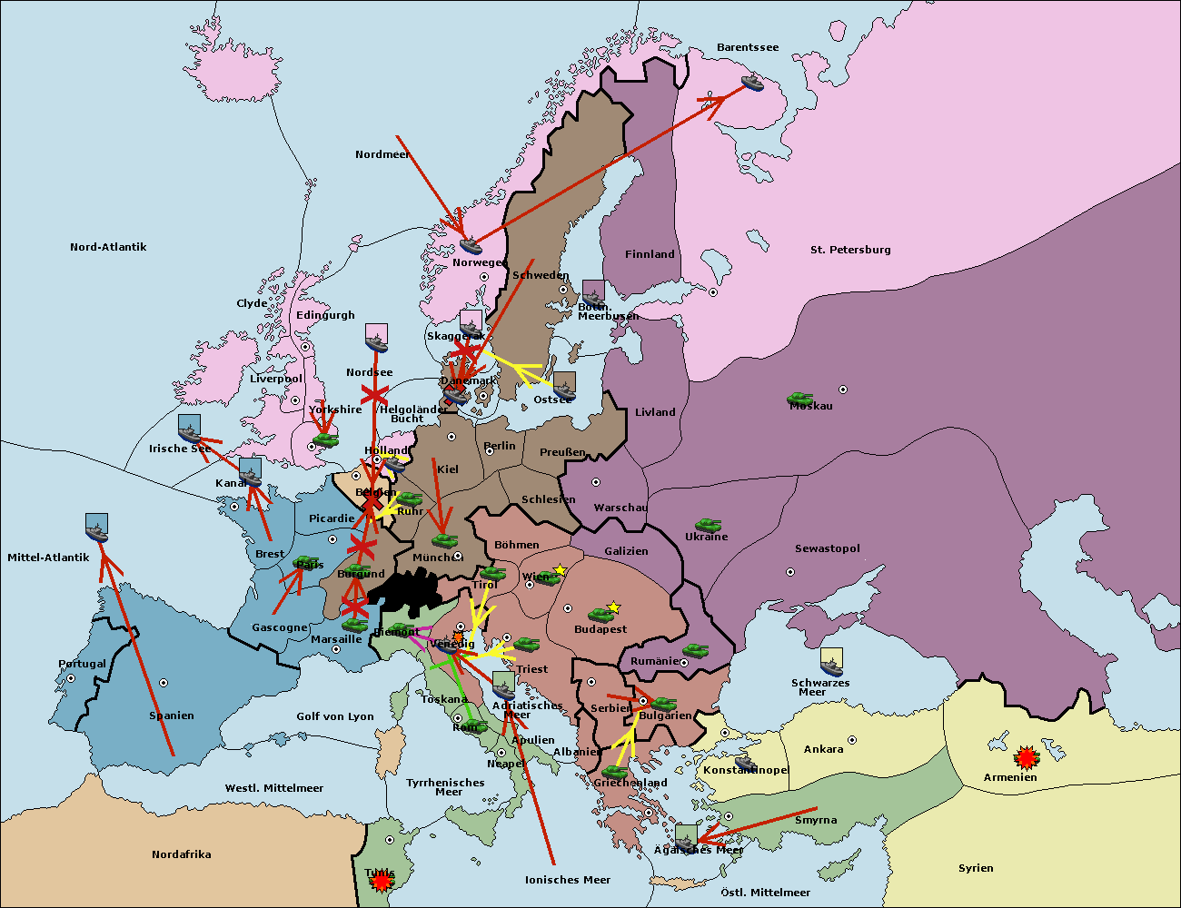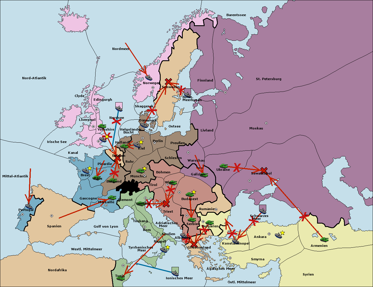 • Die Armee in Bulgarien wird zerstörtFlotte in Bulgarien gebaut.
