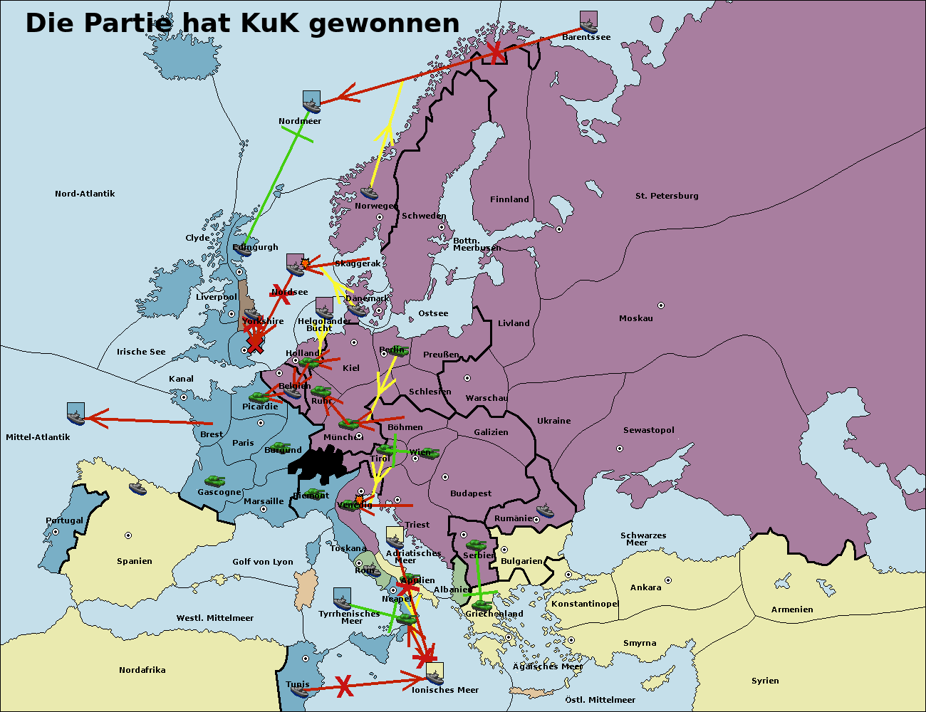 Die Partie hat KuK (1463 D / R100) gewonnen