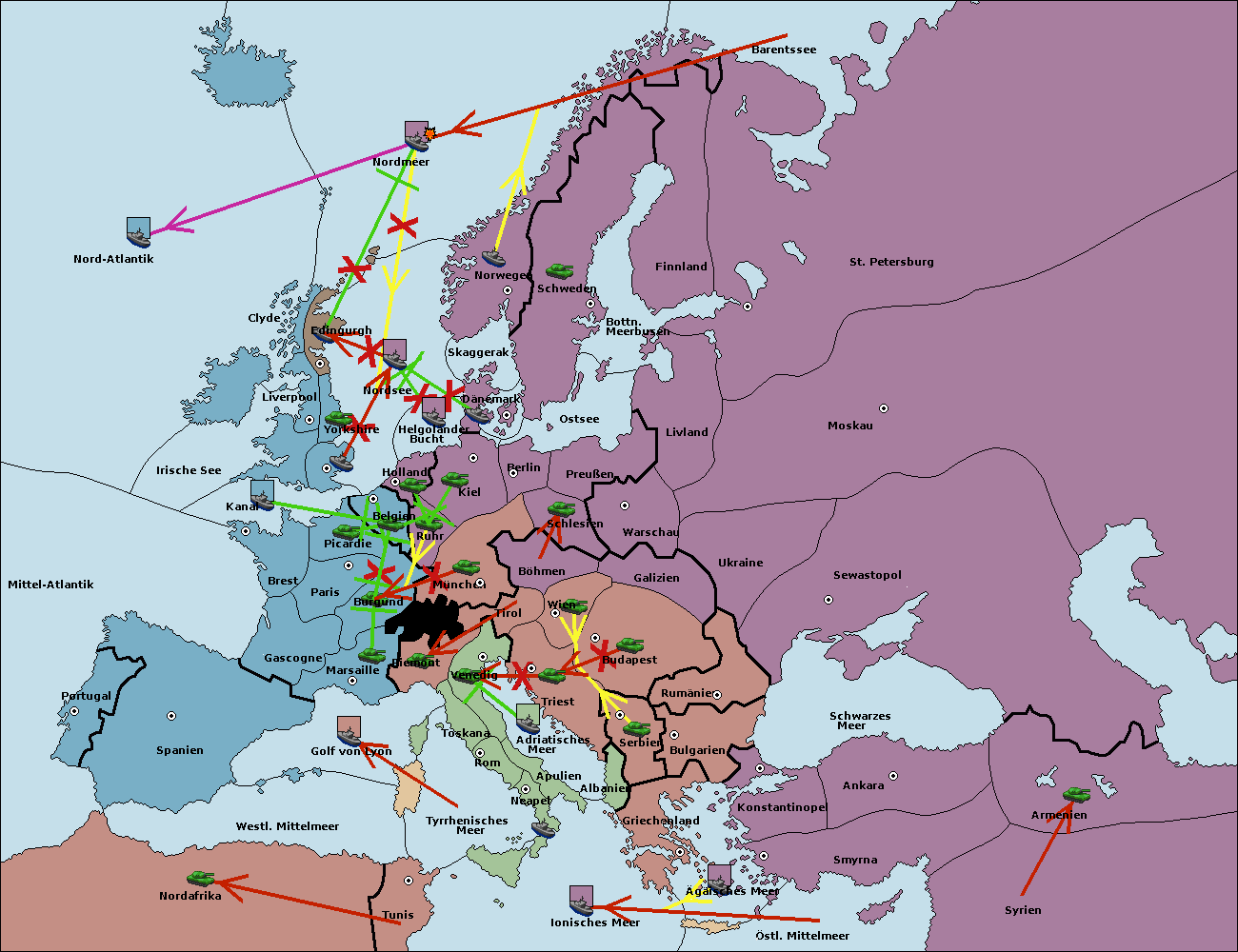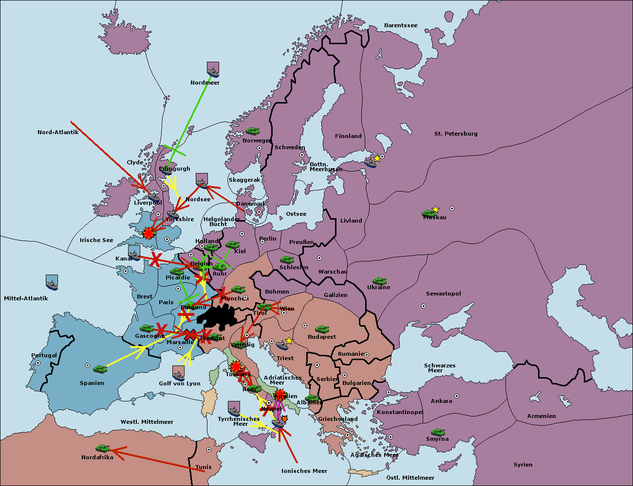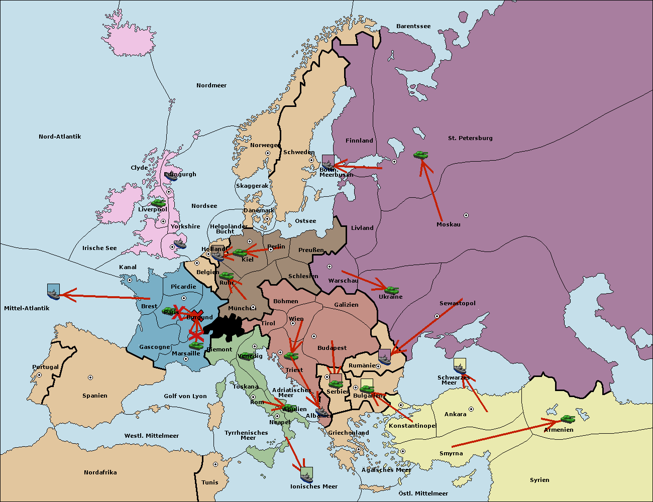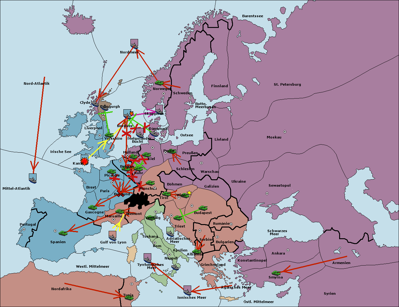 • Die Armee in Belgien support move nach Burgund von München. (gescheitert)