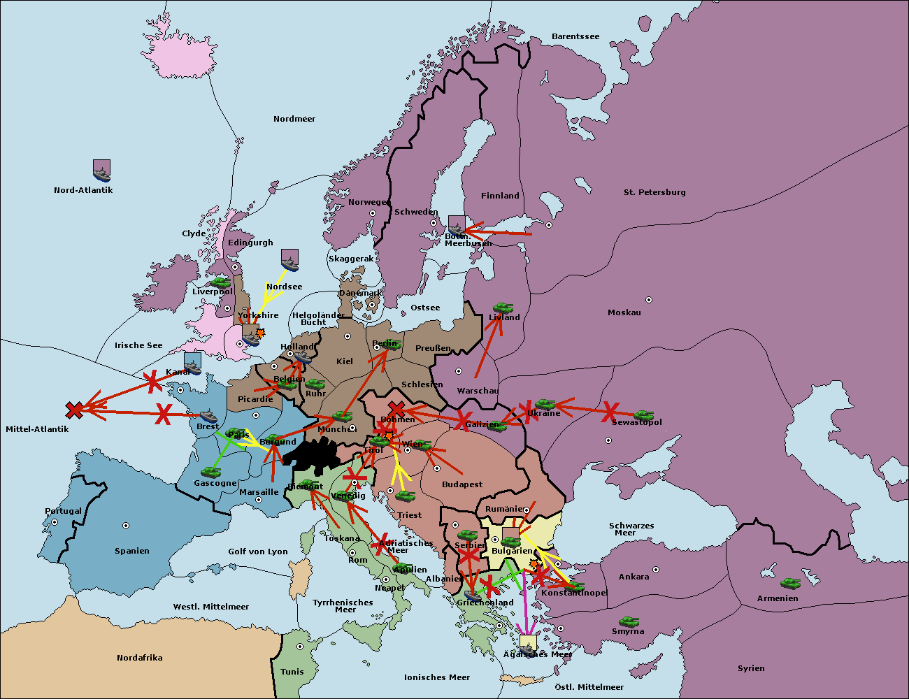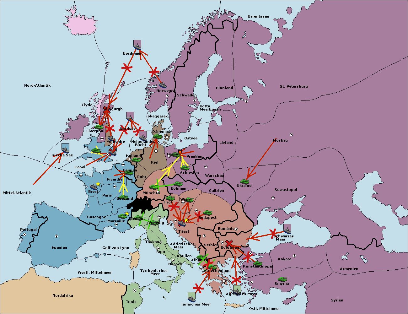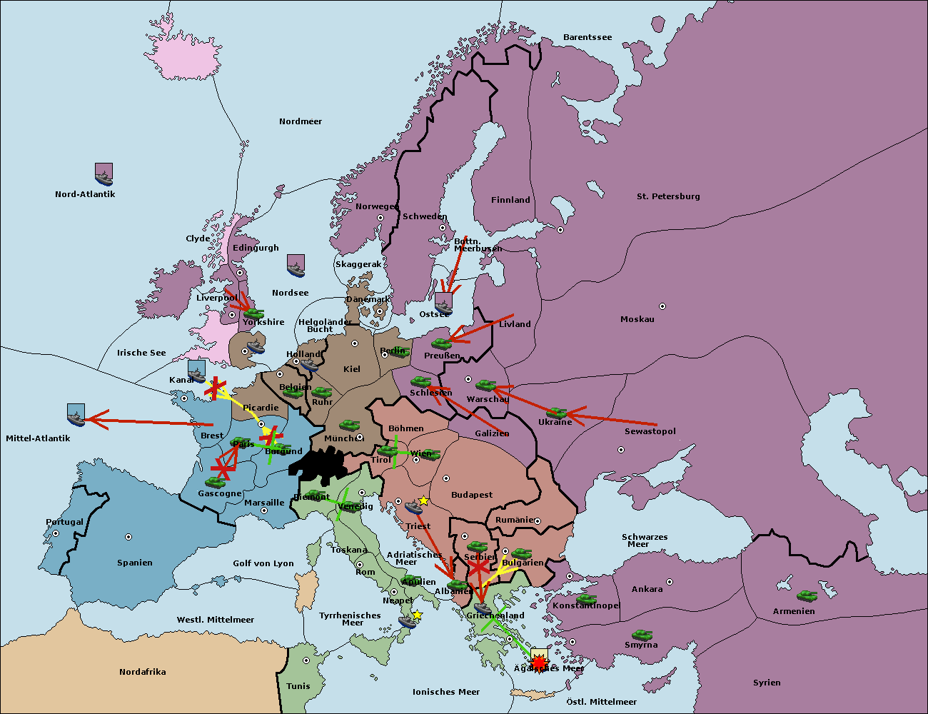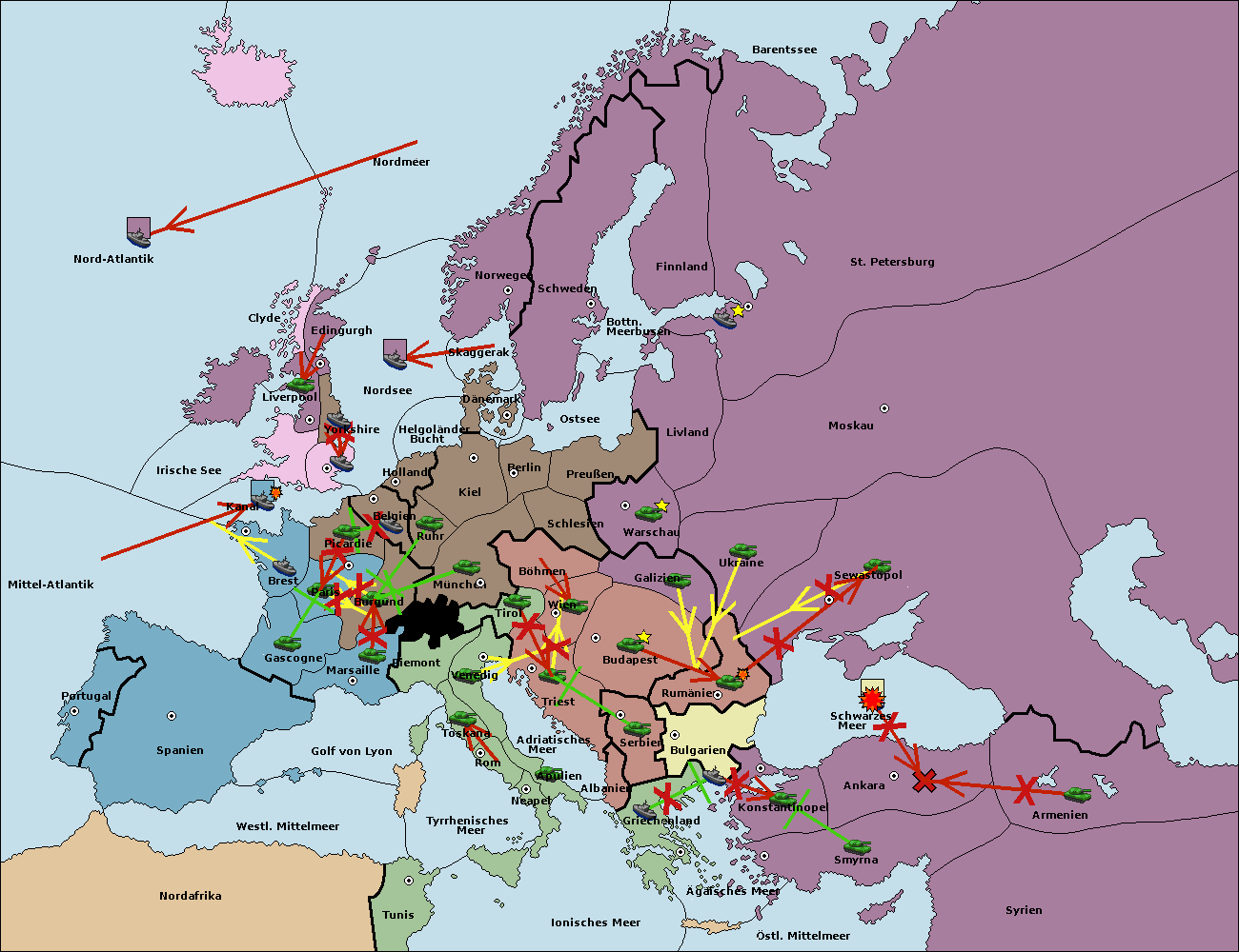 • Die Flotte in Bulgarien (Südküste) wird zerstörtFlotte in Bulgarien (Südküste) gebaut.