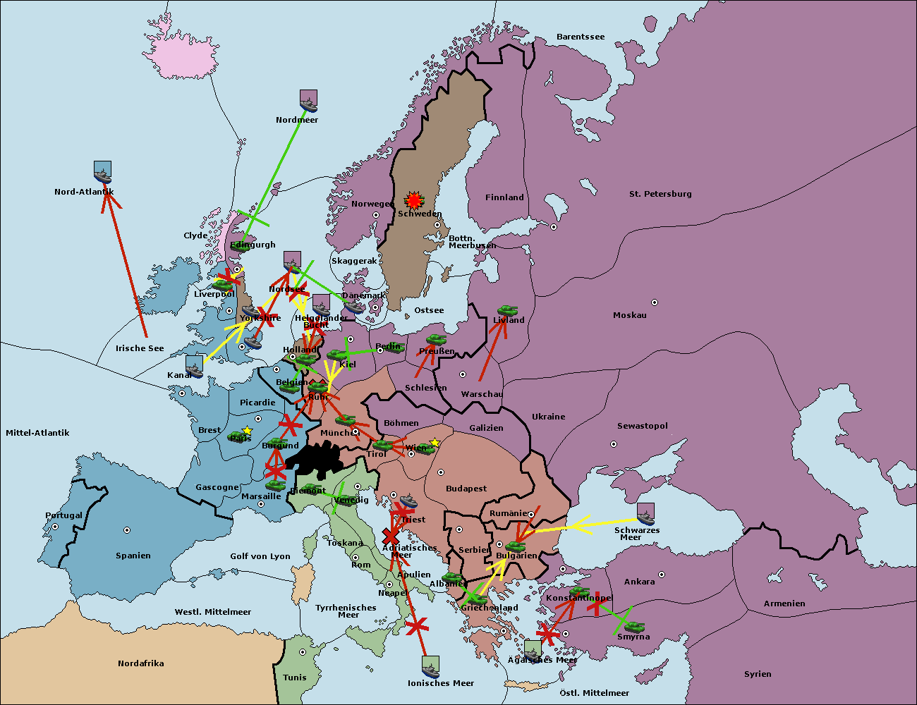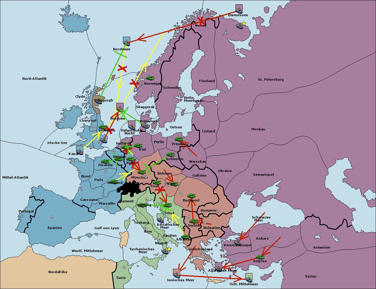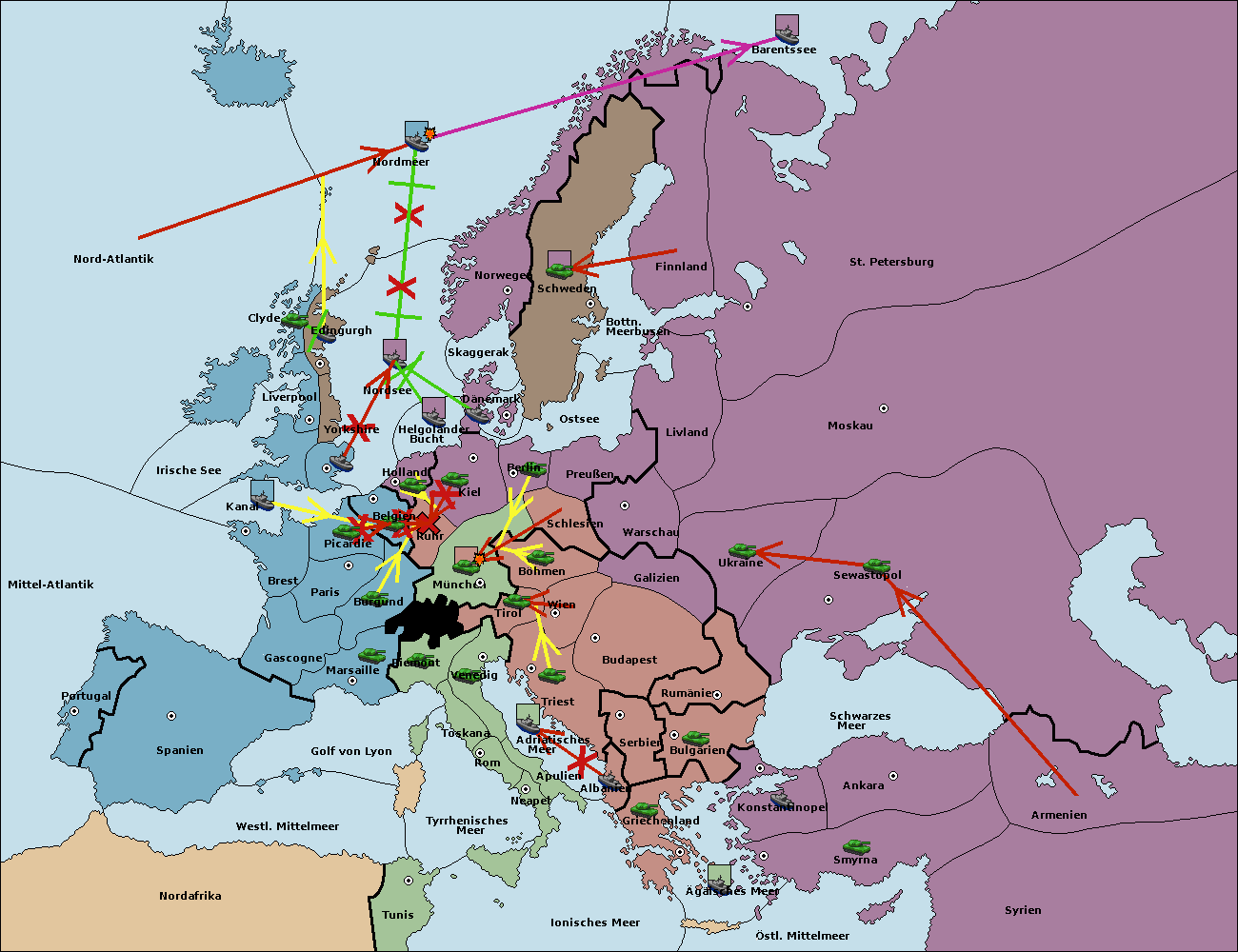• Die Flotte in St. Petersburg (Nordküste) move nach Barentssee.