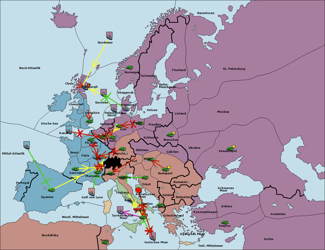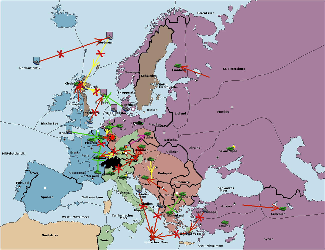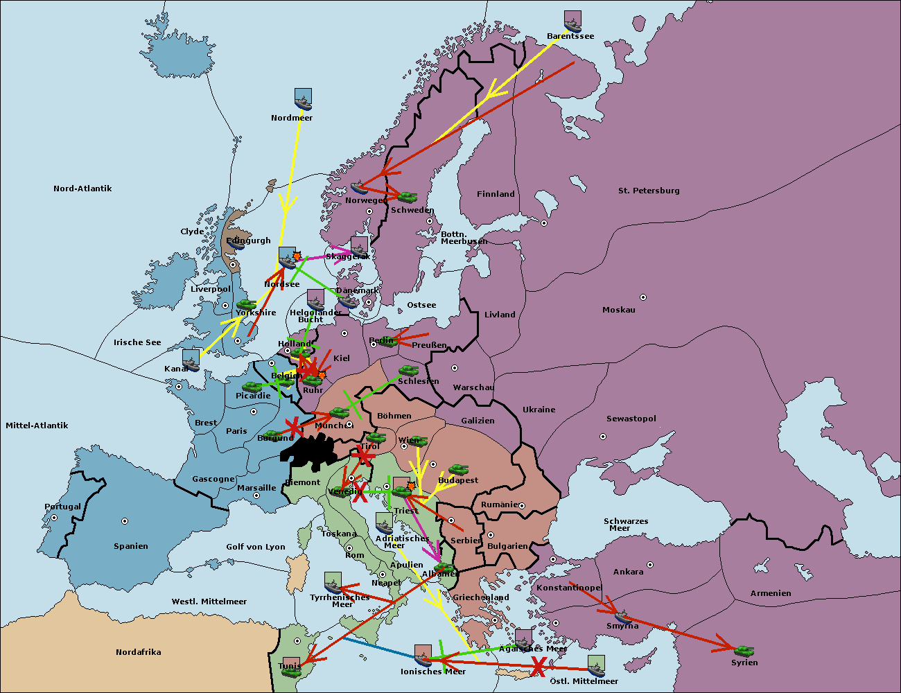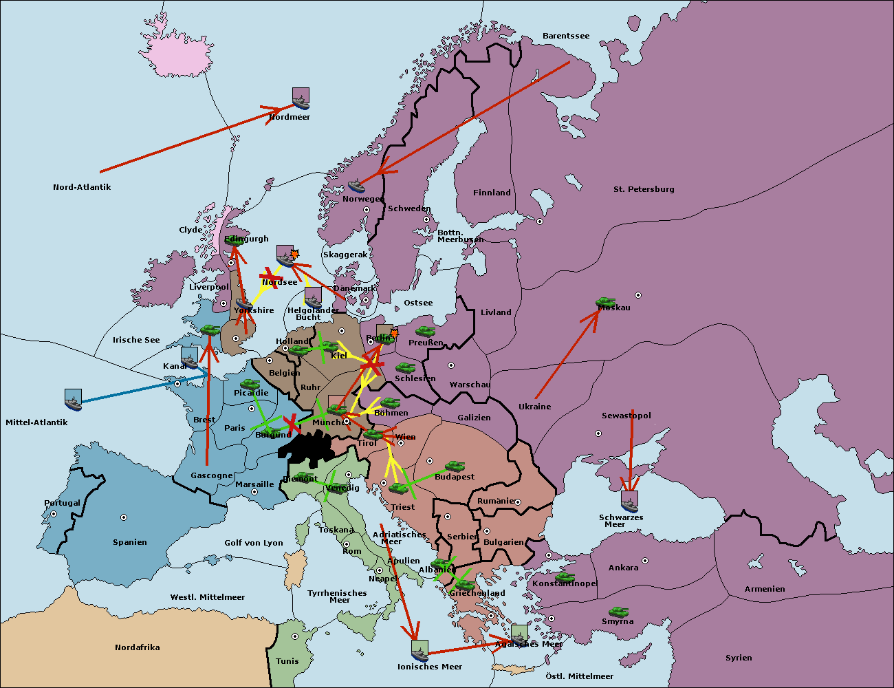 • Die Flotte in St. Petersburg (Nordküste) move nach Barentssee.