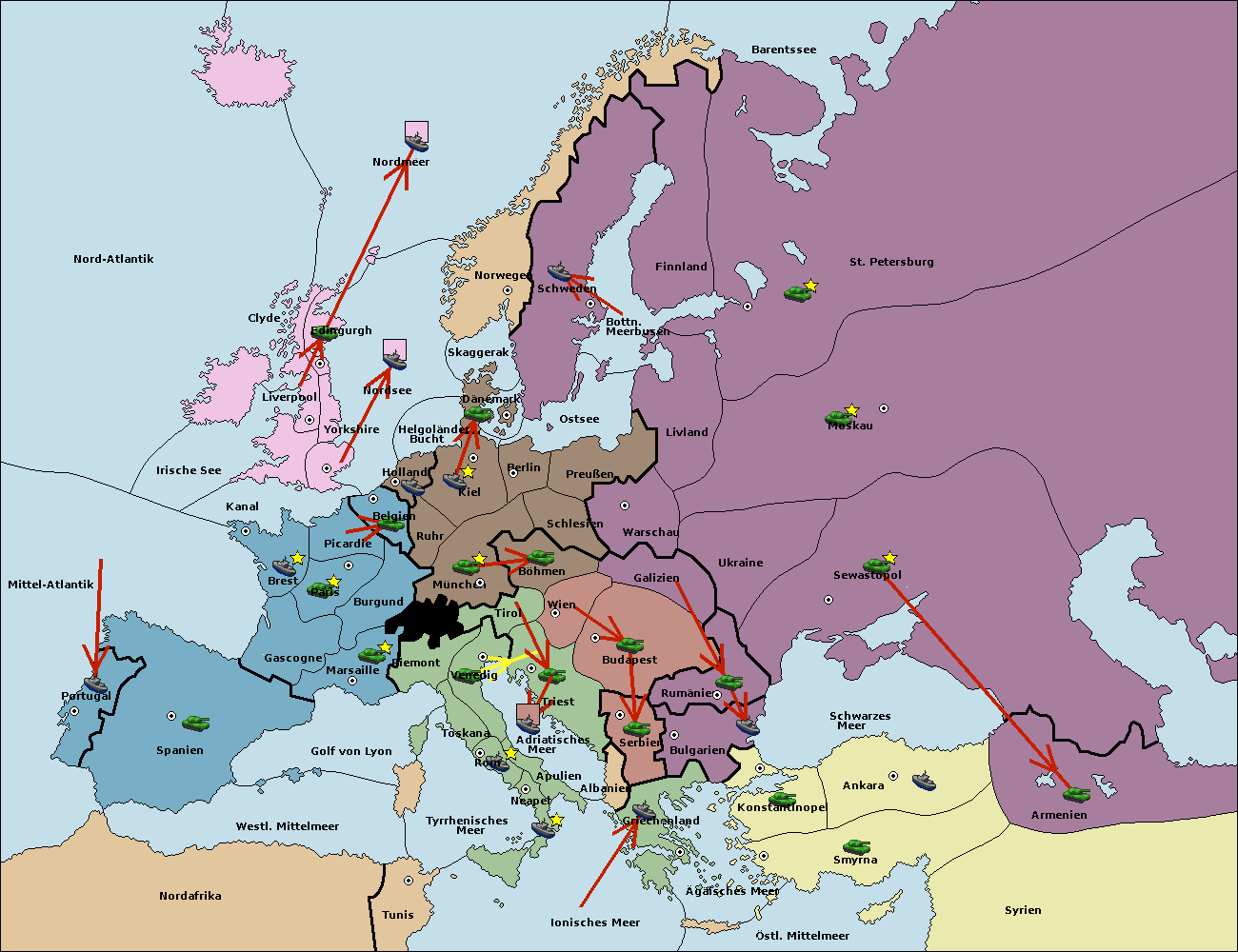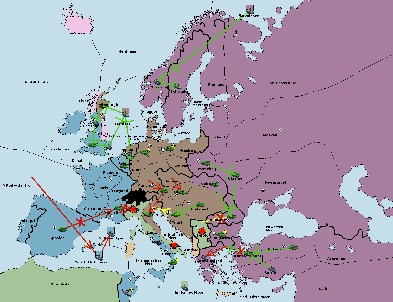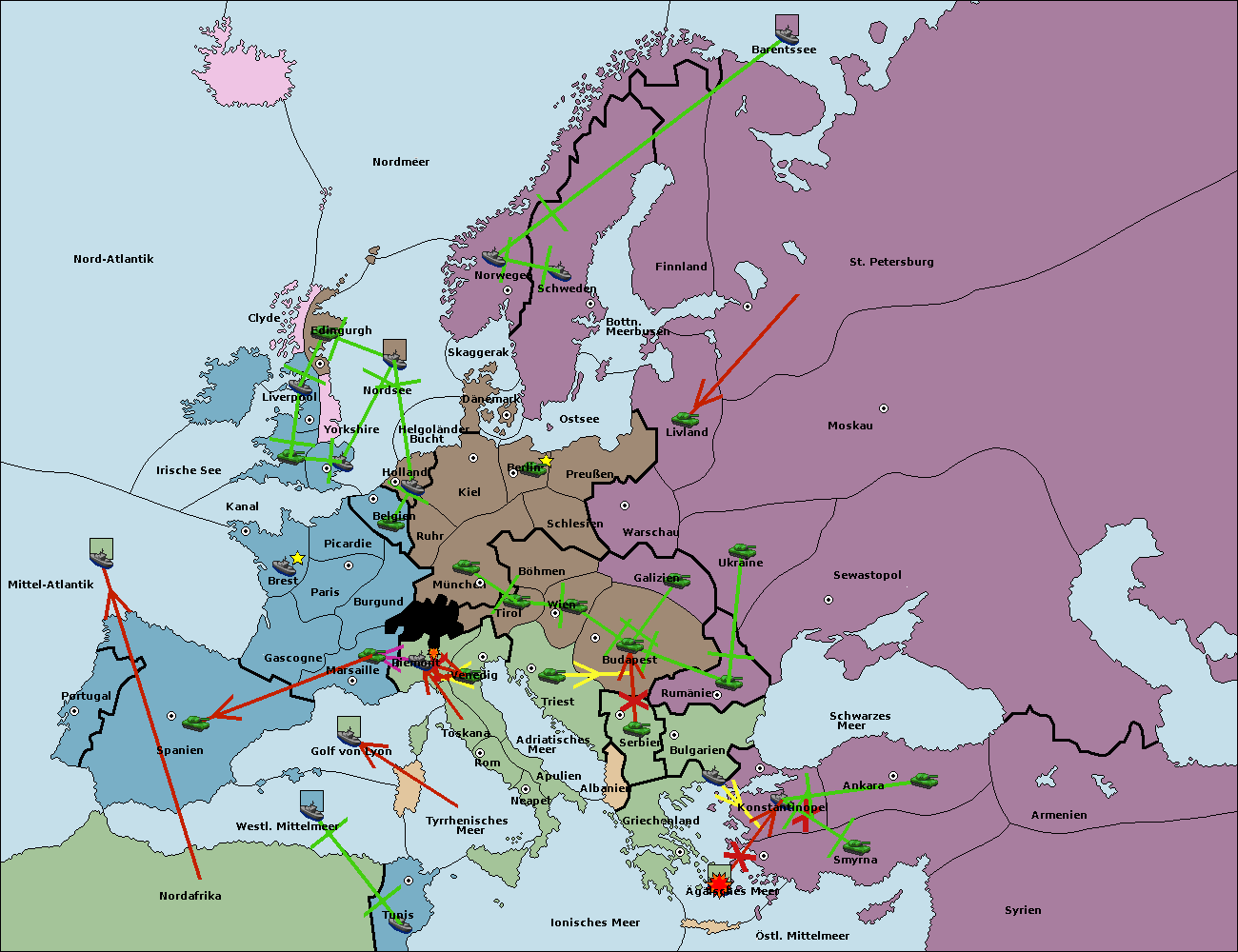 • Die Flotte in Bulgarien (Südküste) move nach Griechenland.