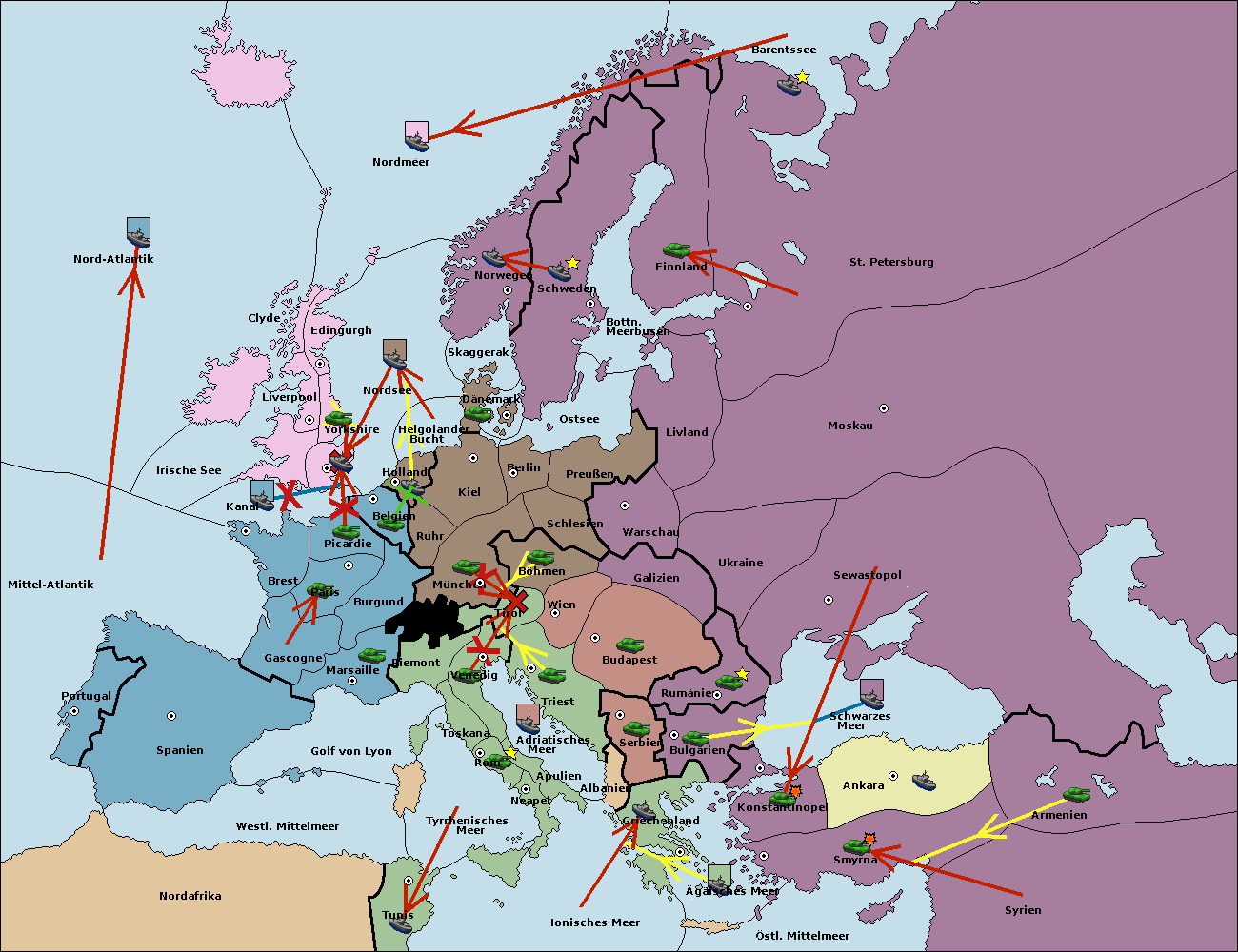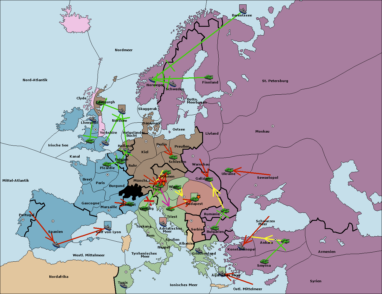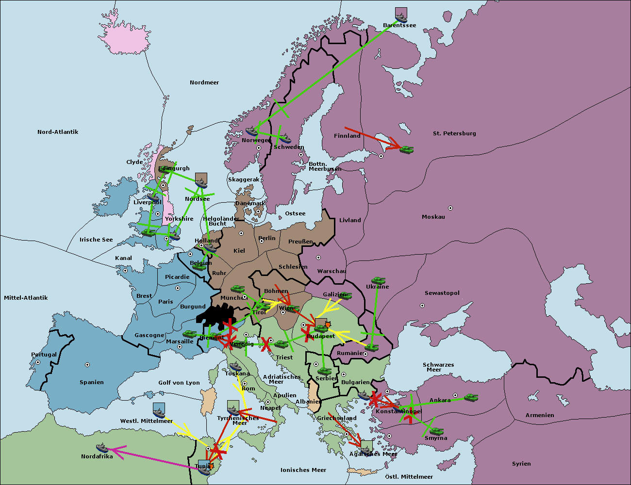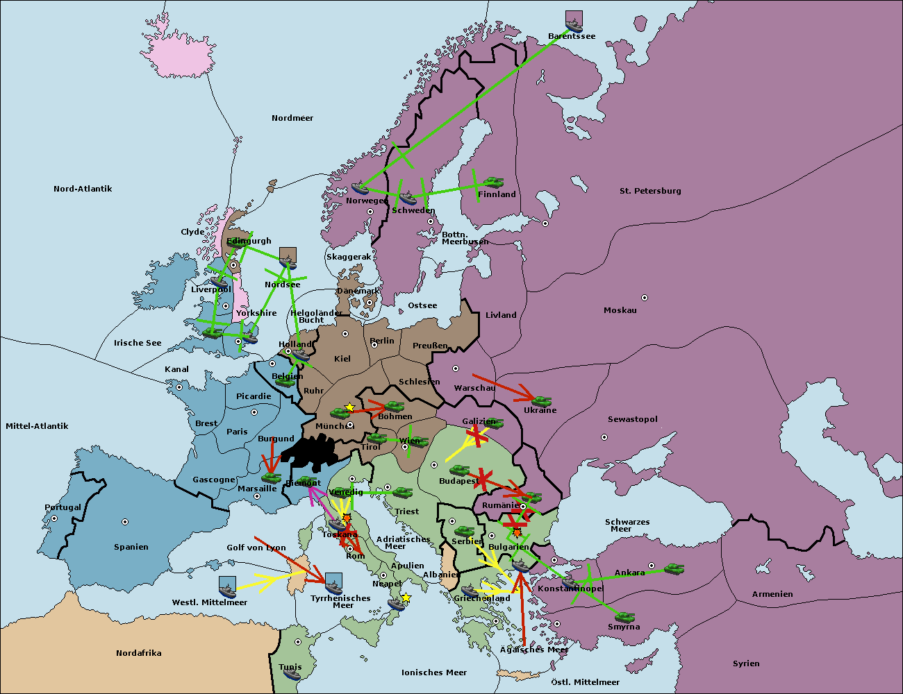 • Die Flotte in Bulgarien (Südküste) move nach Griechenland.