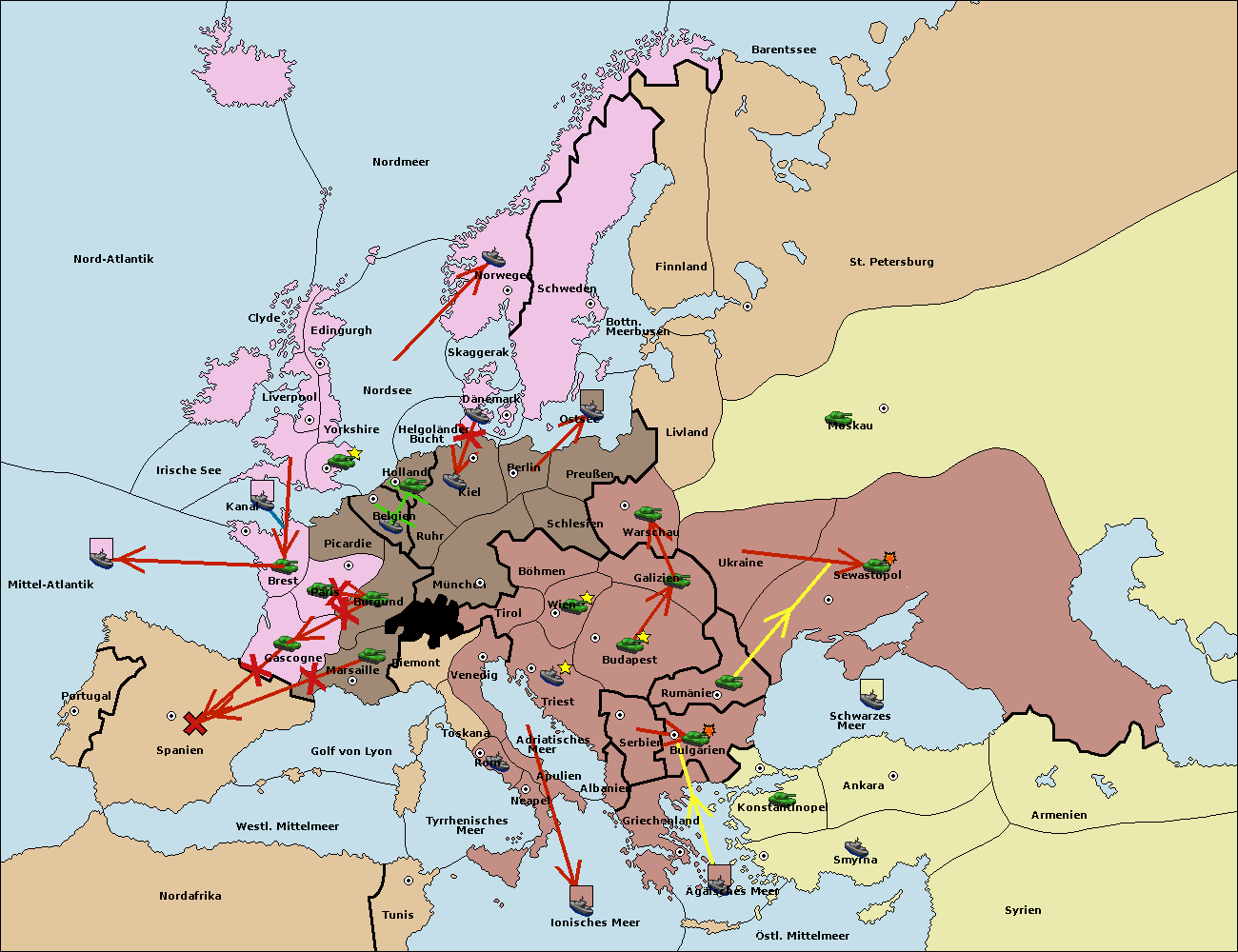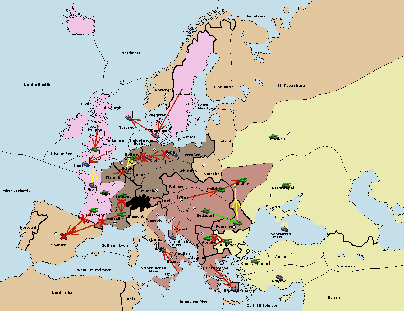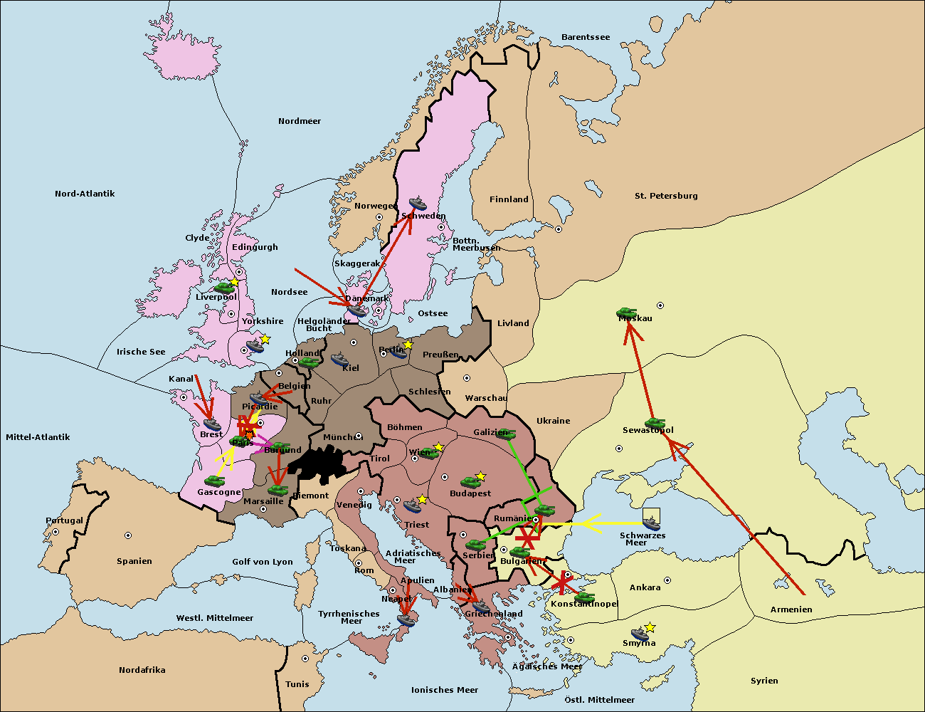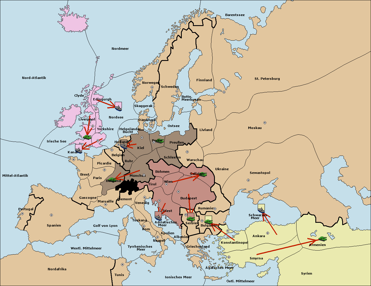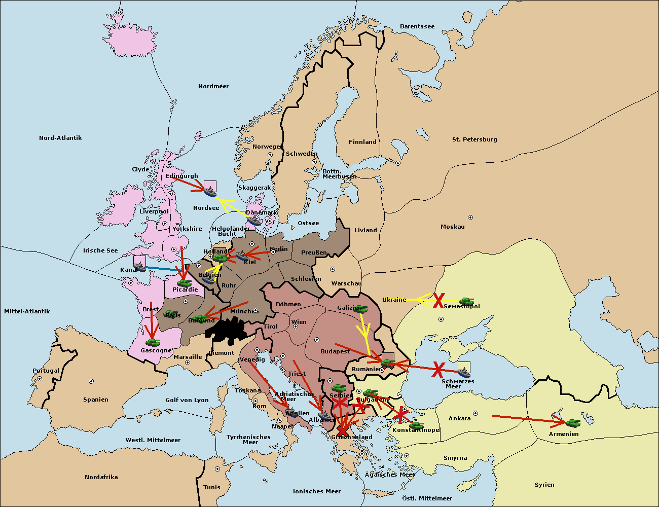 • Die Armee in Bulgarien wird zerstörtFlotte in Bulgarien gebaut.