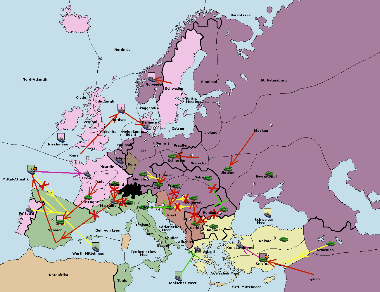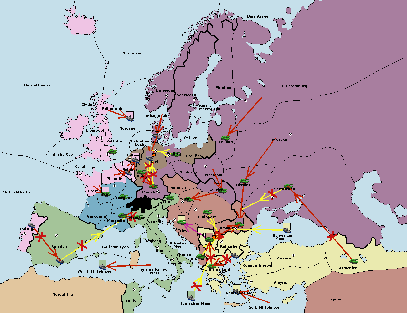 • Die Flotte in Nord Afrika support move nach Tunis von westl. Mittelmeer.