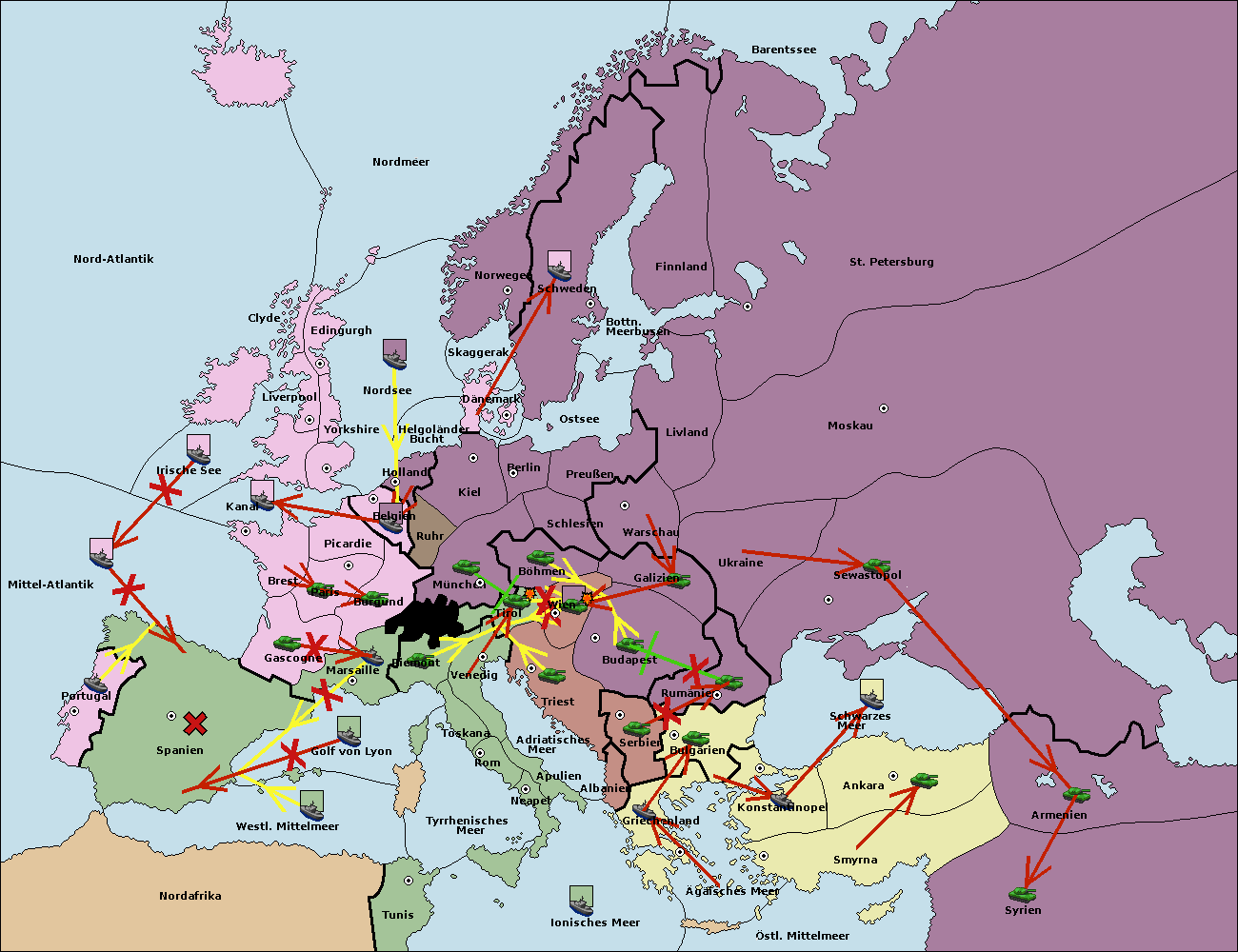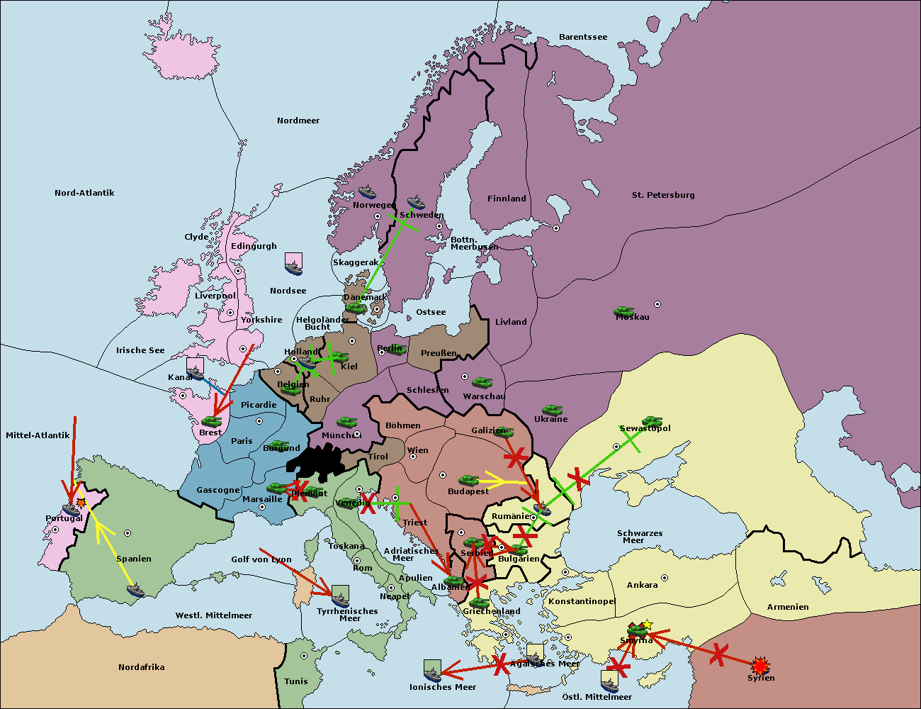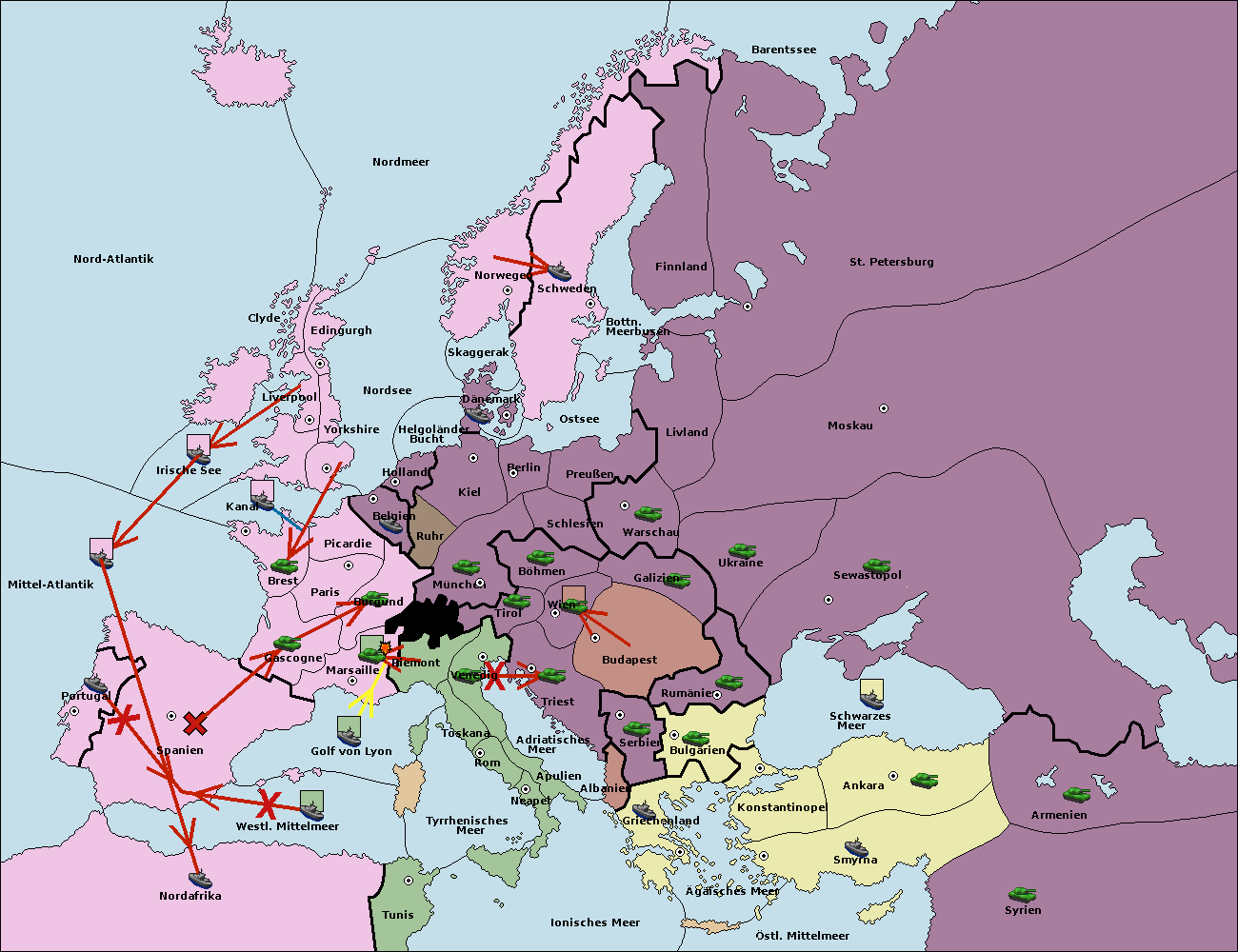 • Die Flotte in Nord Afrika move nach Tunis. (gescheitert)