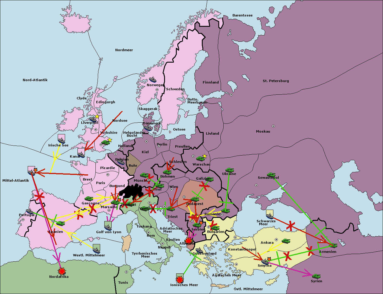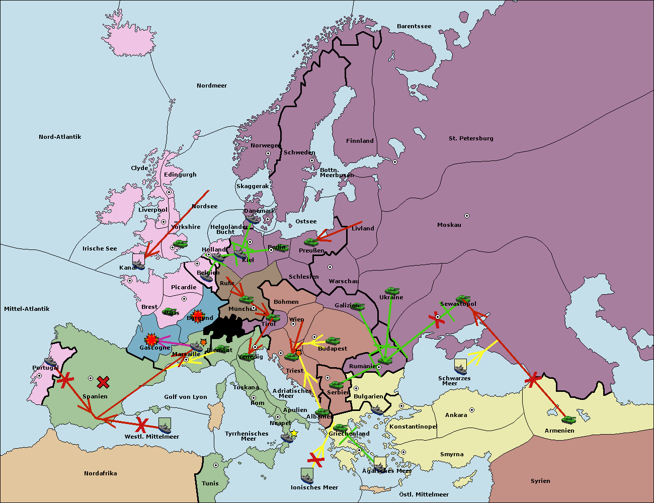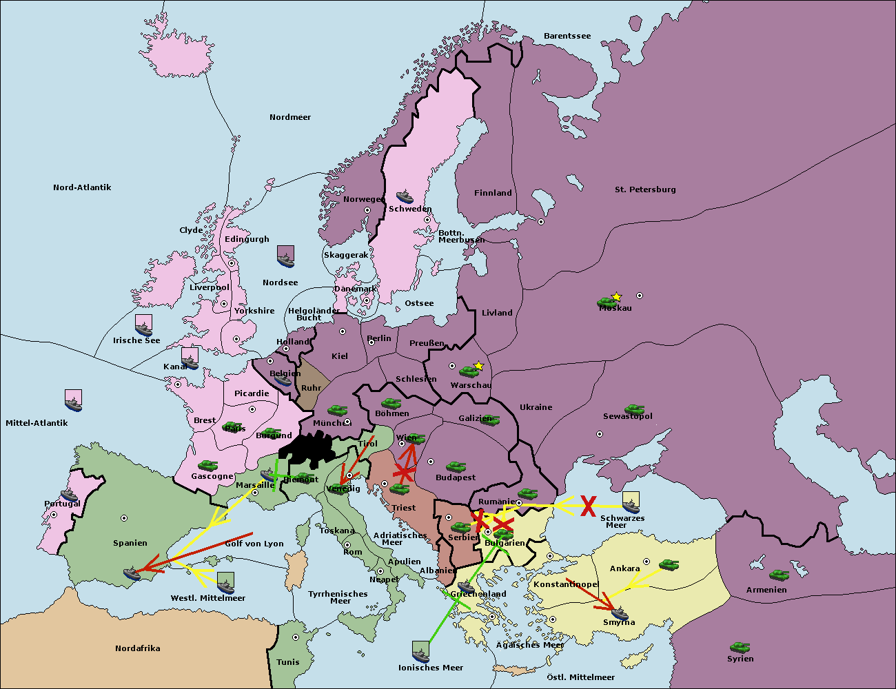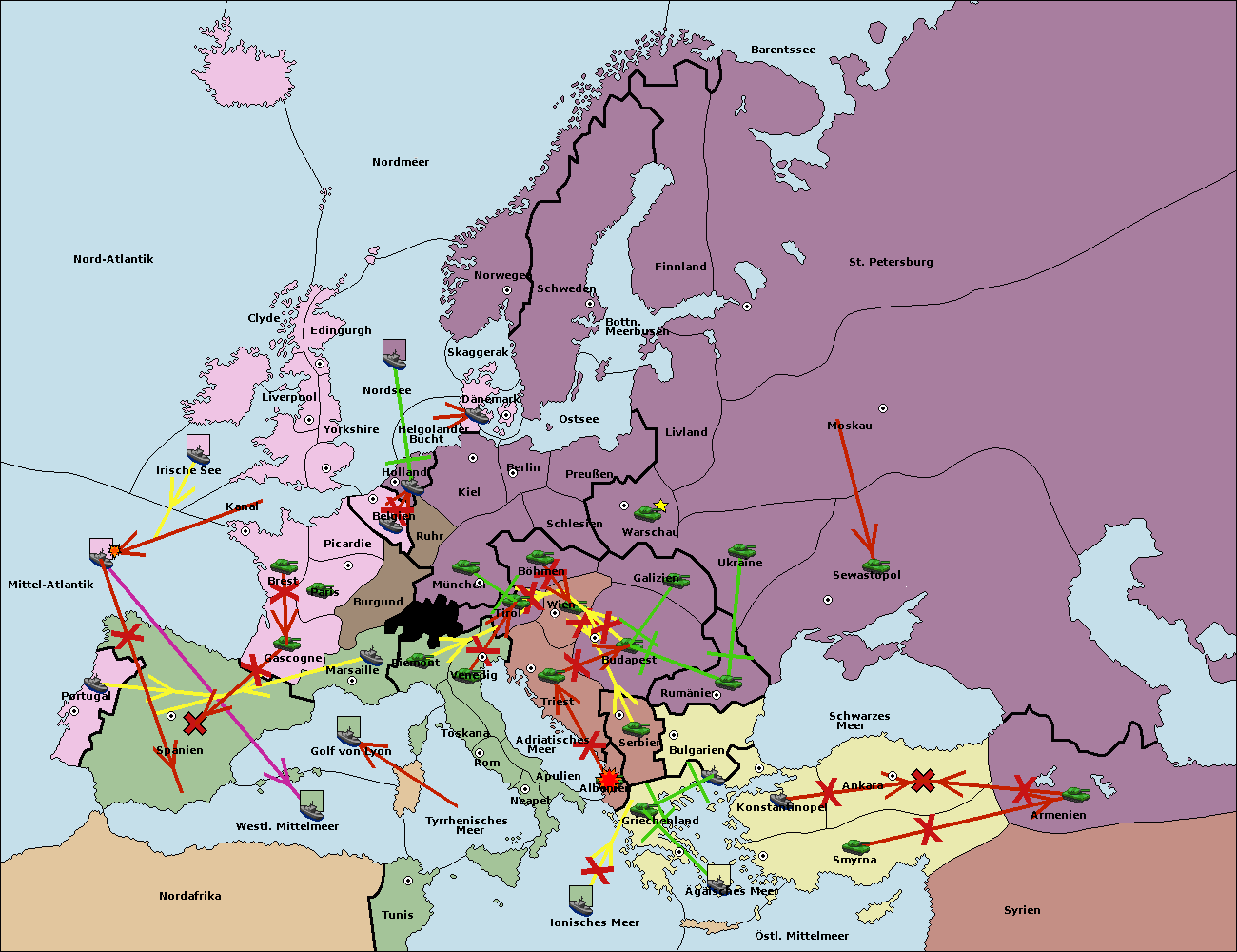 • Die Flotte in Nord Afrika move nach Tunis. (gescheitert)