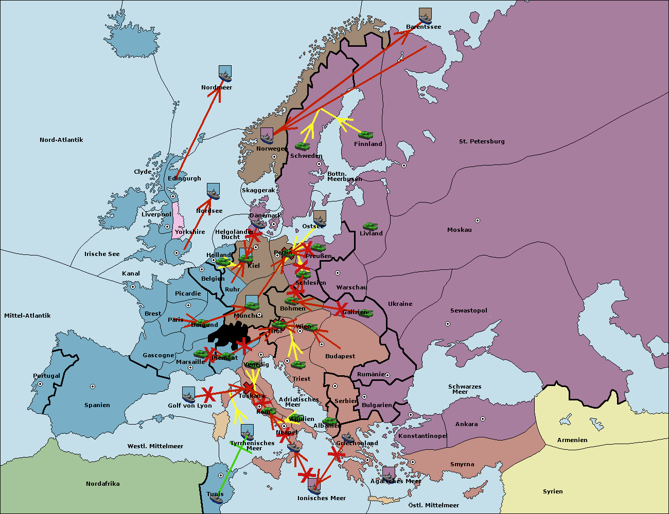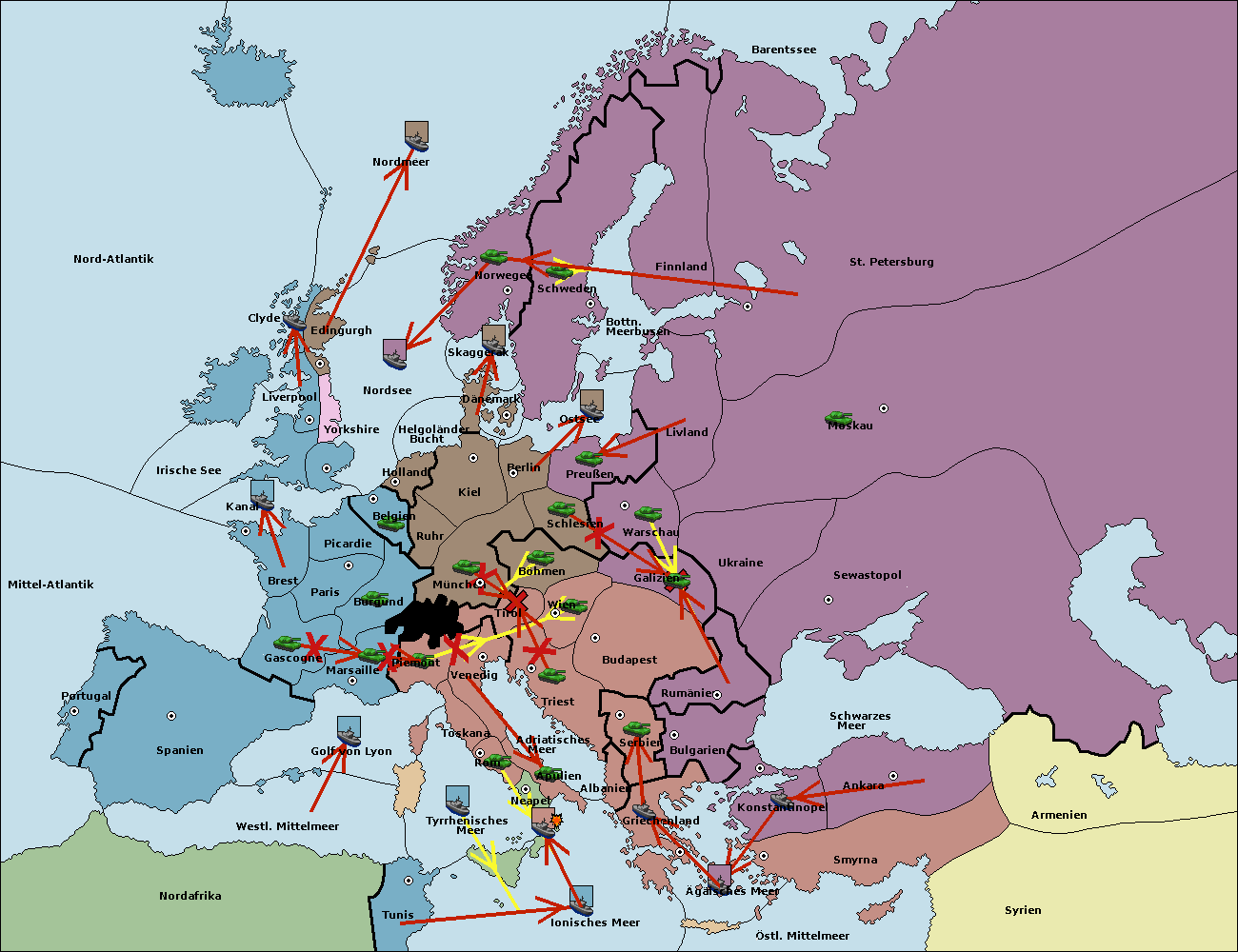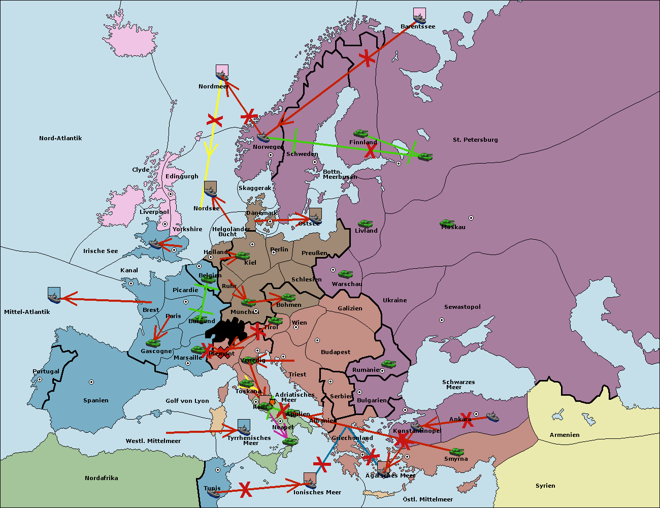 • Die Flotte in Schwarzes Meer support move nach Bulgarien von Rumänien. (gescheitert)