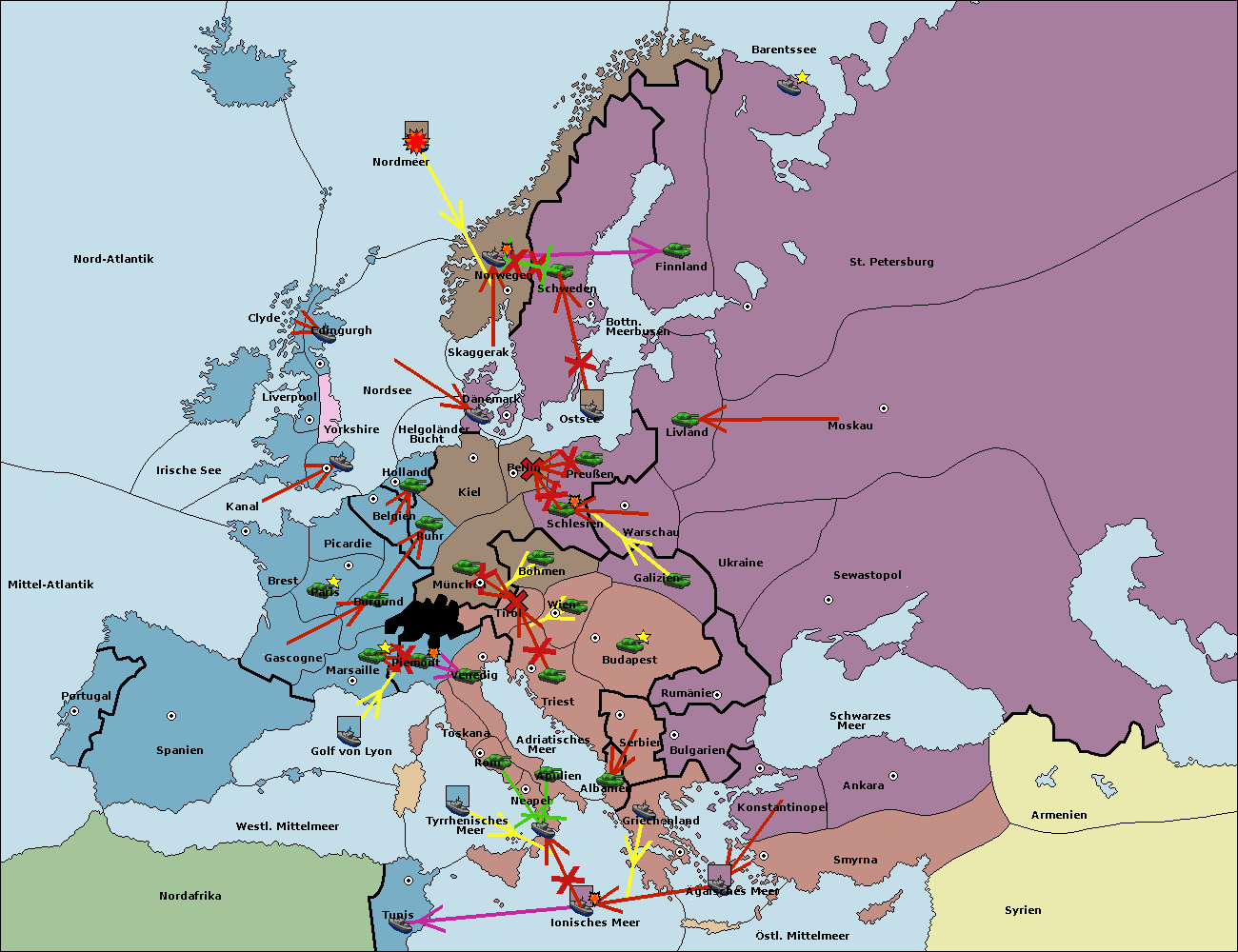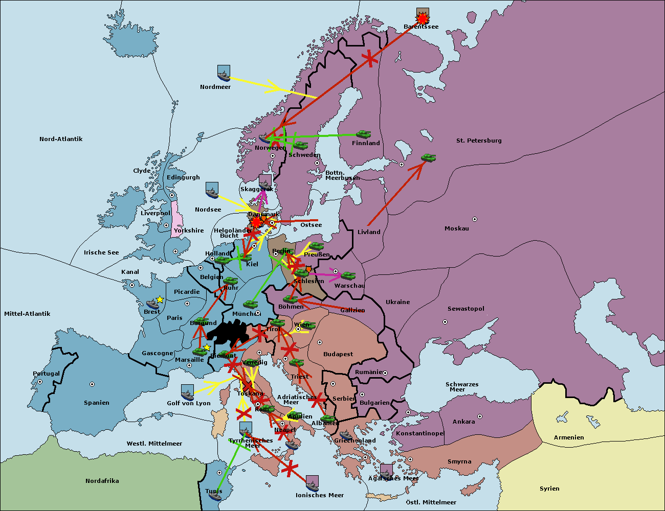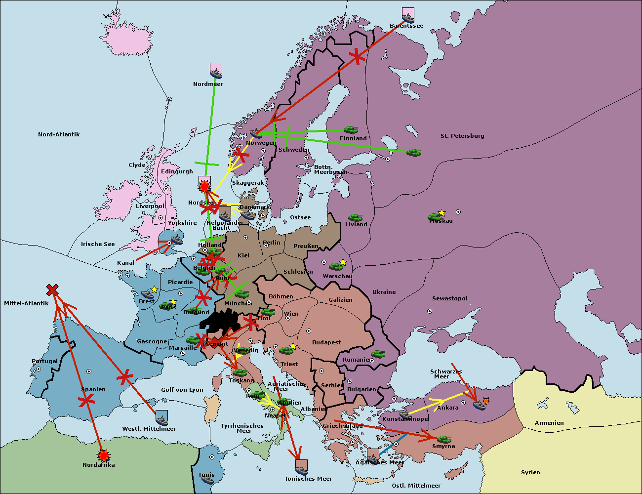 • Die Flotte in Schwarzes Meer support move nach Bulgarien von Rumänien. (gescheitert)