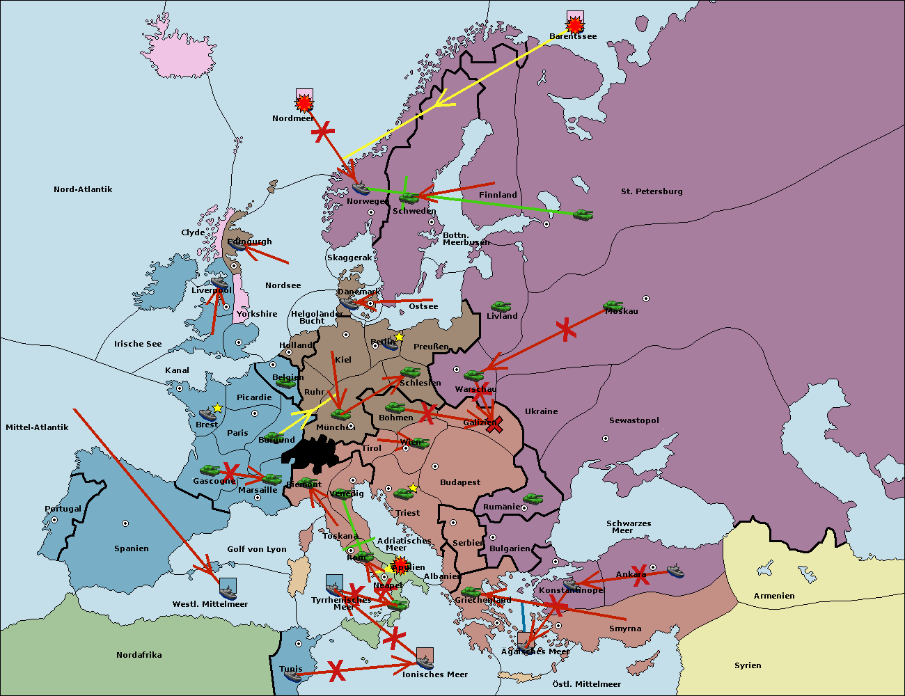 • Die Flotte in Barentssee move nach St. Petersburg (Nordküste). (gescheitert)