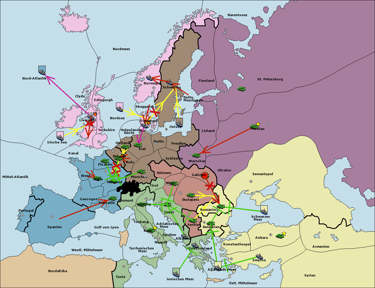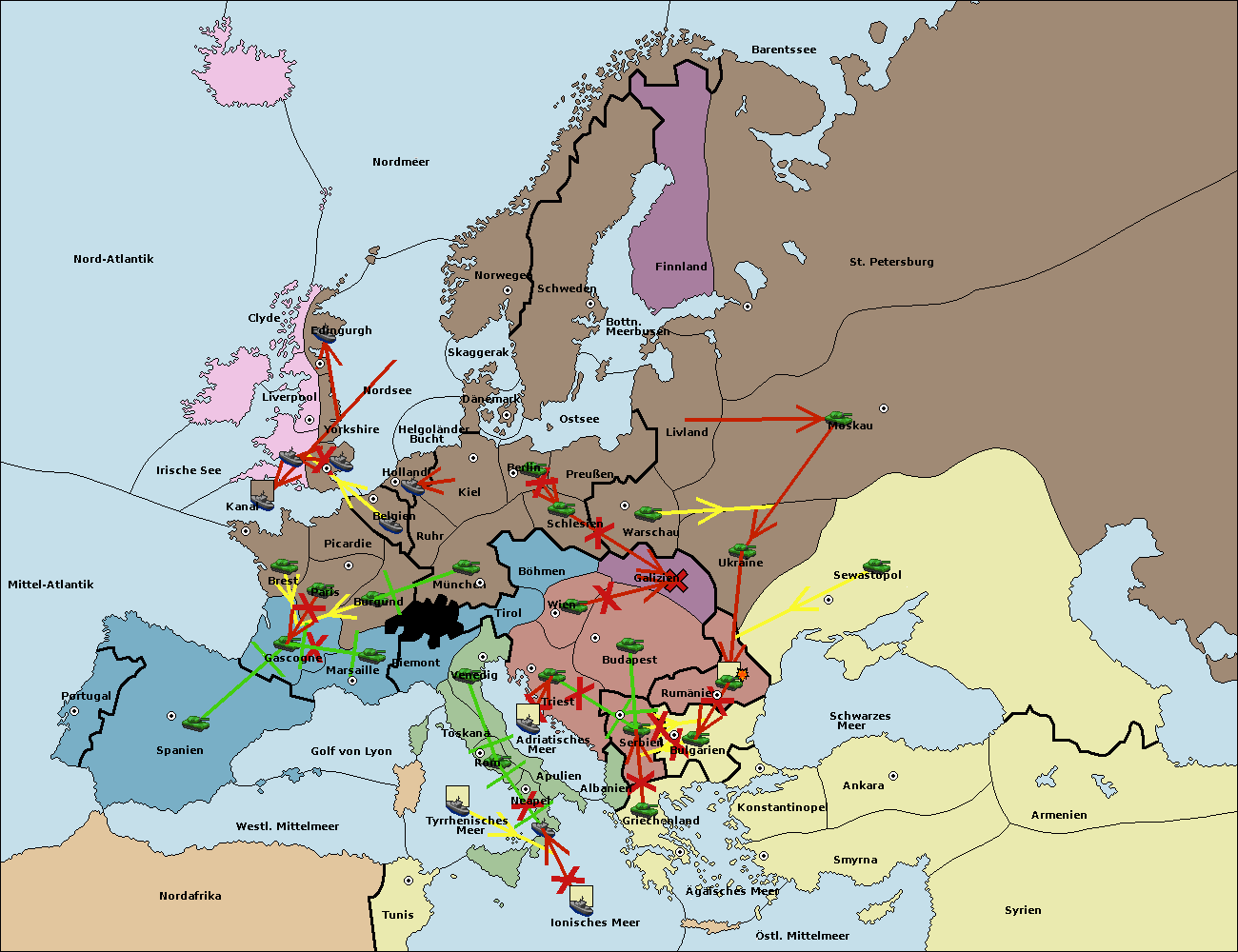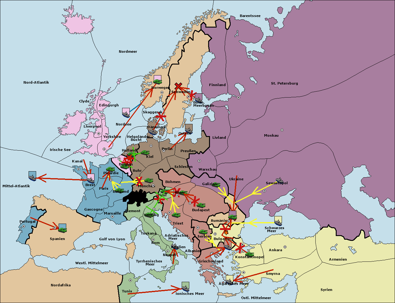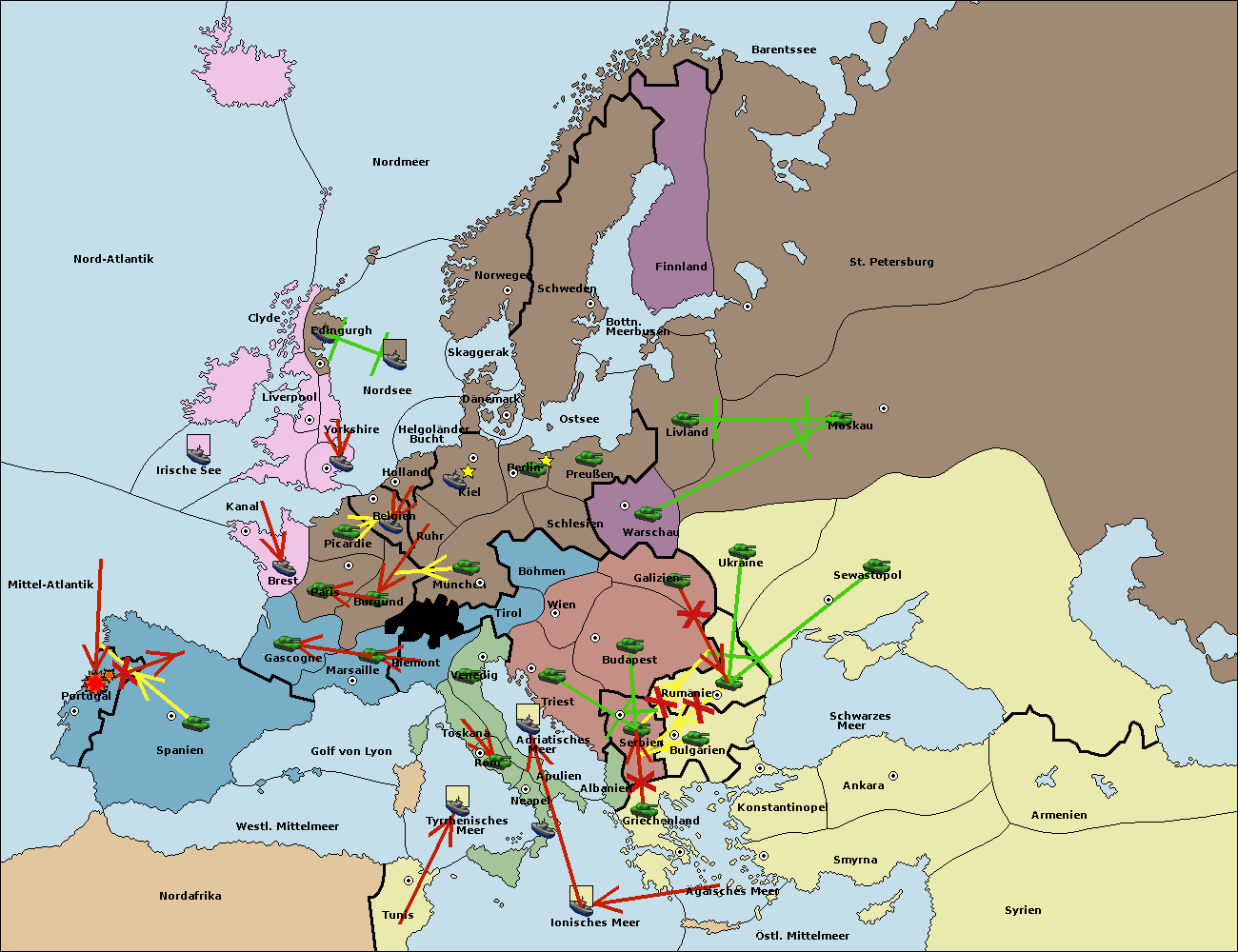 • Die Armee in Bulgarien wird zerstörtFlotte in Bulgarien gebaut.