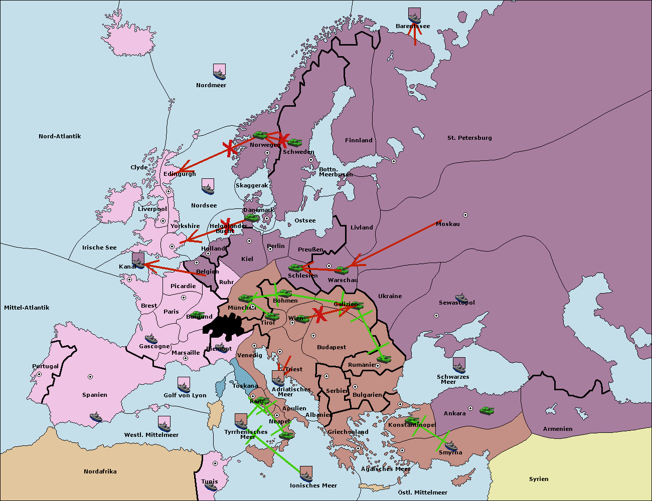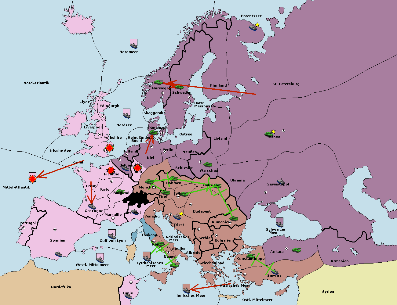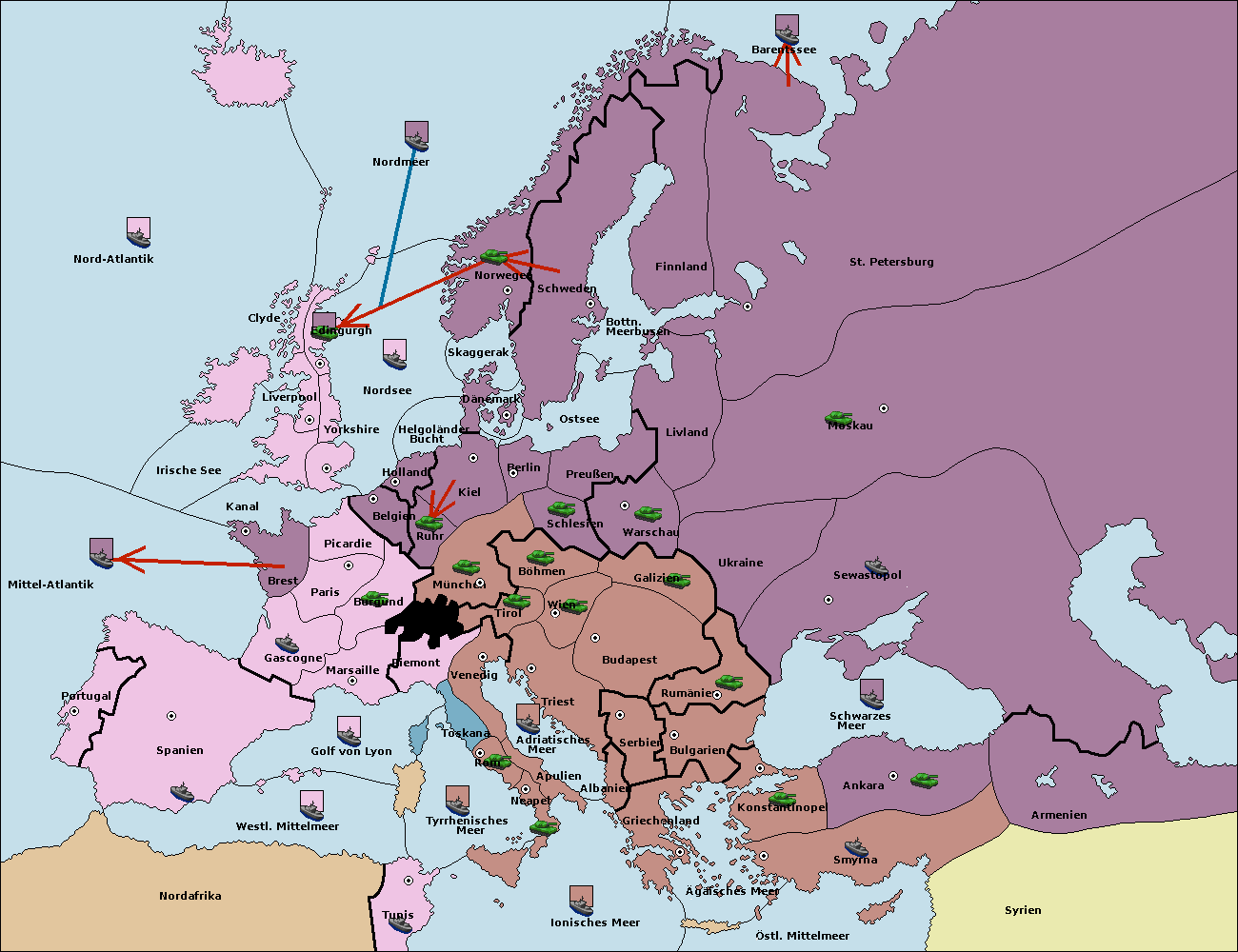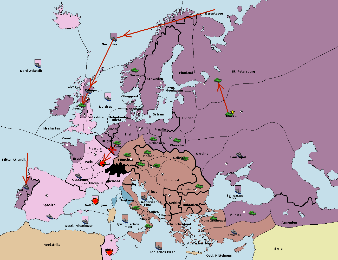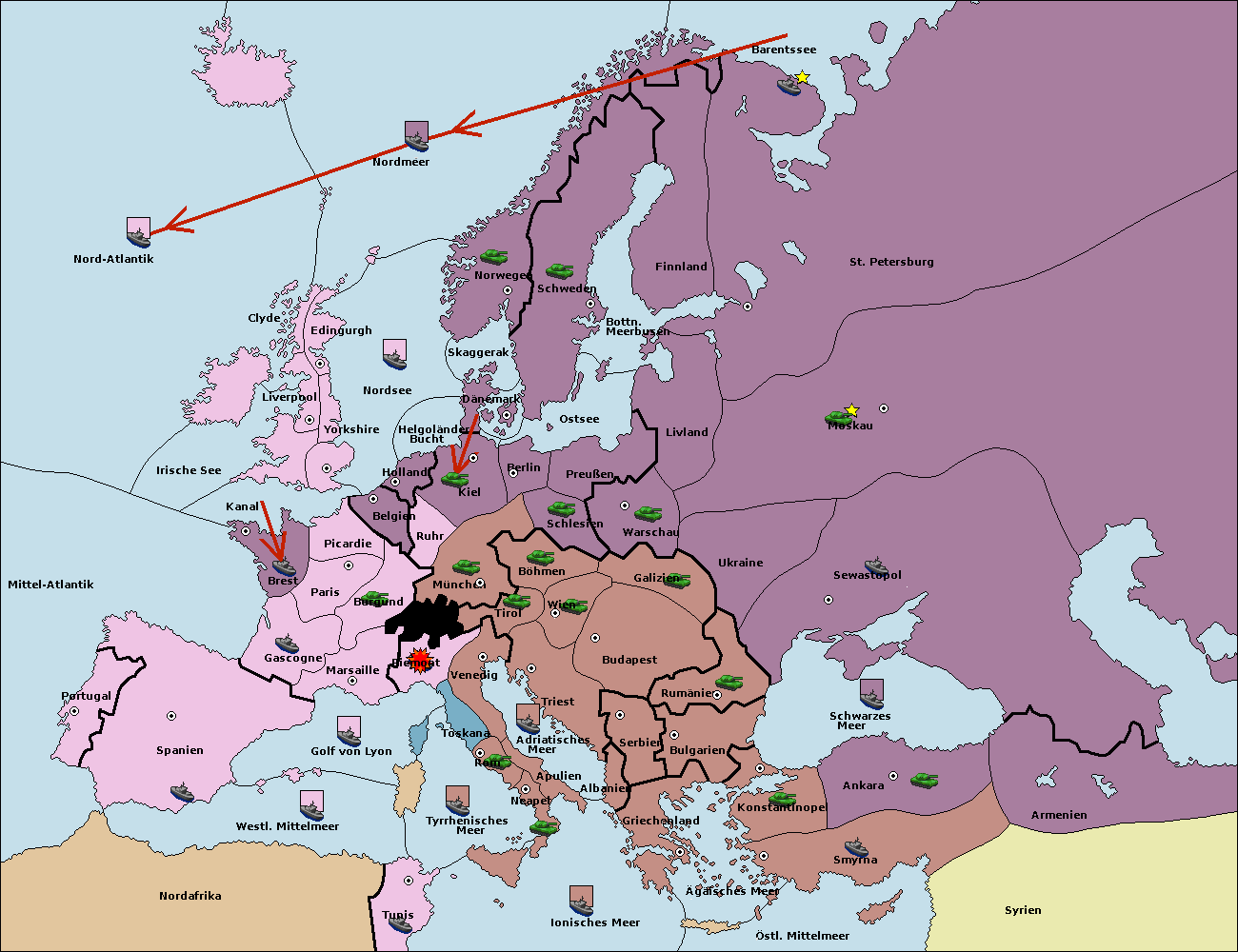 • Die Flotte in St. Petersburg (Nordküste) move nach Barentssee.