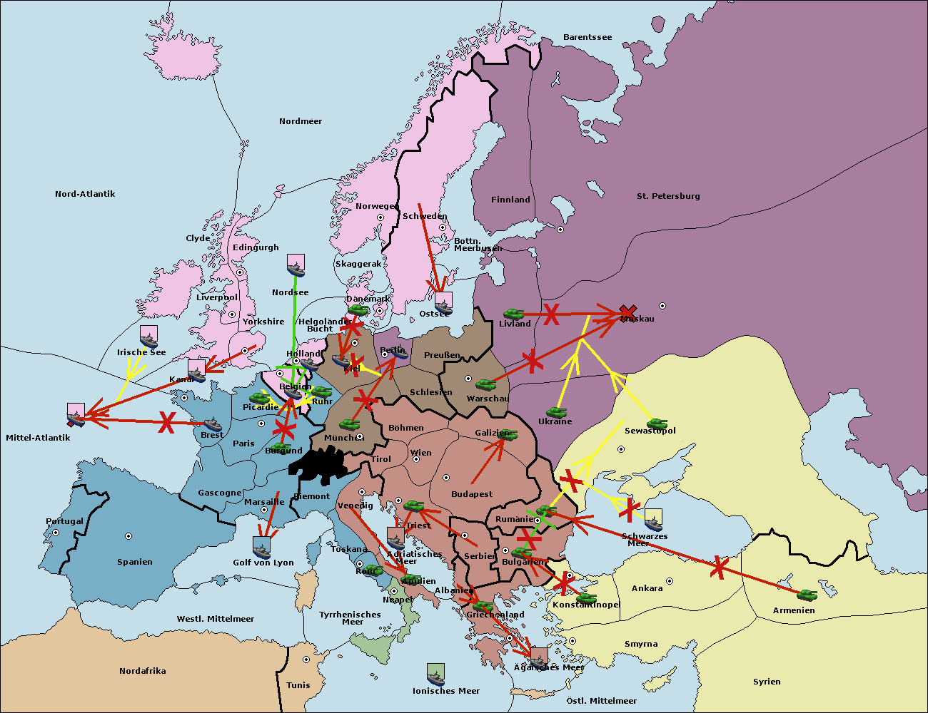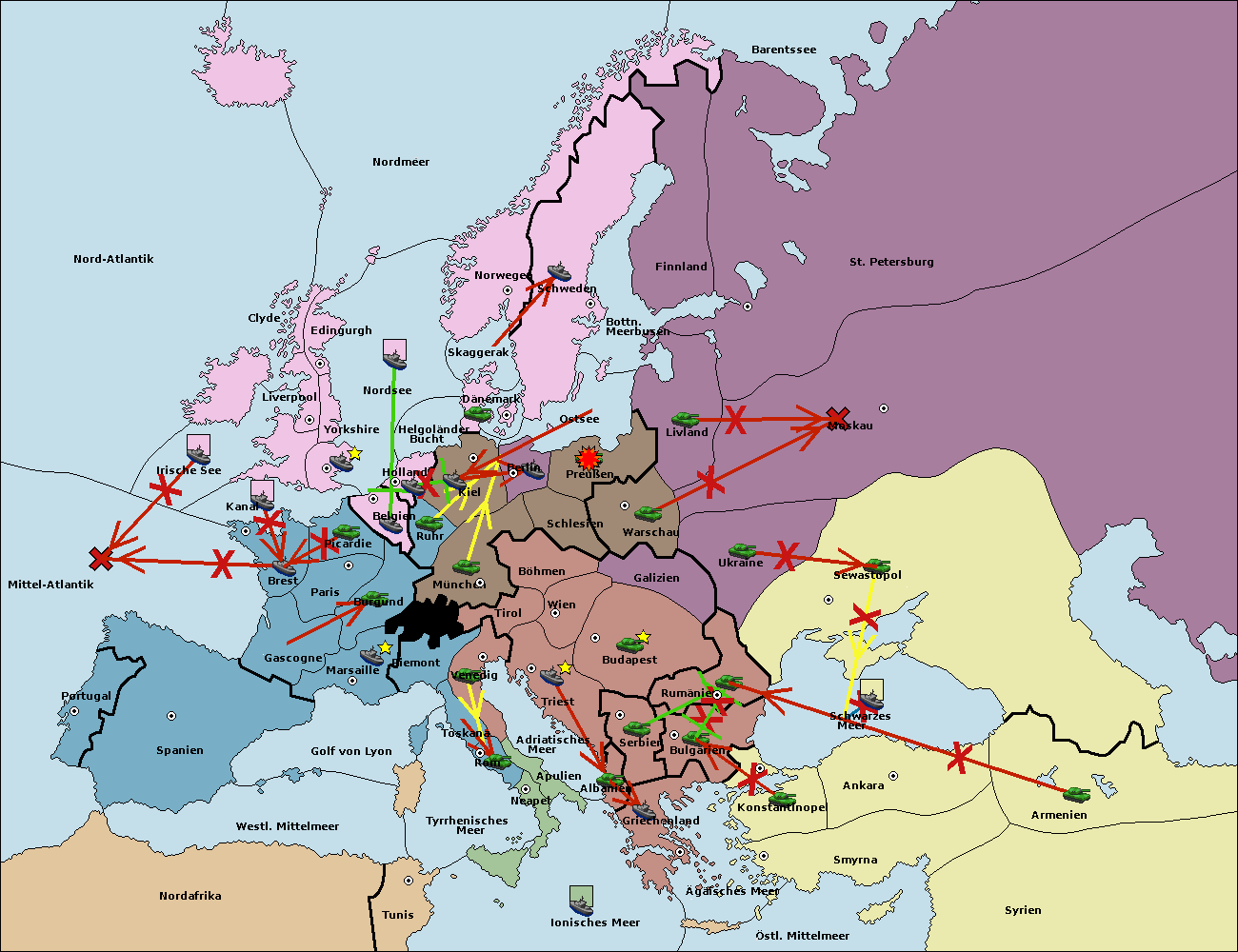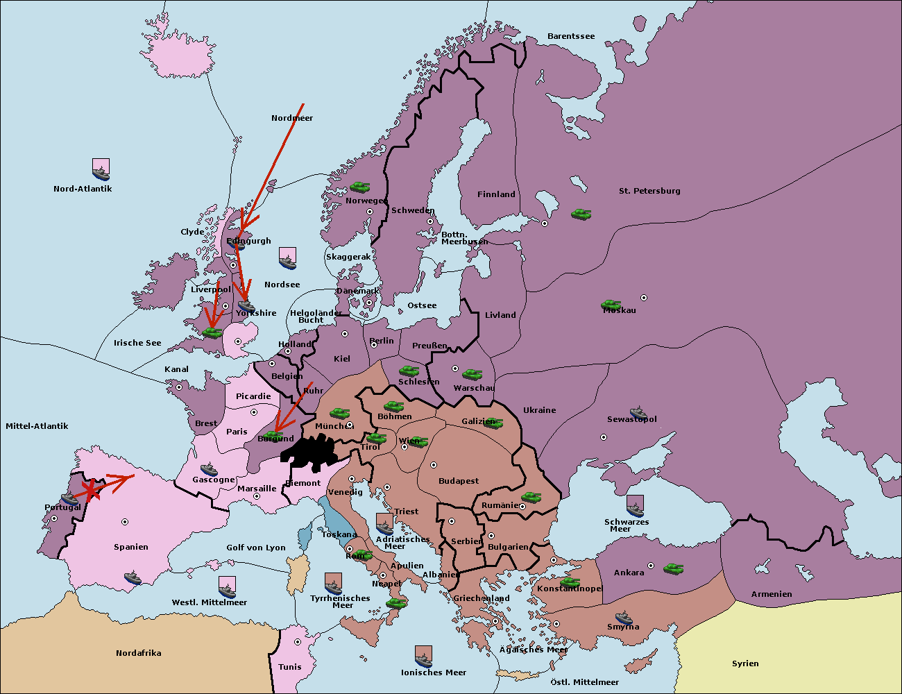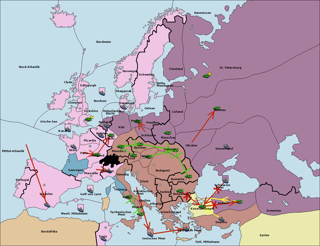 • Die Flotte in St. Petersburg (Nordküste) move nach Barentssee.