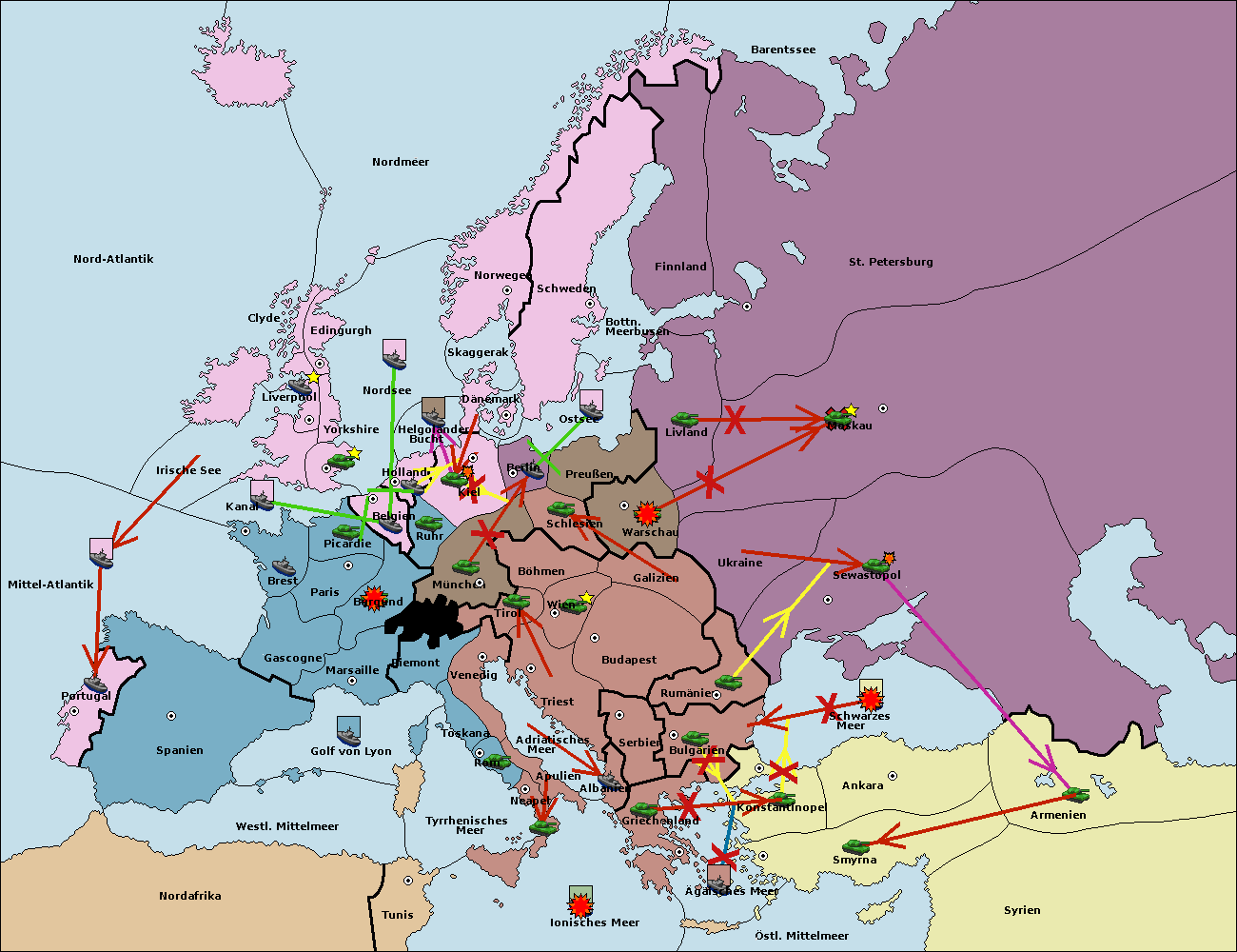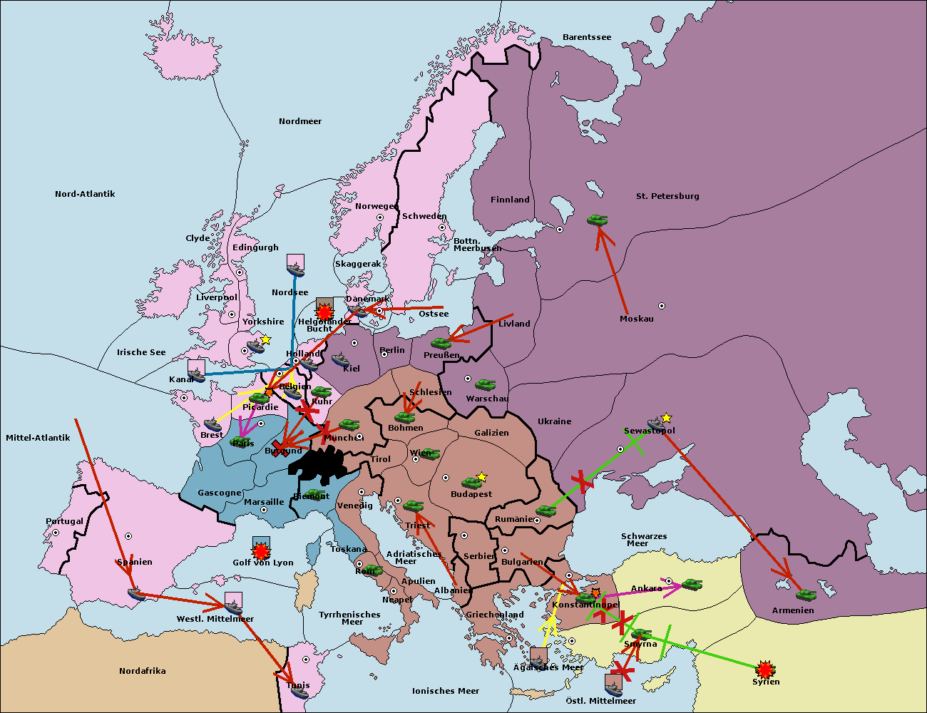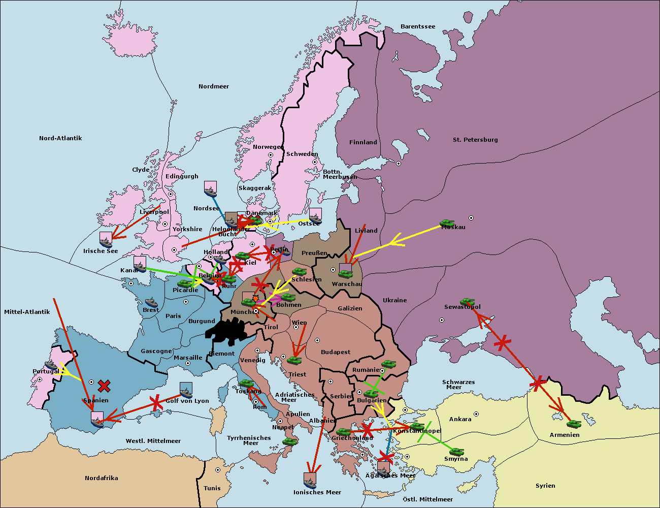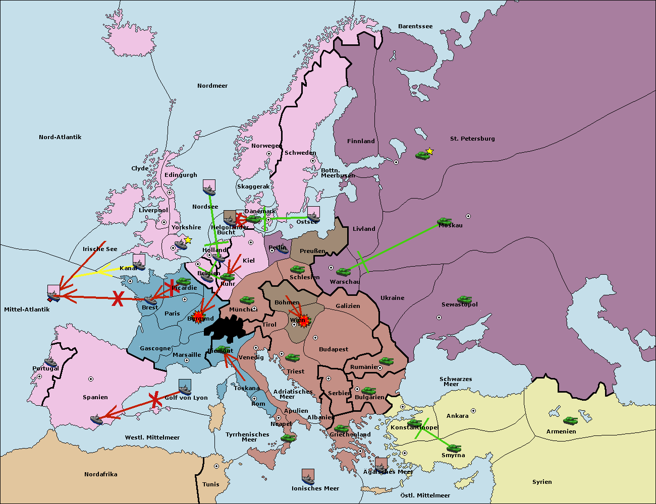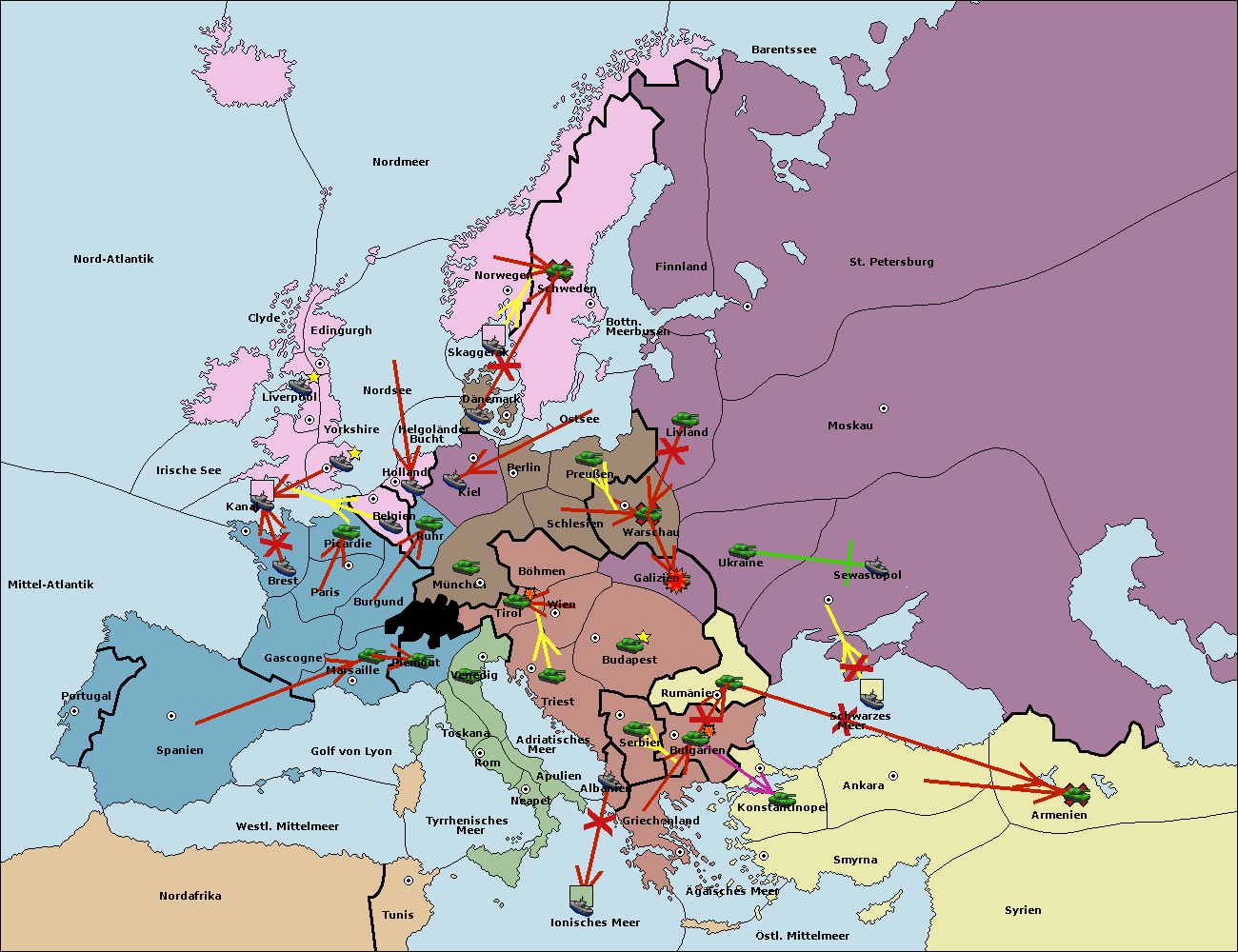 • Die Flotte in St. Petersburg (Nordküste) move nach Barentssee.