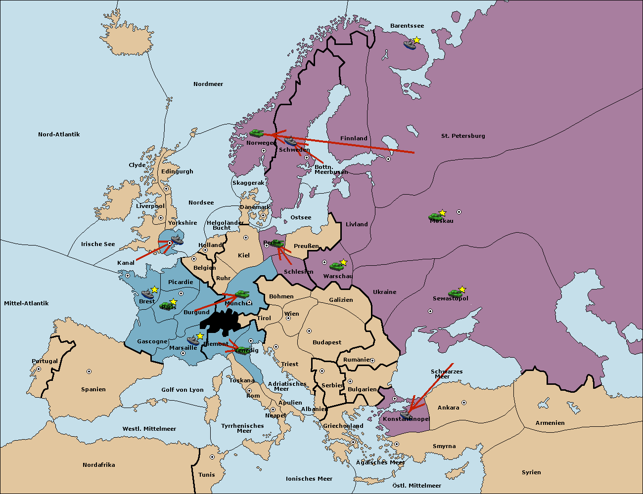 • Die Flotte in St. Petersburg (Nordküste) move nach Norwegen.