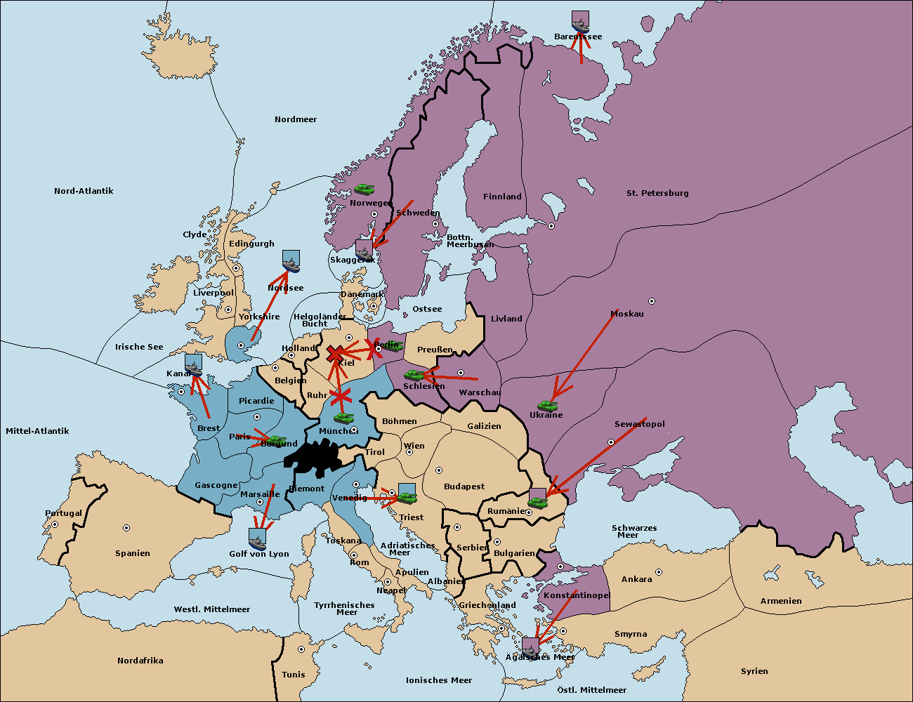• Die Flotte in Belgien move nach Nordsee. (gescheitert)