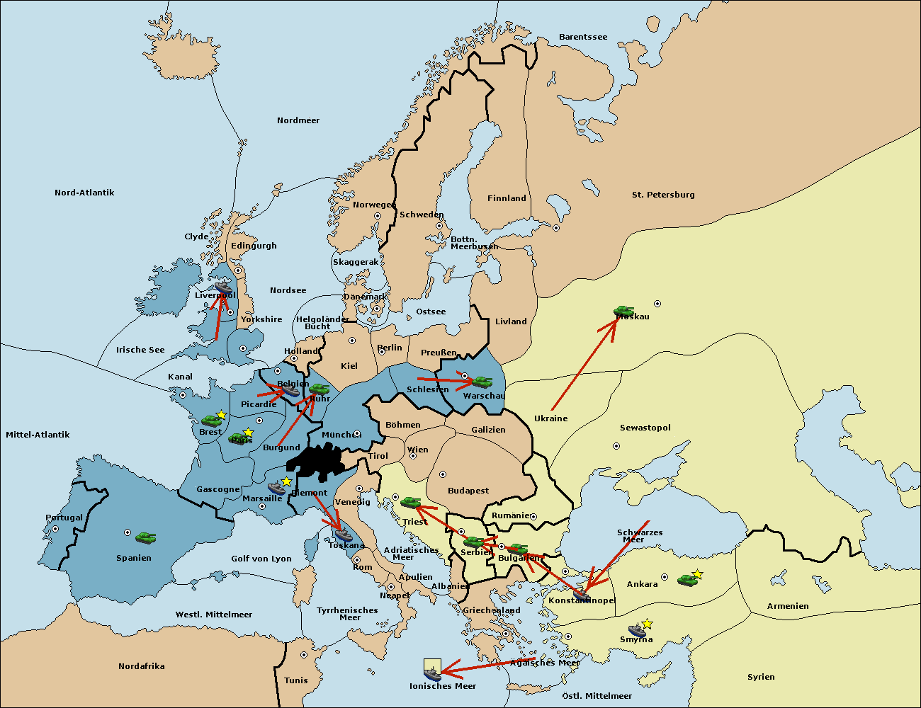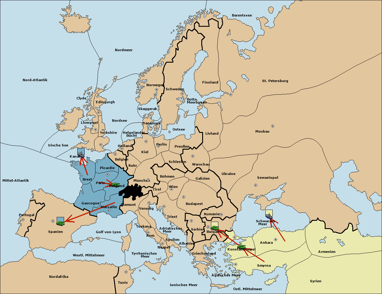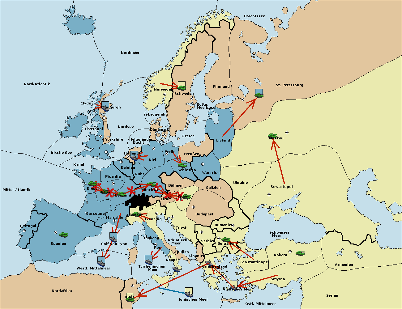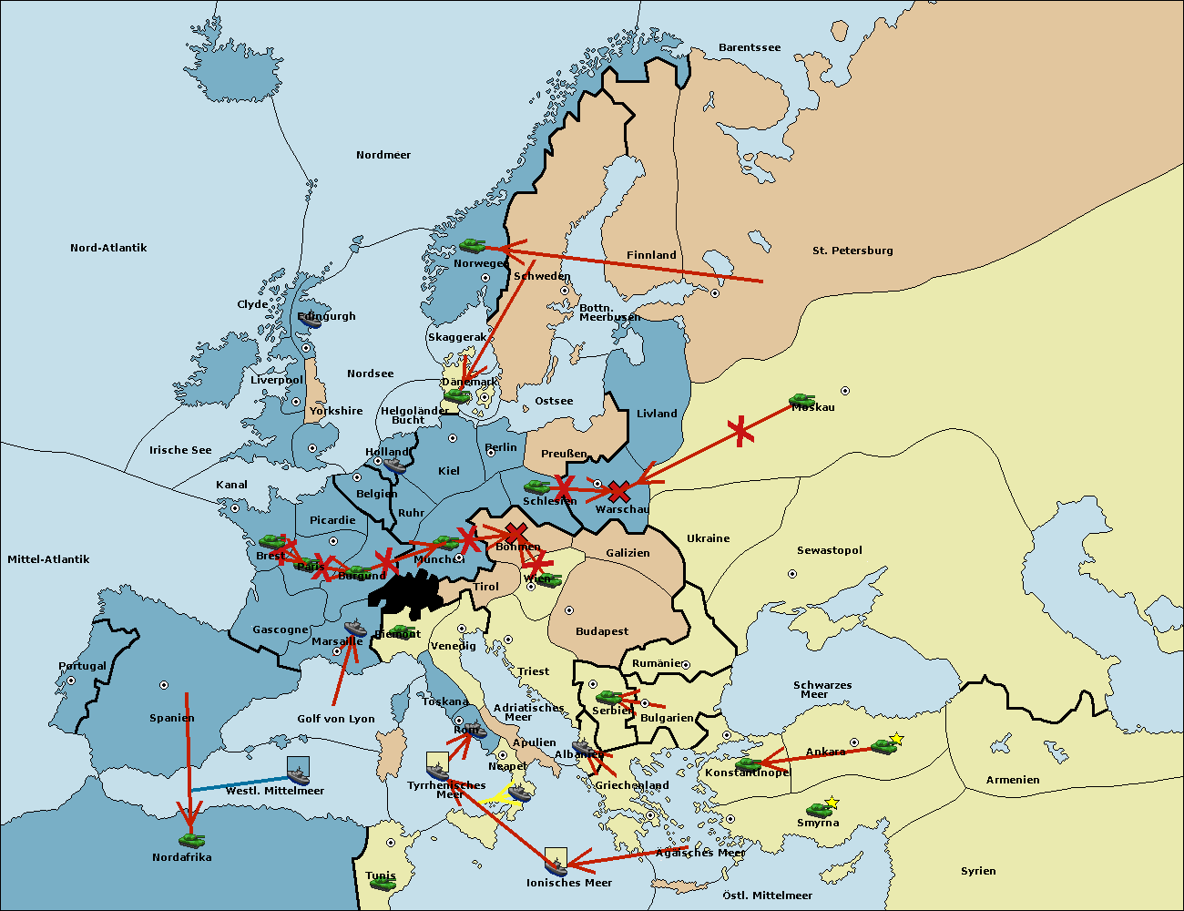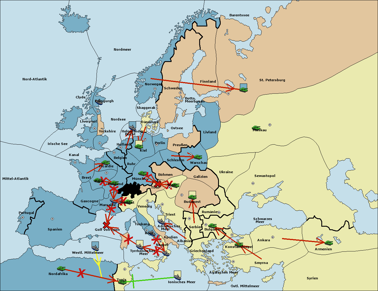 • Die Armee in Nord Afrika move nach Tunis. (gescheitert)