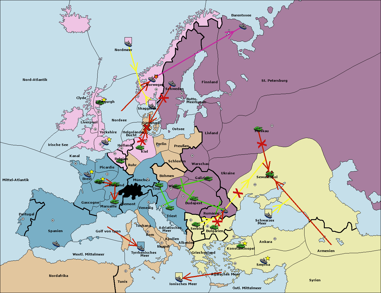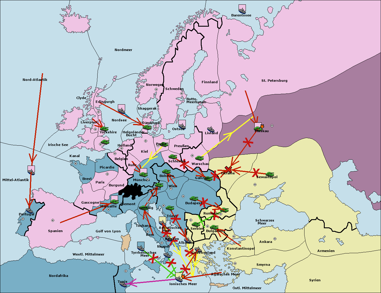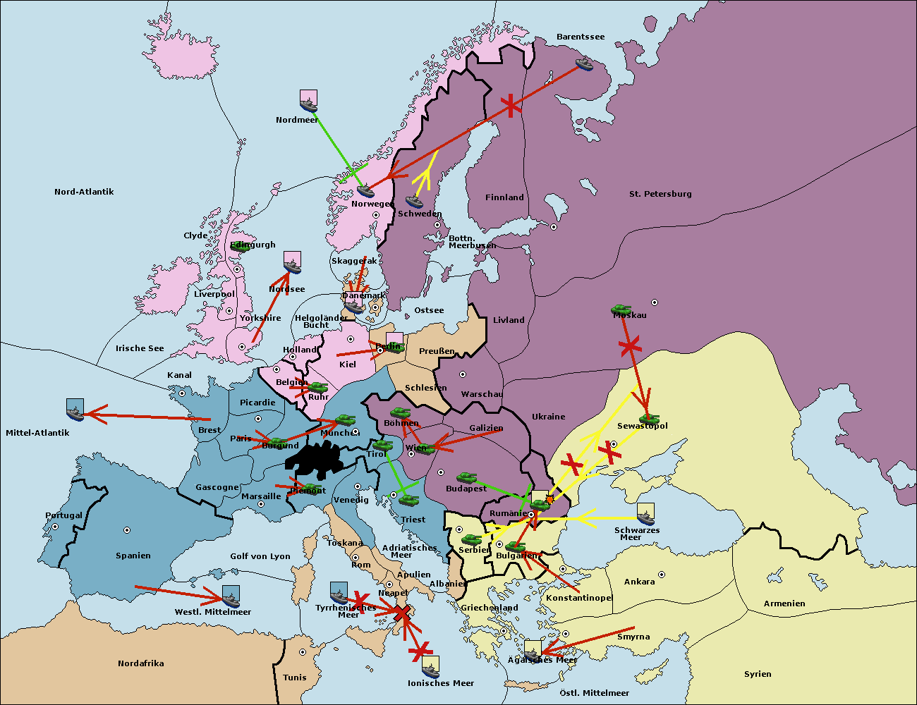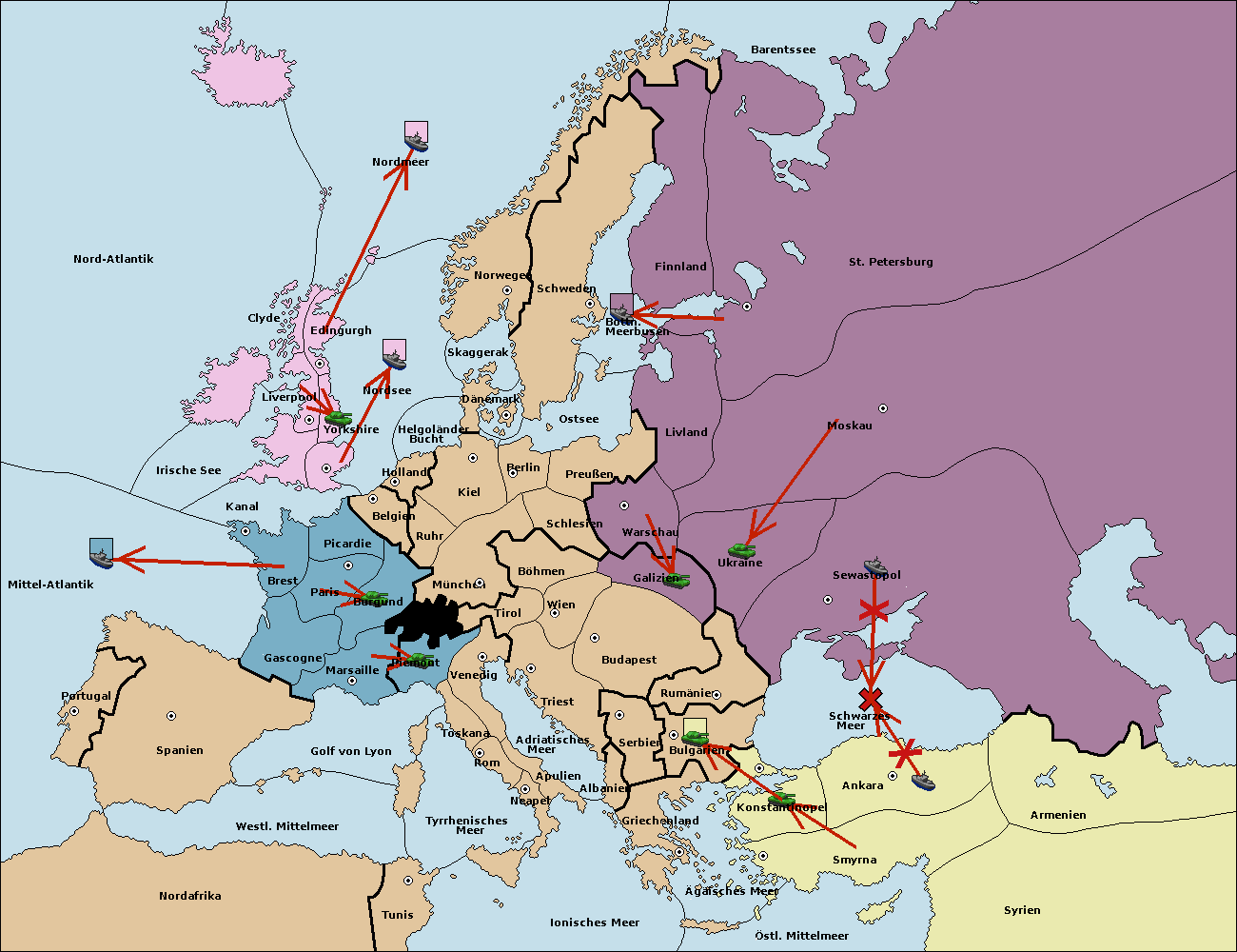 • Die Armee in Sewastopol support move nach Rumänien von Bulgarien. (gescheitert)