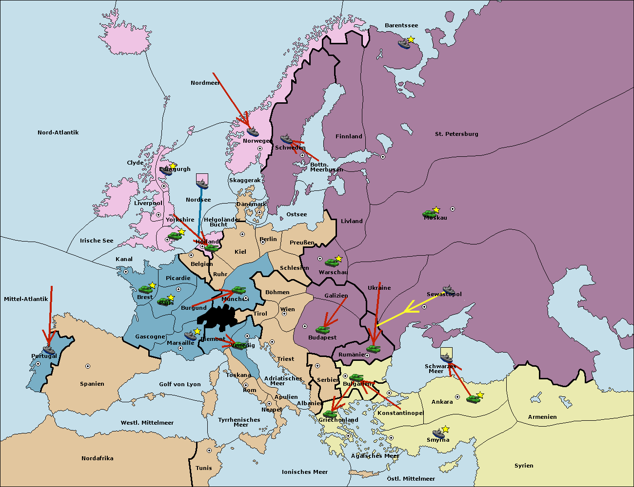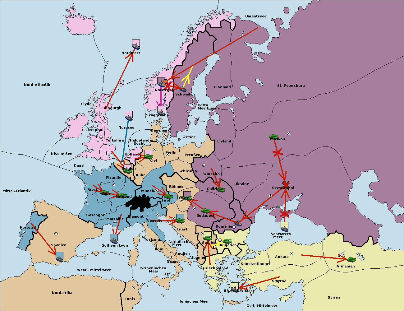 • Die Flotte in St. Petersburg (Nordküste) move nach Norwegen.