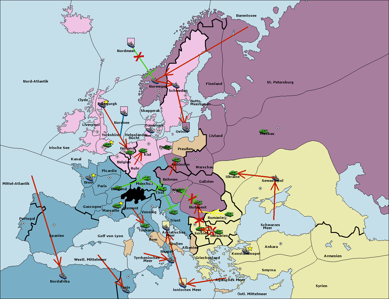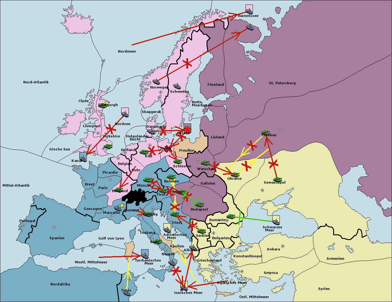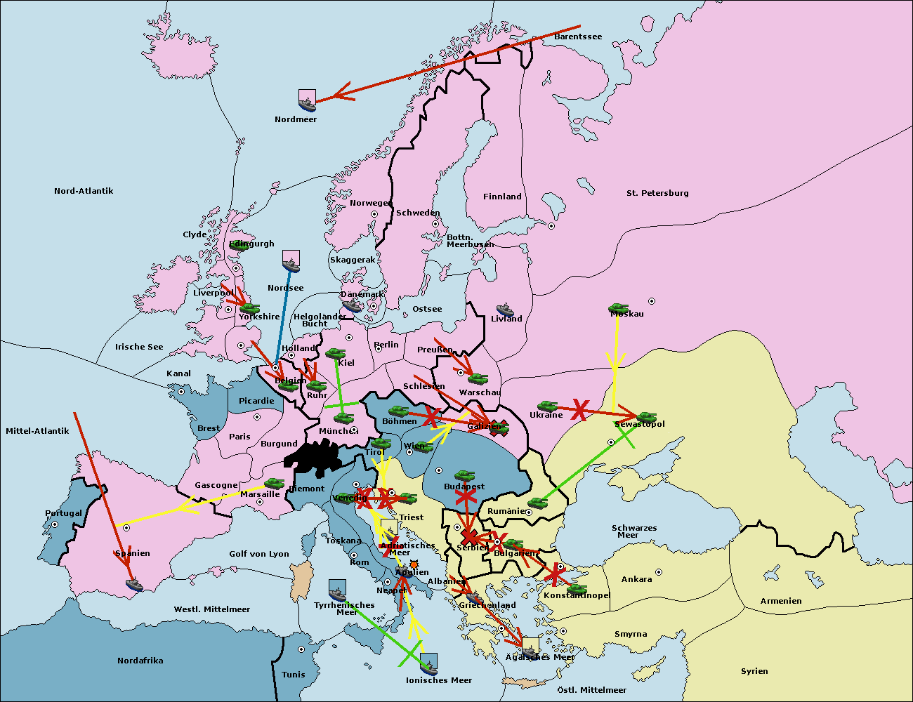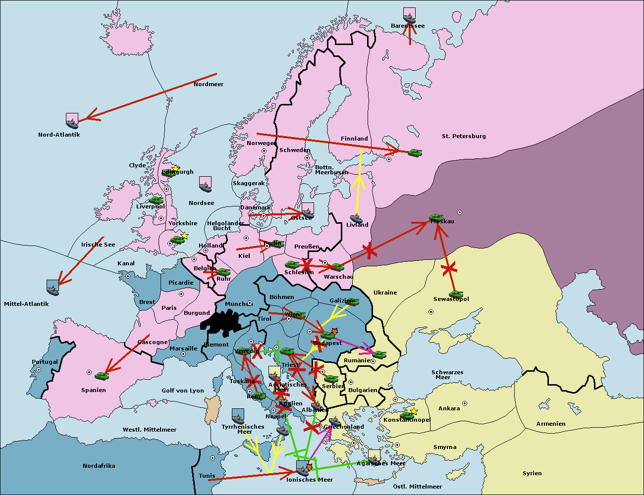 • Die Armee in Triest support move nach Budapest von Serbien. (gescheitert)