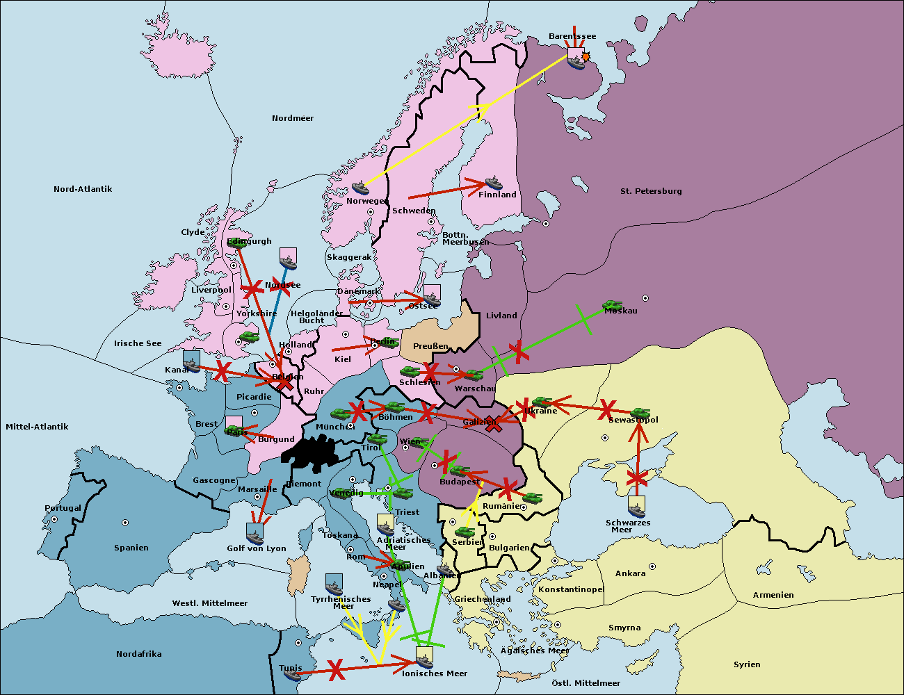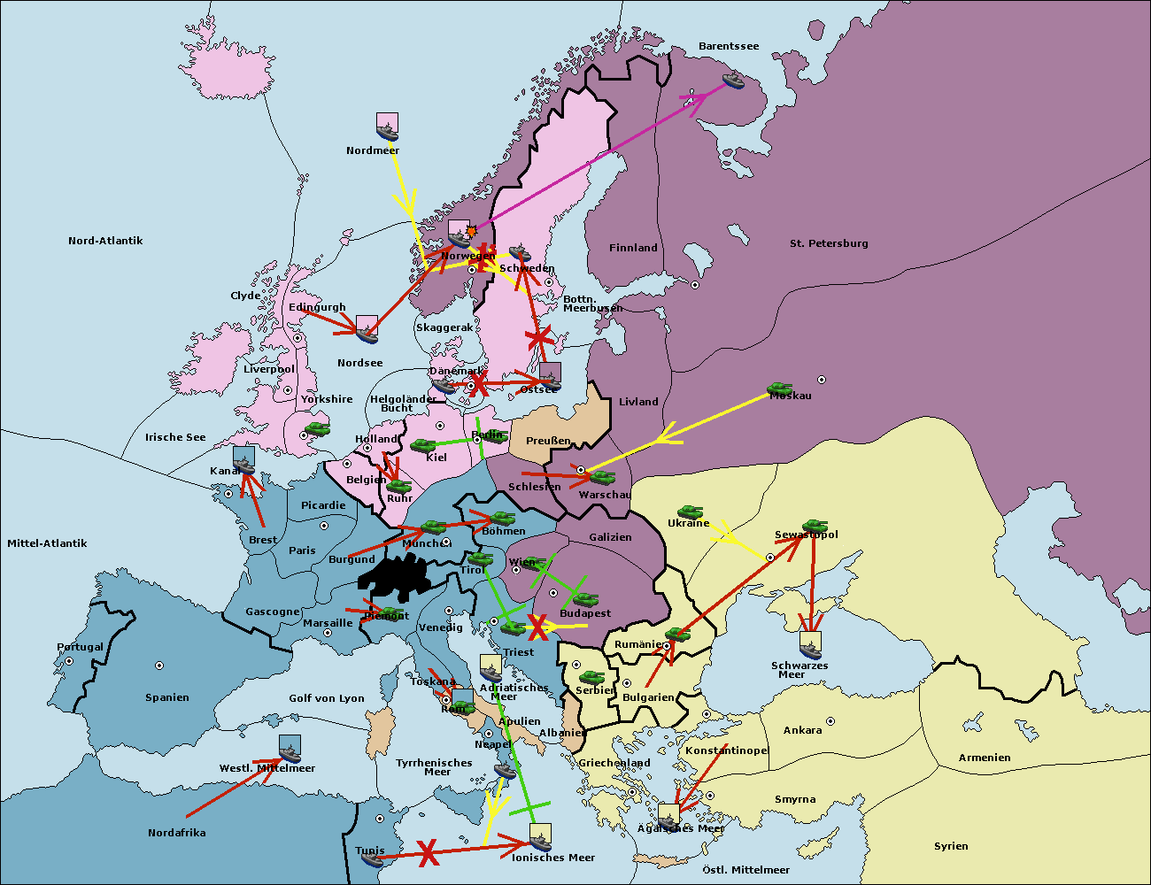 • Die Flotte in St. Petersburg (Nordküste) move nach Norwegen. (gescheitert)