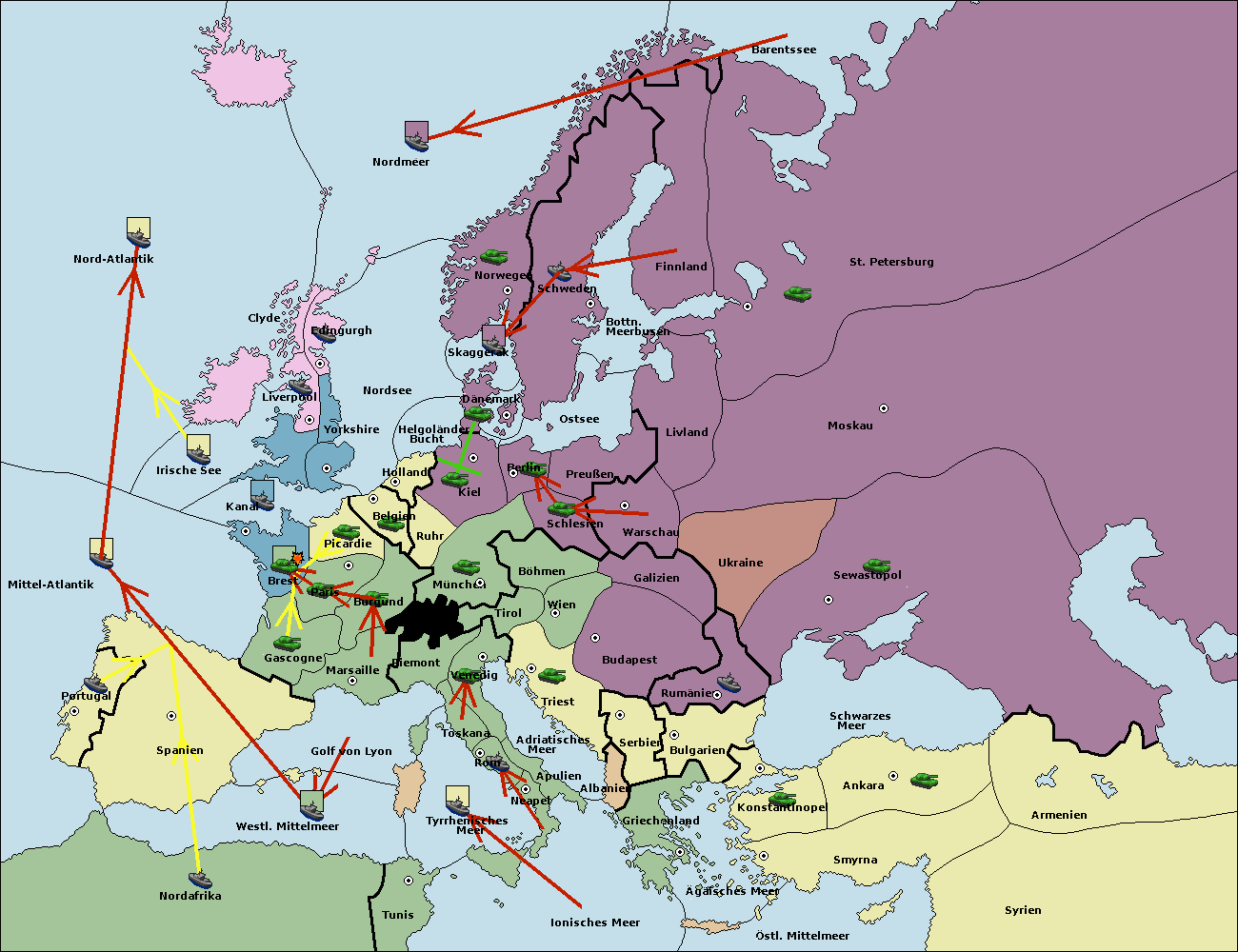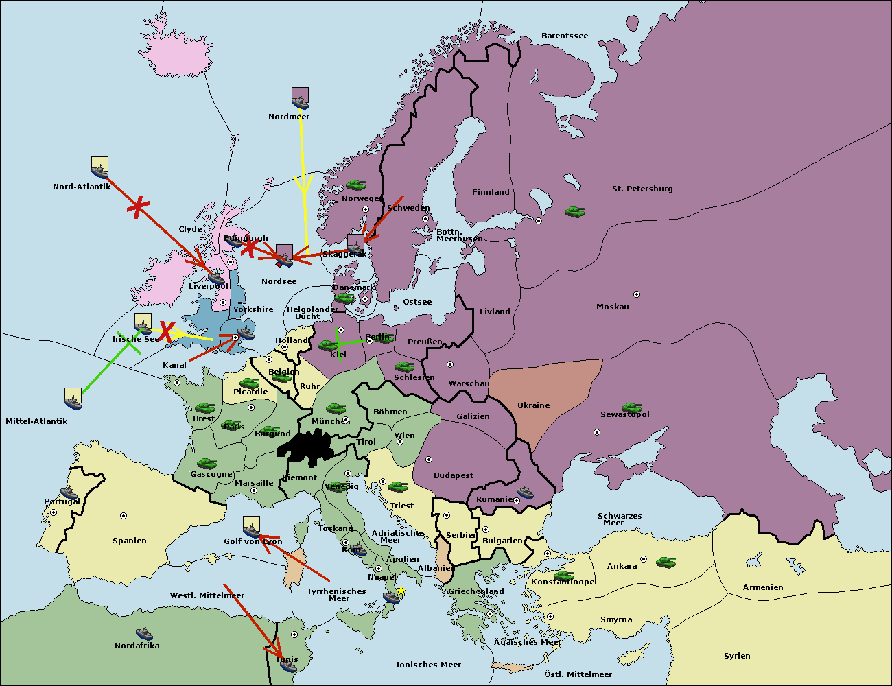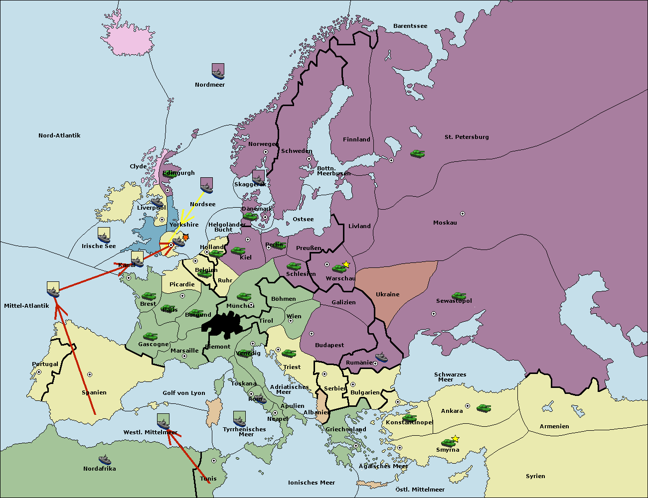 • Die Flotte in Nord Afrika support move nach Mittel-Atlantik von westl. Mittelmeer.