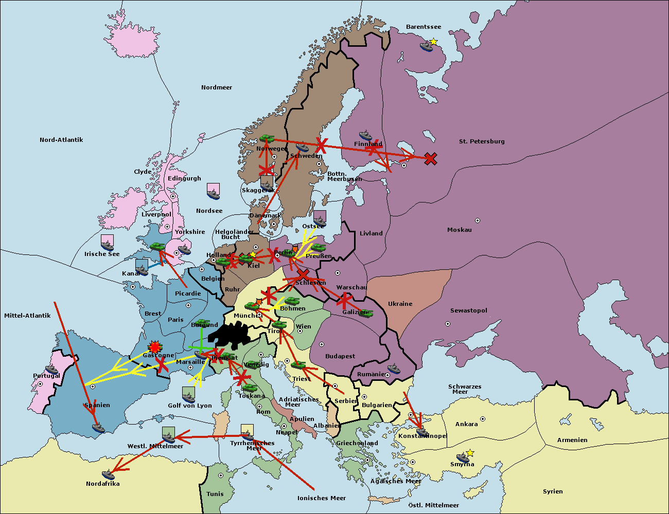 • Die Flotte in Livland support move nach Preußen von Warschau. (gescheitert)