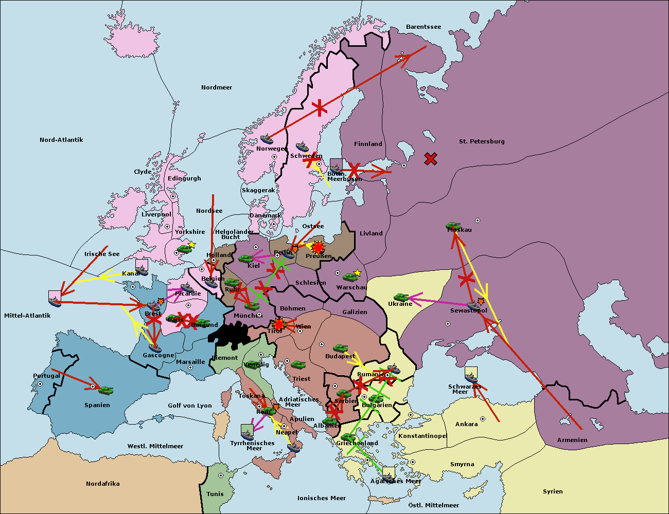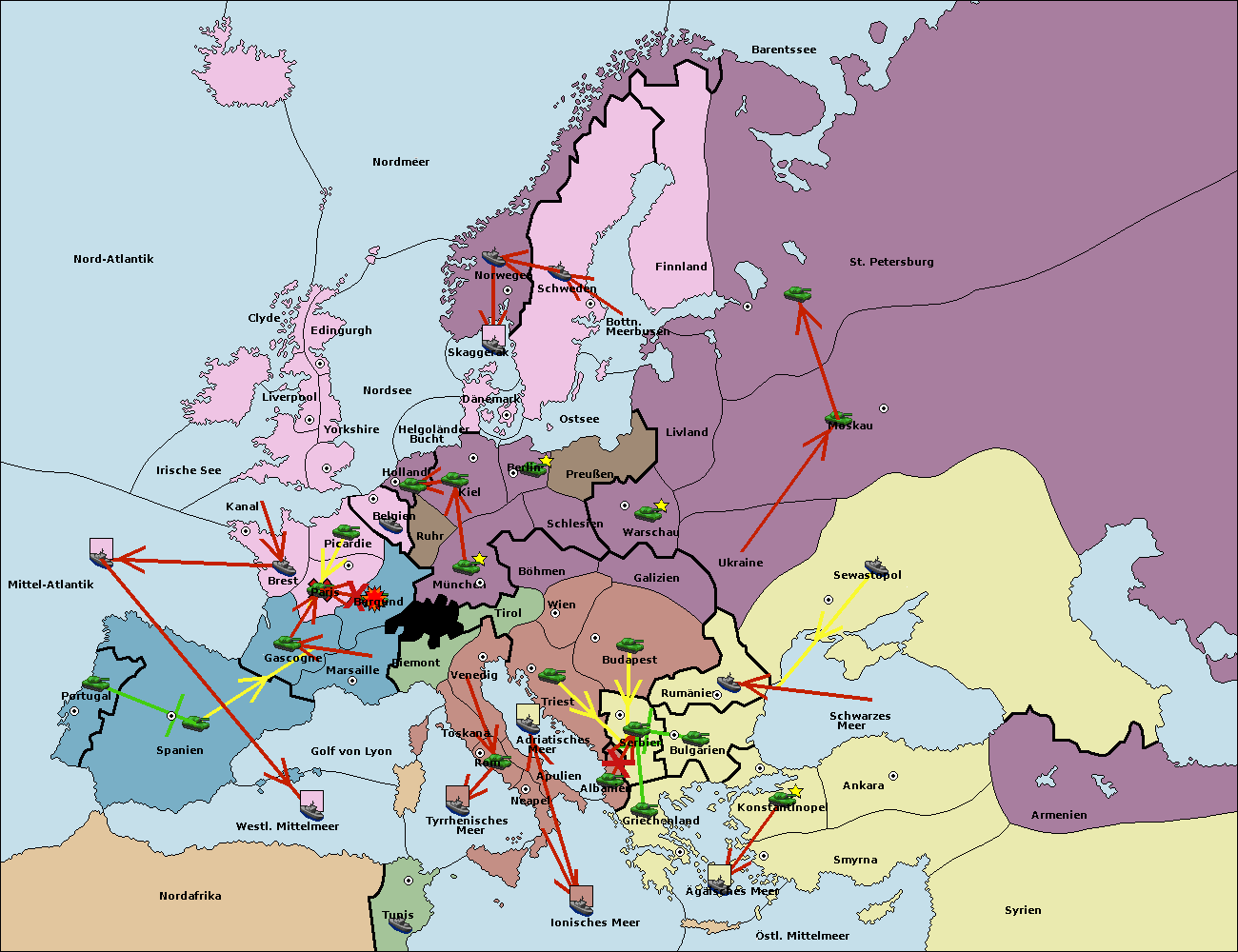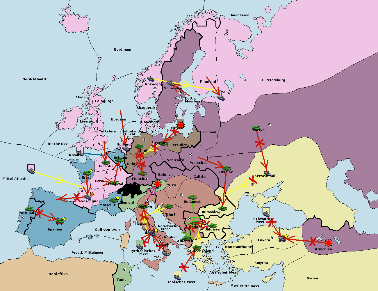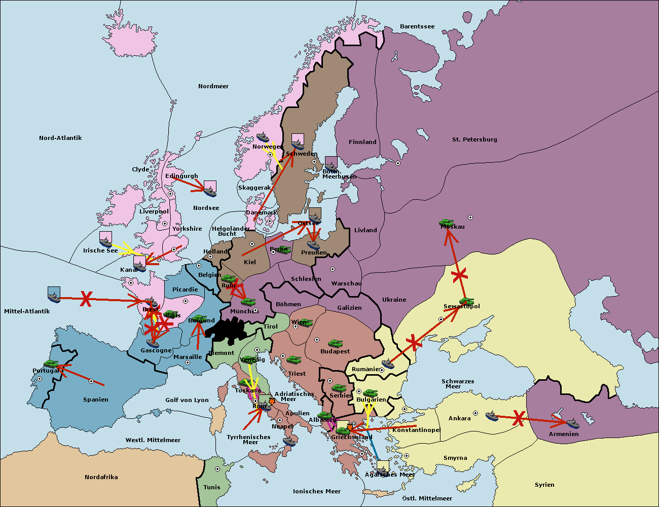 • Die Armee in Konstantinopel support hold nach Bulgarien.
