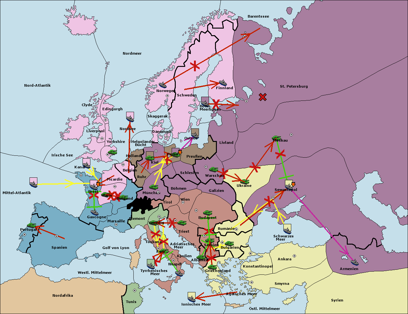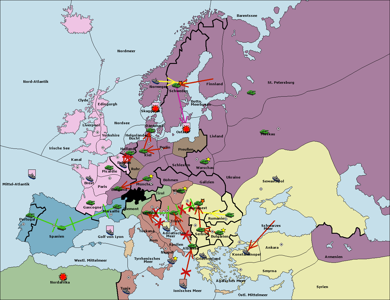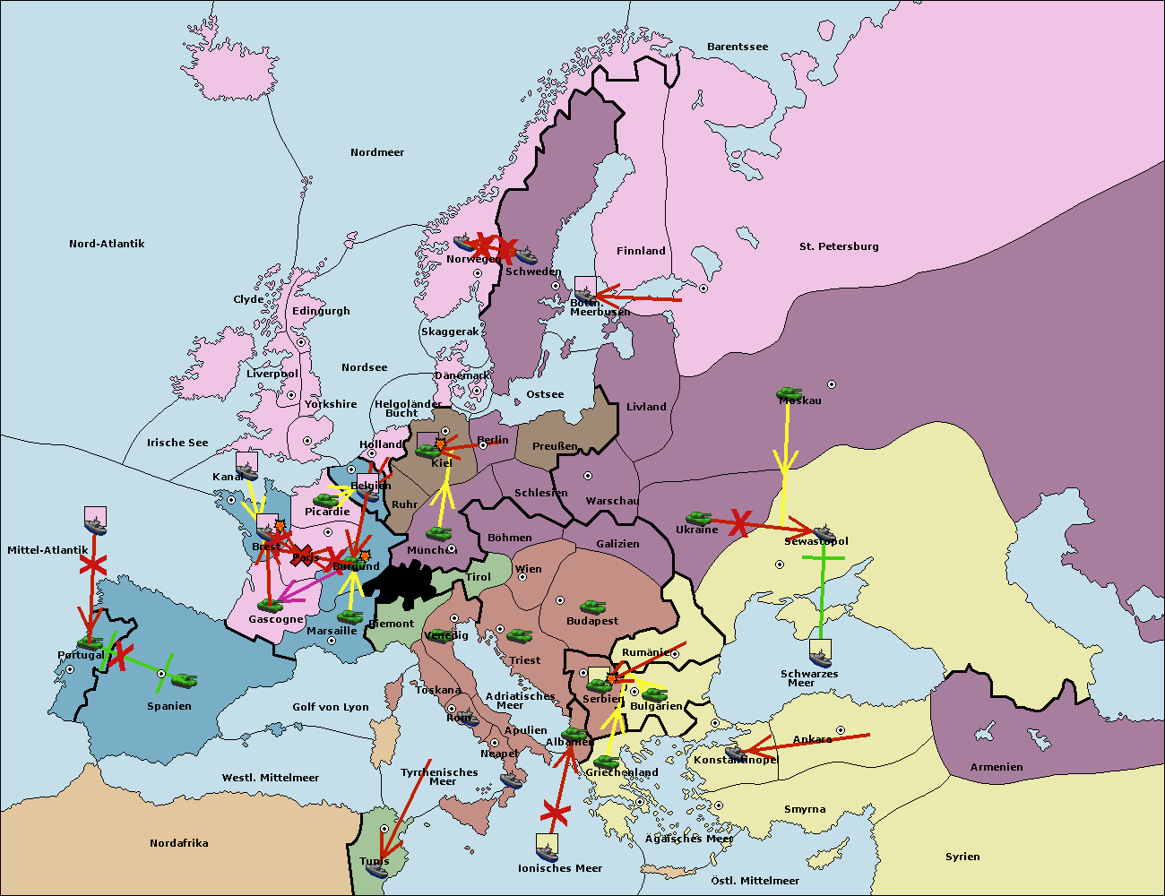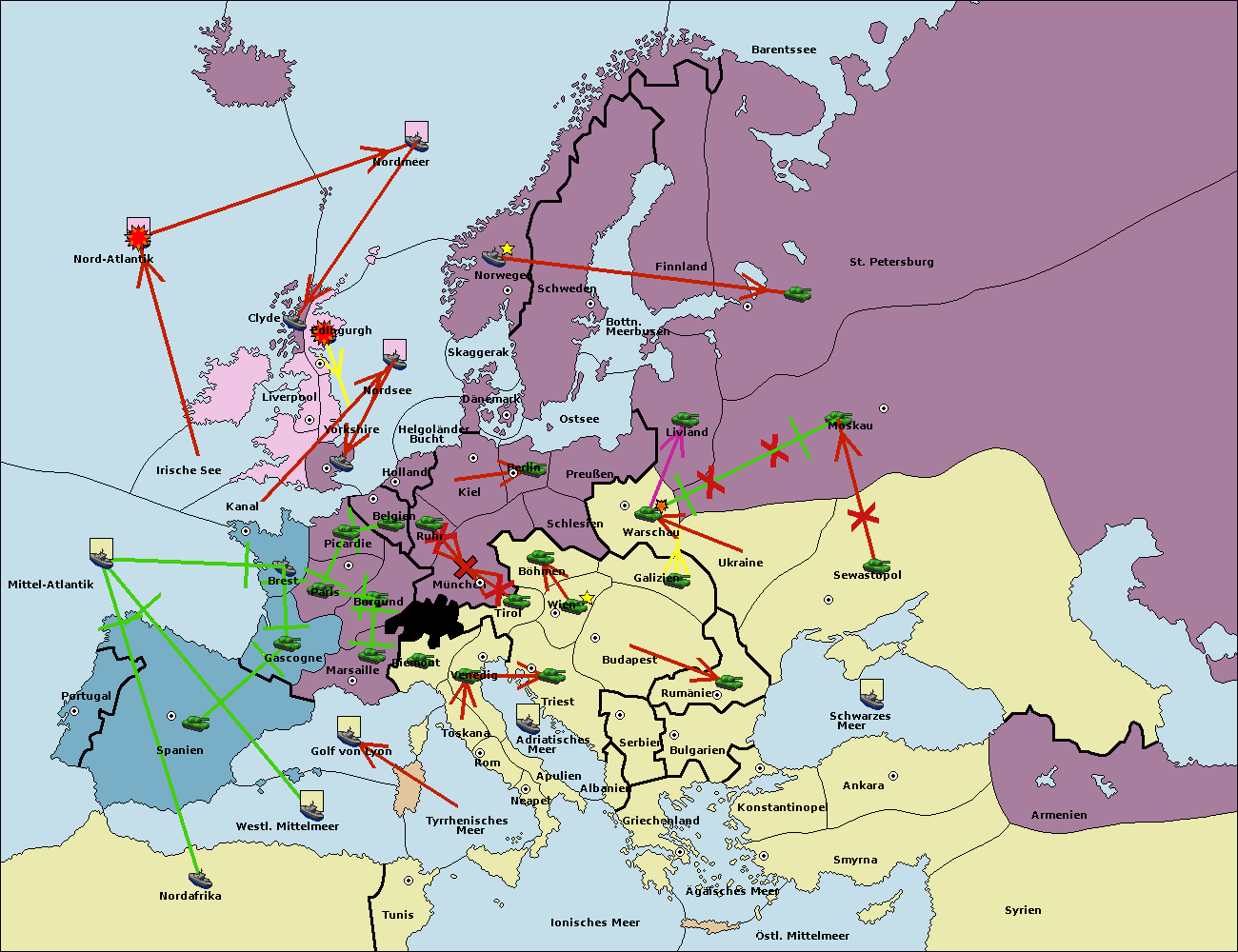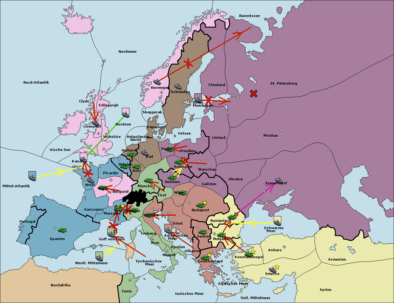 • Die Armee in Konstantinopel support hold nach Bulgarien.