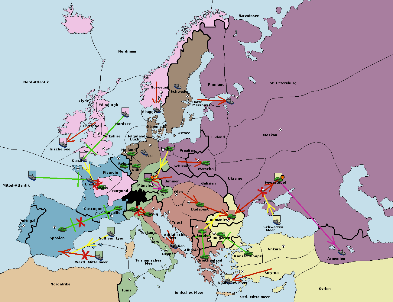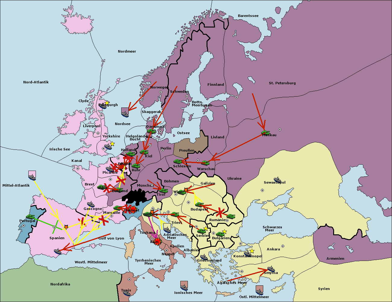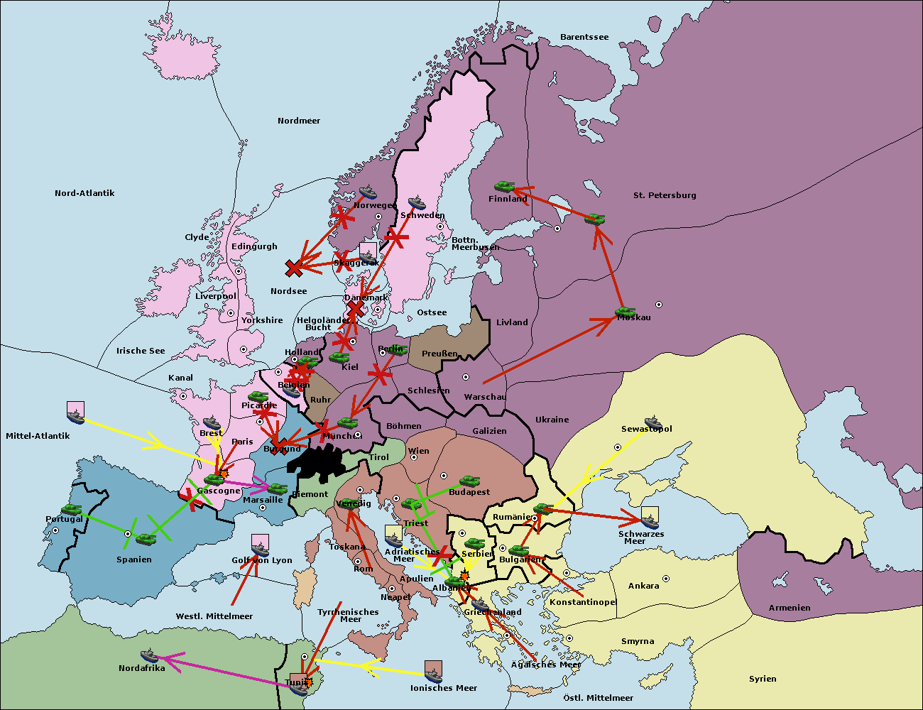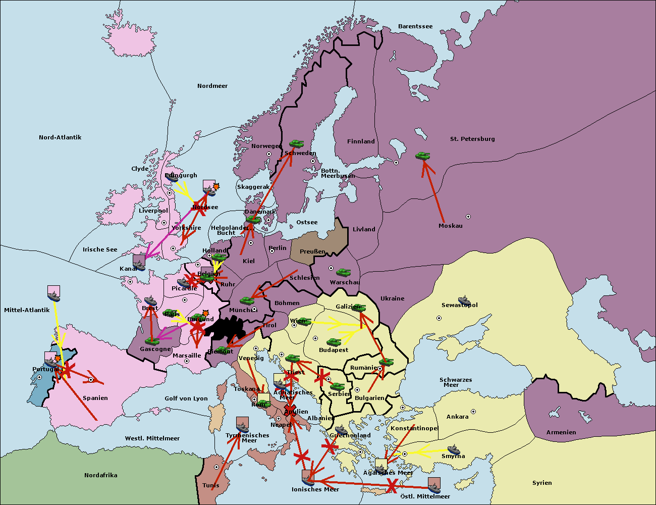 • Die Armee in Konstantinopel support hold nach Bulgarien.