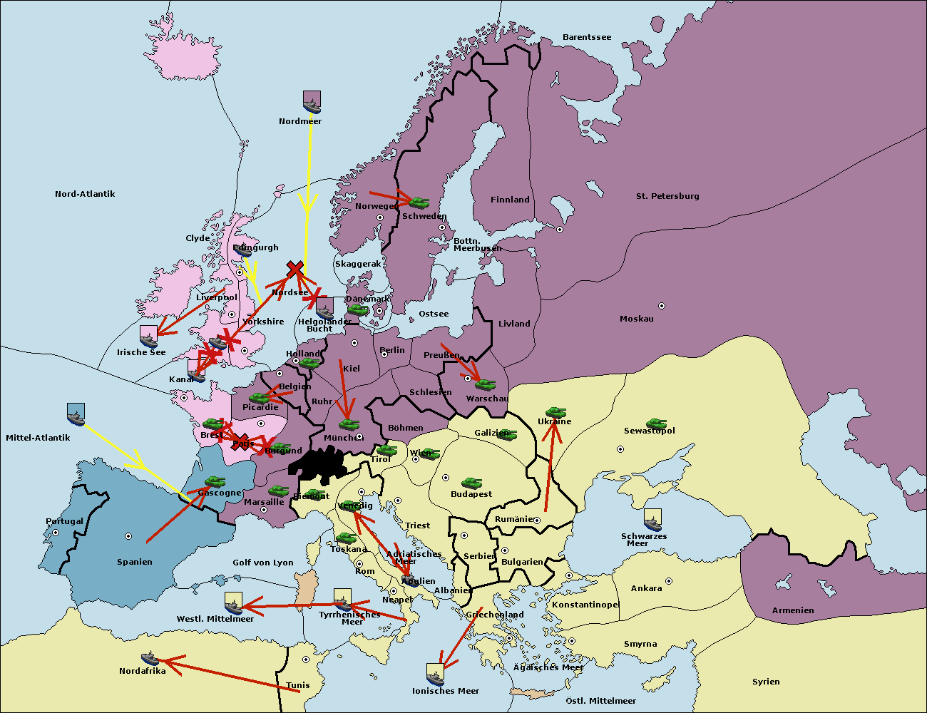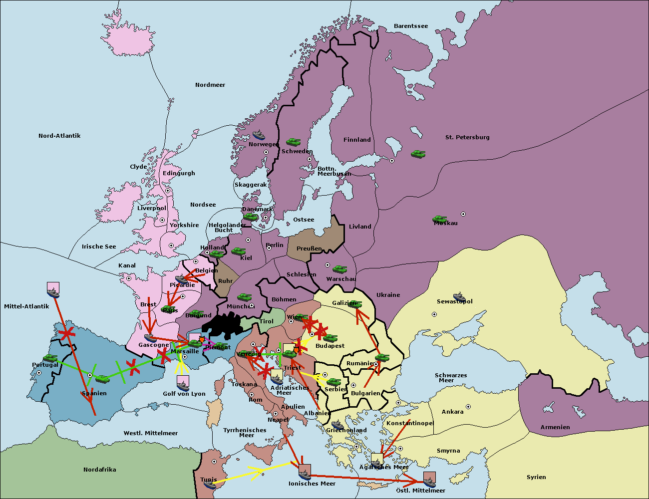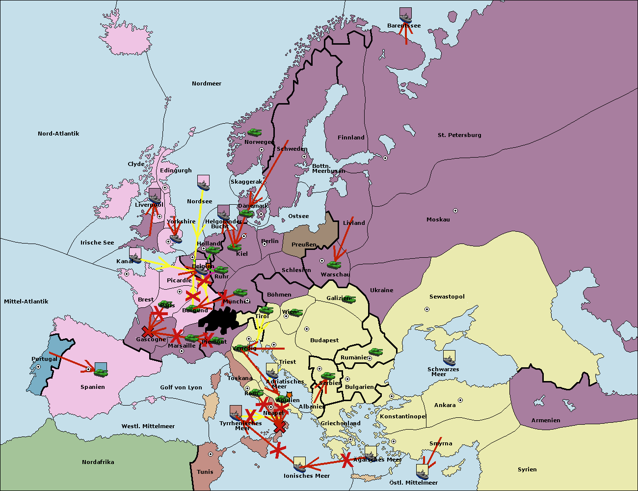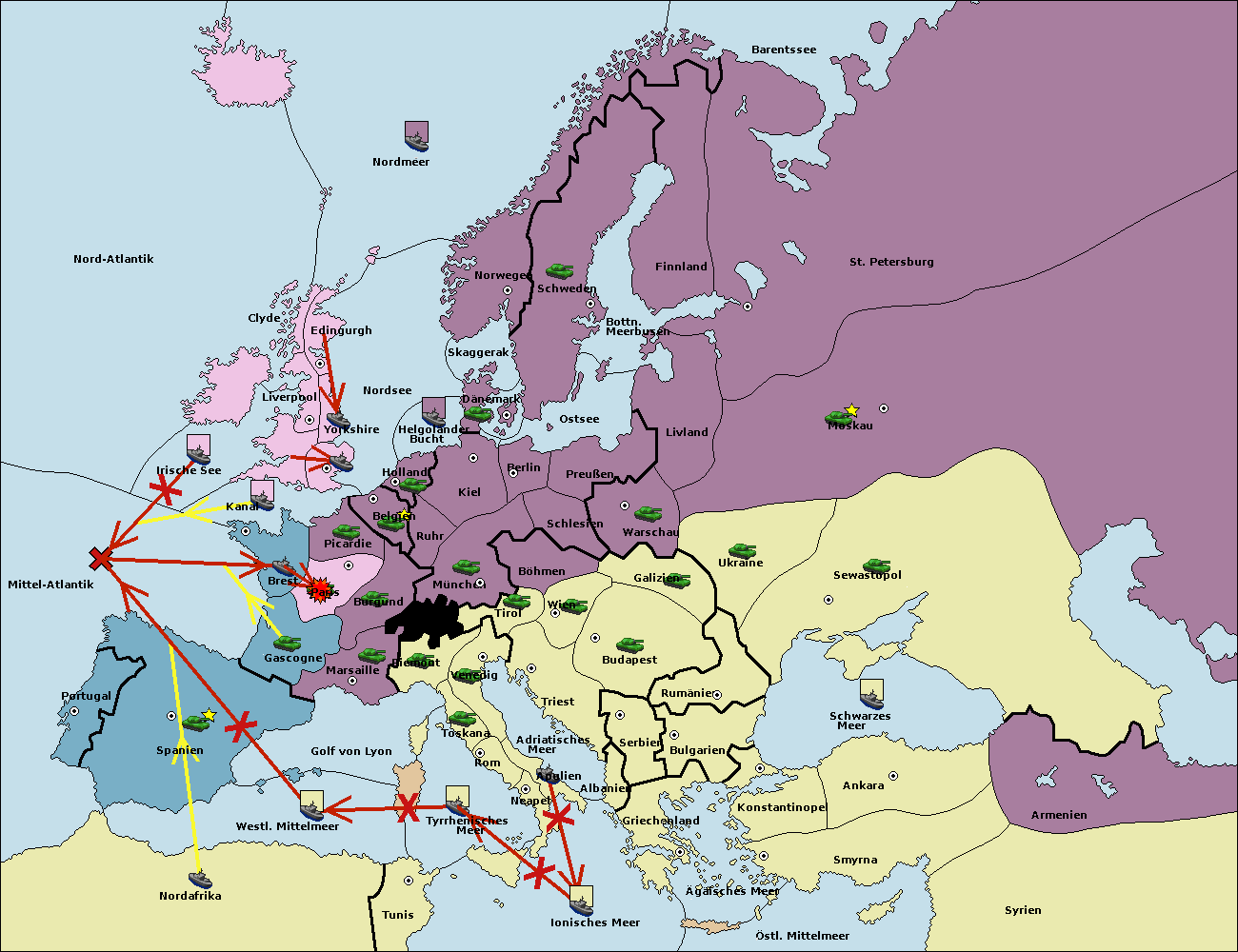 • Die Flotte in westl. Mittelmeer move nach Spanien (Südküste). (gescheitert)