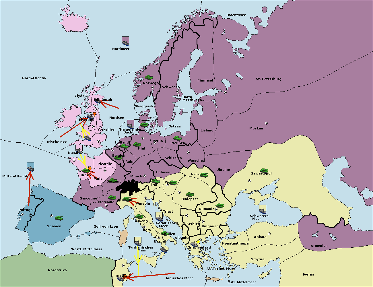 • Die Flotte in Mittel-Atlantik support move nach Kanal von Brest.