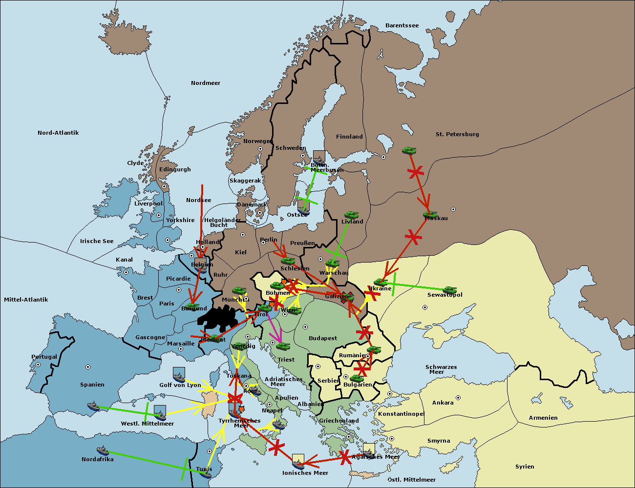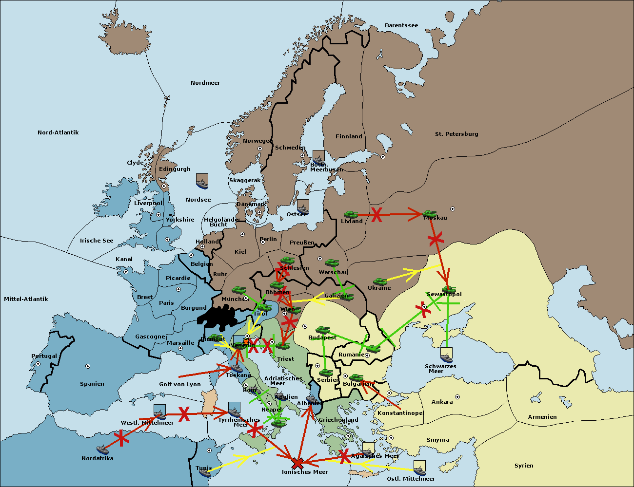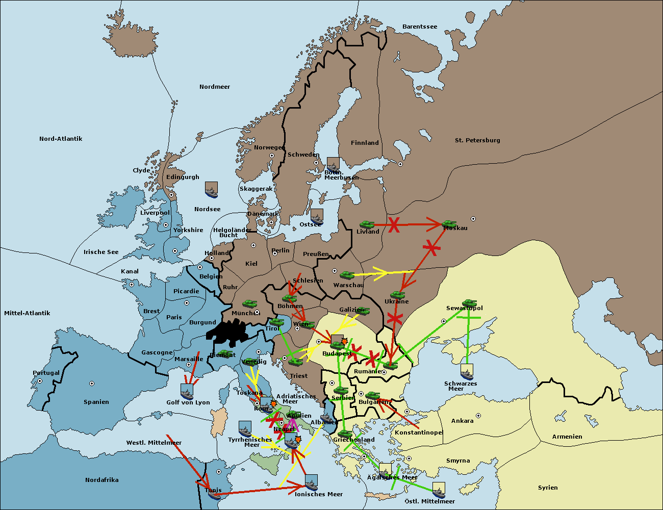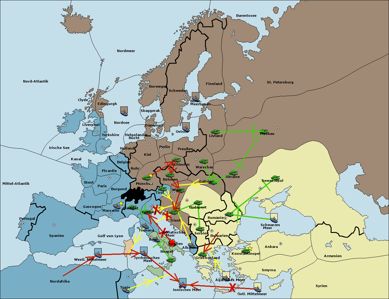 • Die Armee in Wien support move nach Triest von Tirol.
