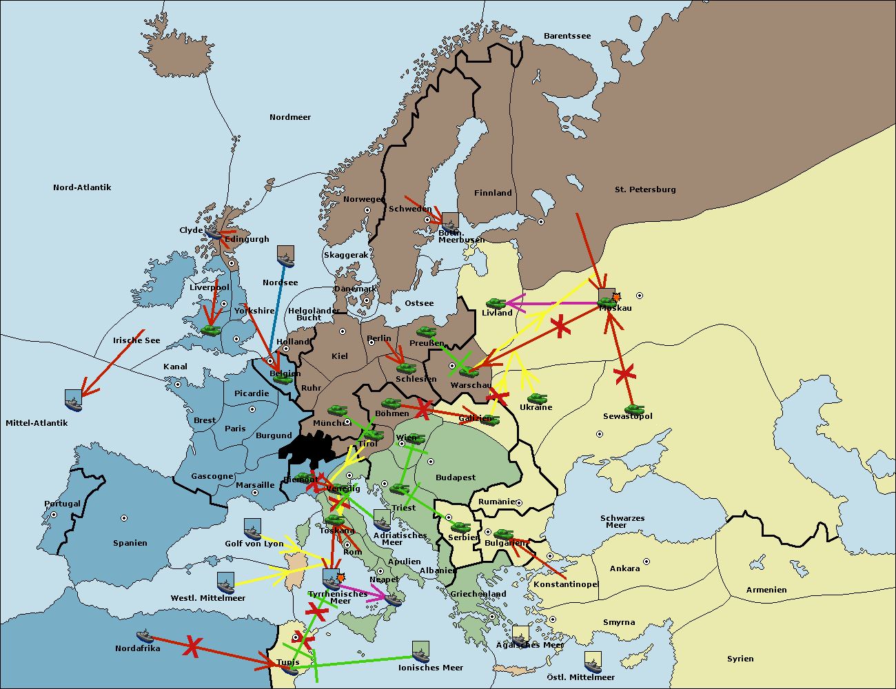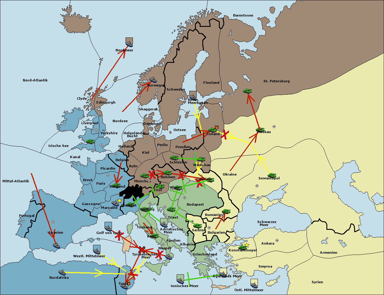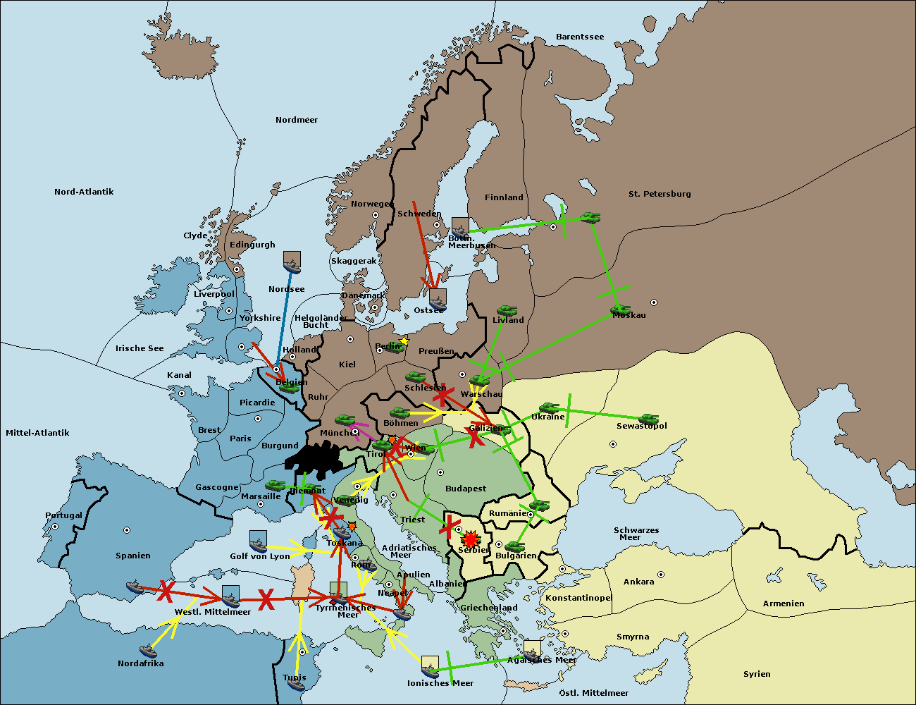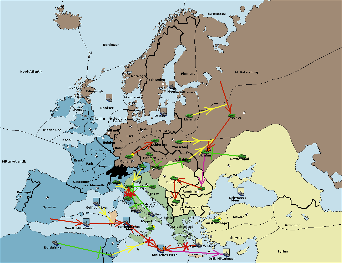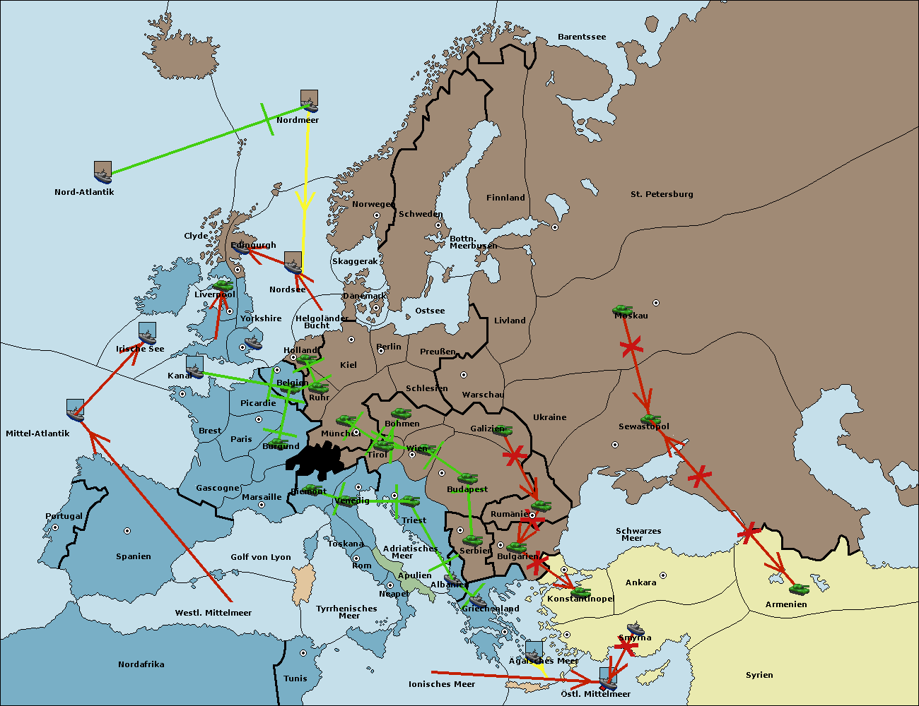 • Die Armee in Wien support move nach Triest von Tirol.