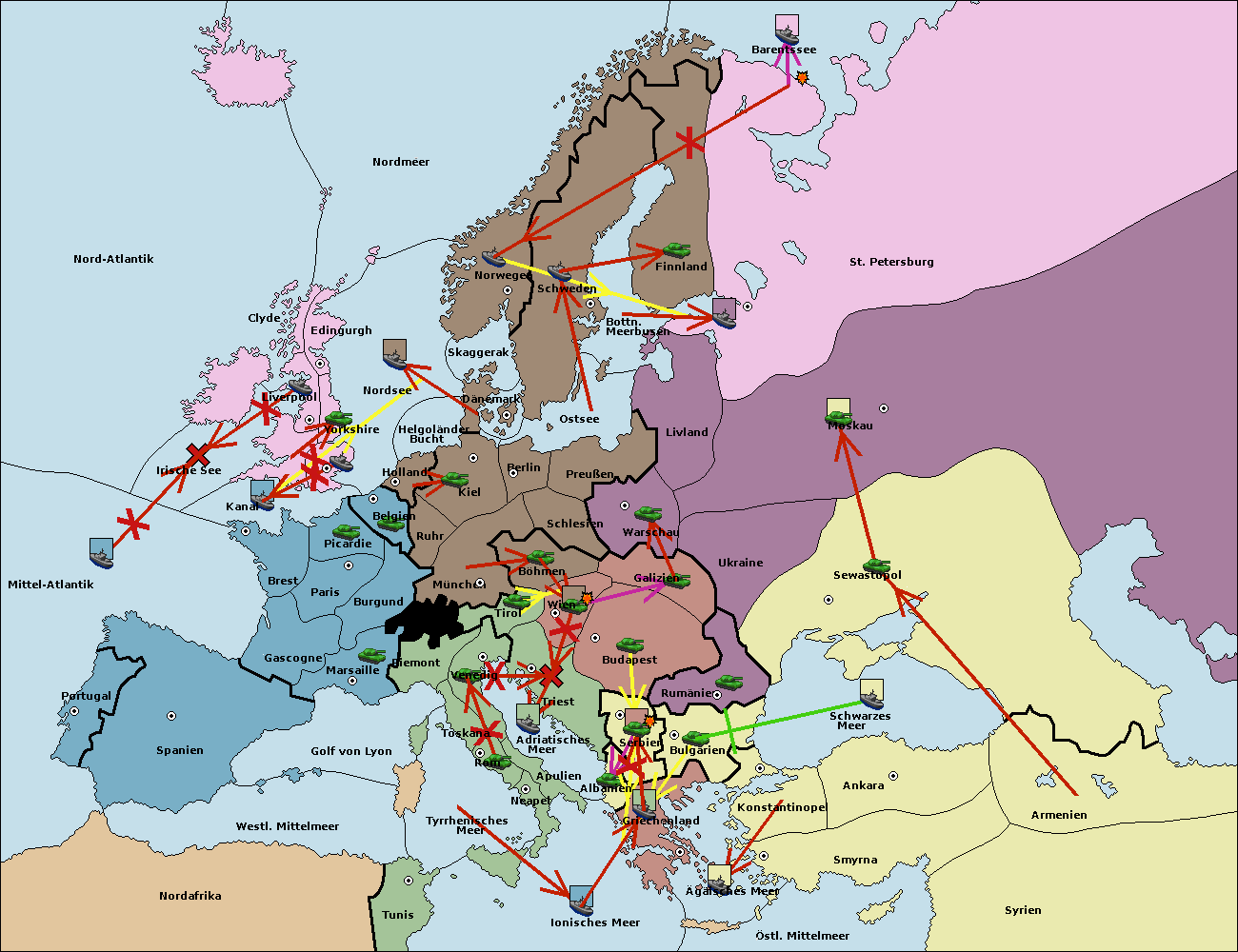 • Die Flotte in St. Petersburg (Nordküste) zieht sich nach Barentssee zurück.