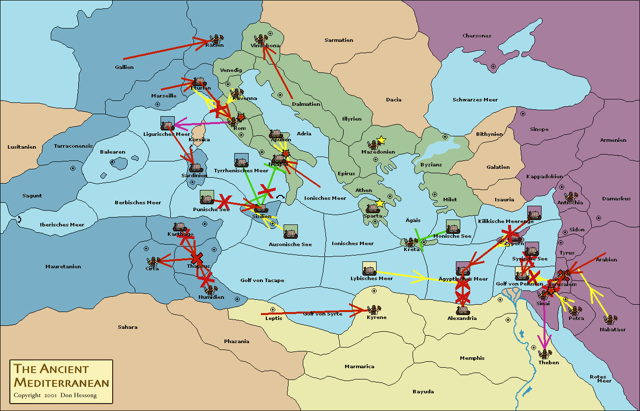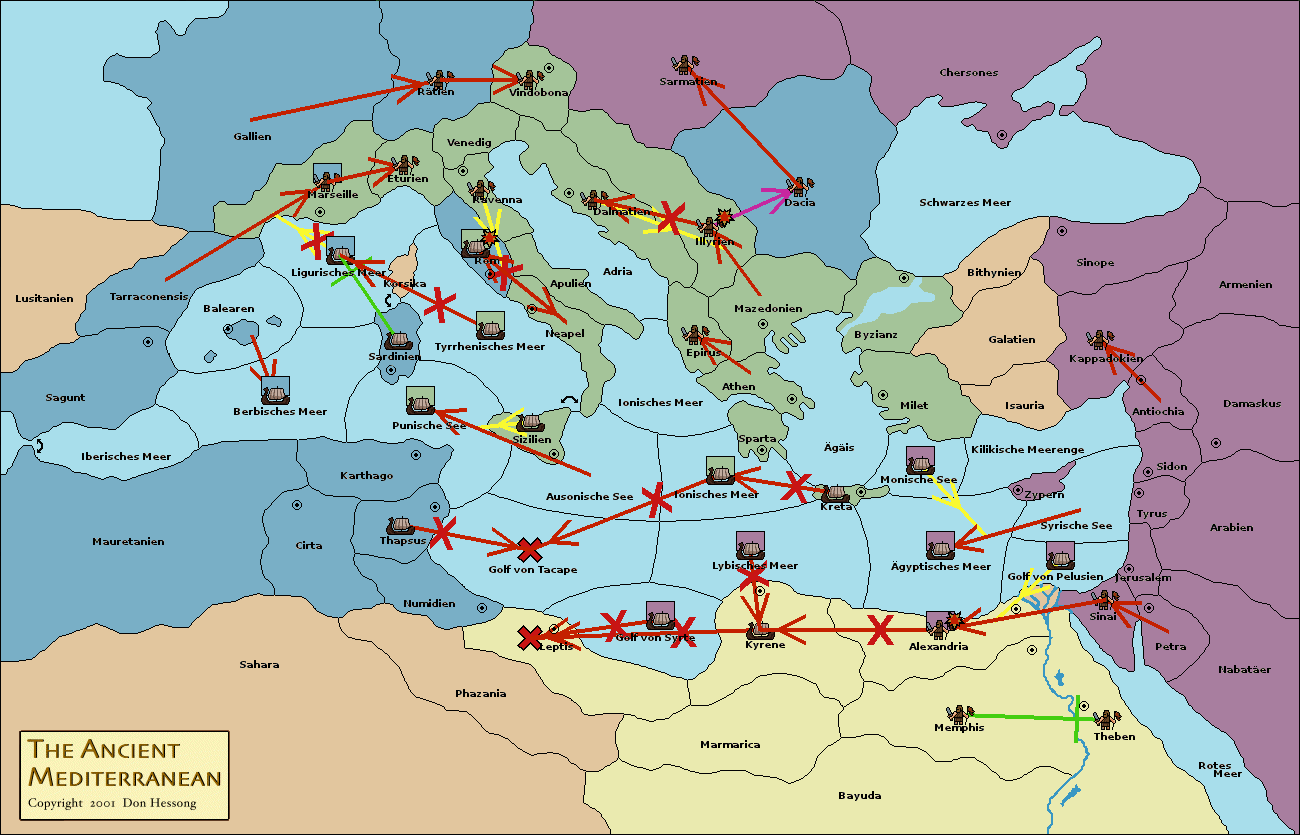 • Die Flotte in Jerusalem move nach Golf von Pelusien. (gescheitert) (verdrängt)