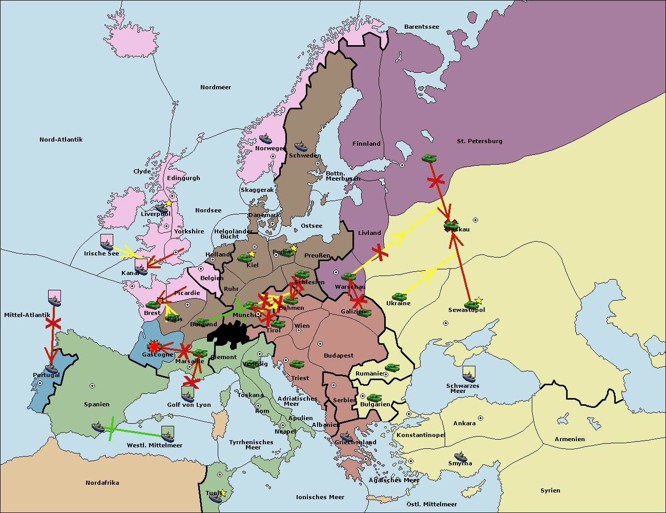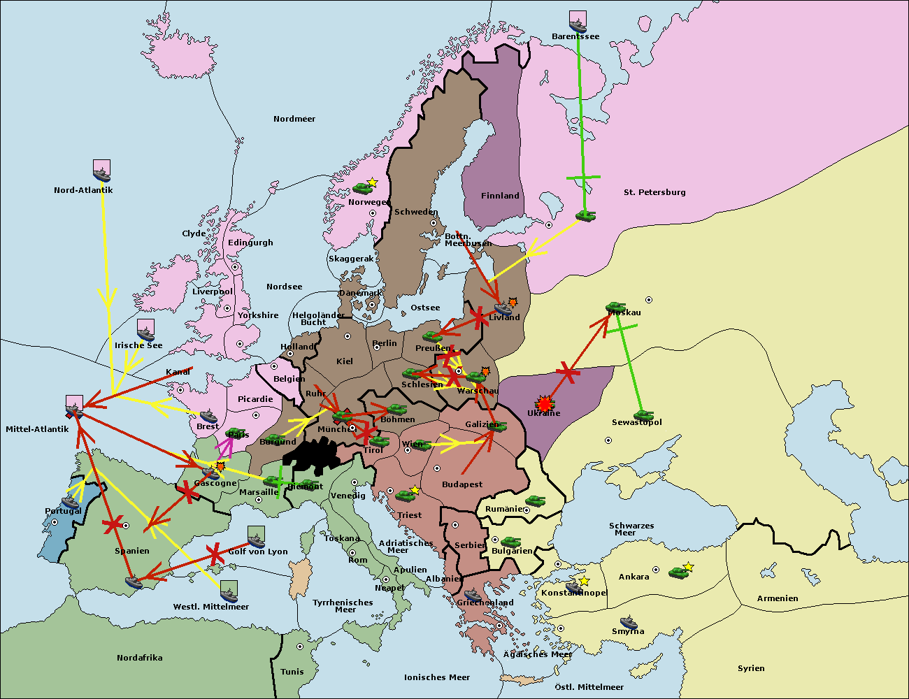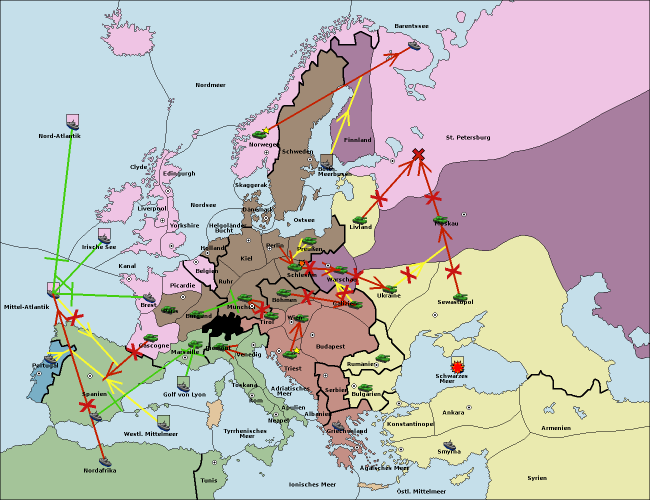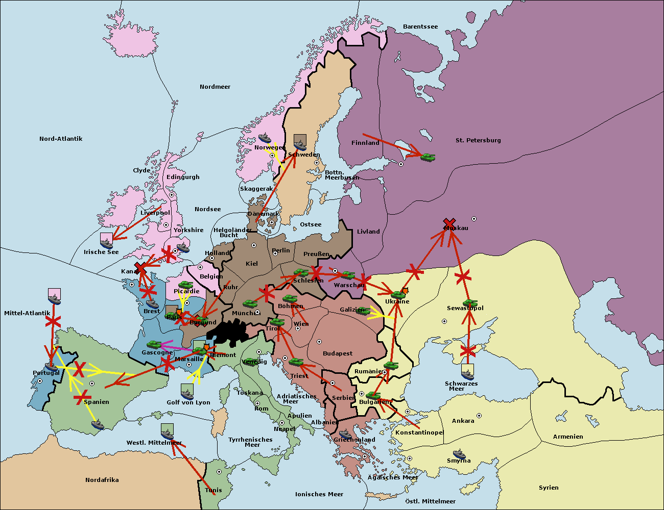 • Die Armee in Warschau support move nach Moskau von St. Petersburg. (gescheitert)