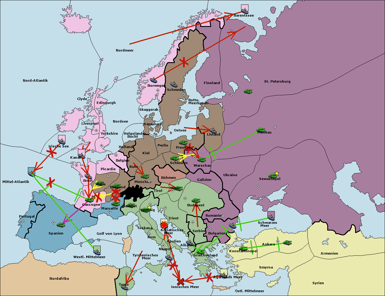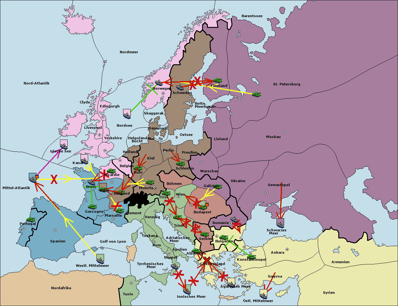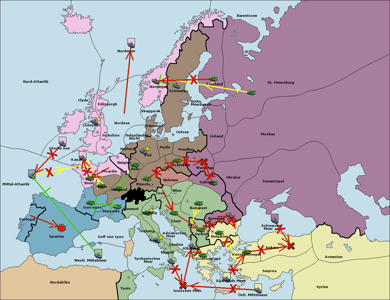• Die Armee in Konstantinopel support hold nach Bulgarien.