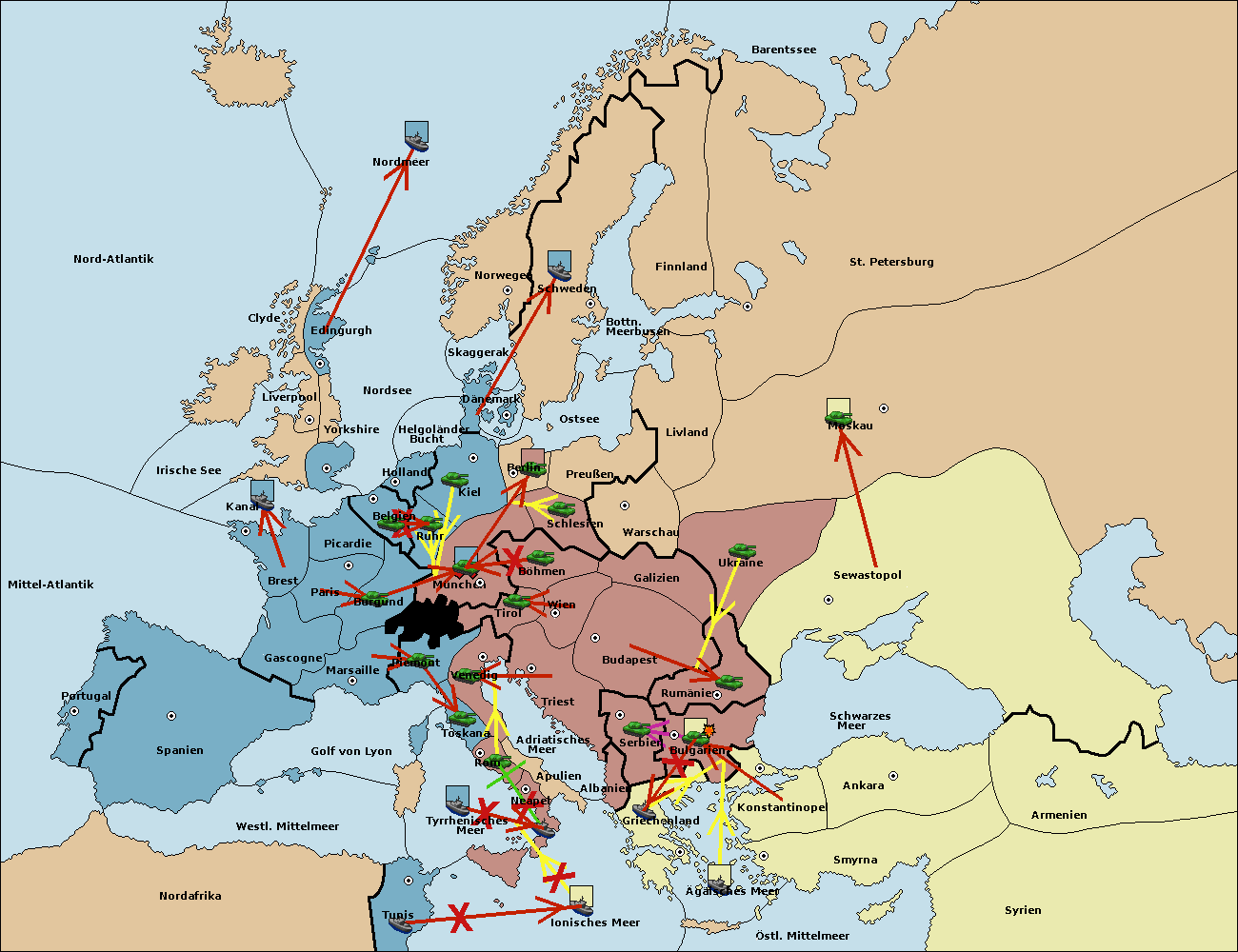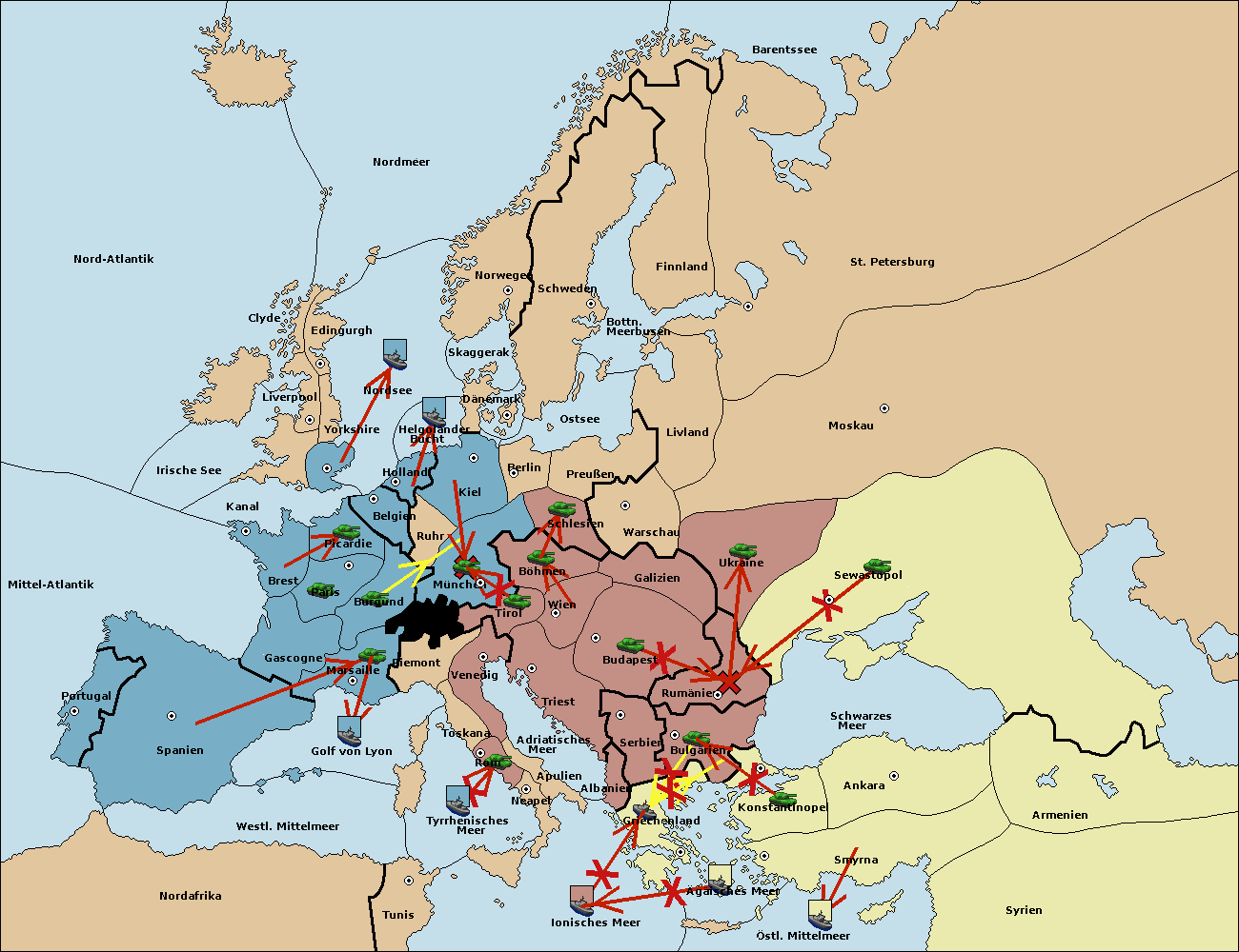 • Die Flotte in Griechenland support hold nach Bulgarien. (gescheitert)