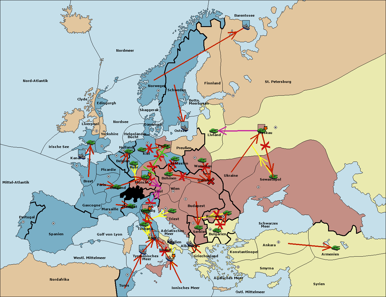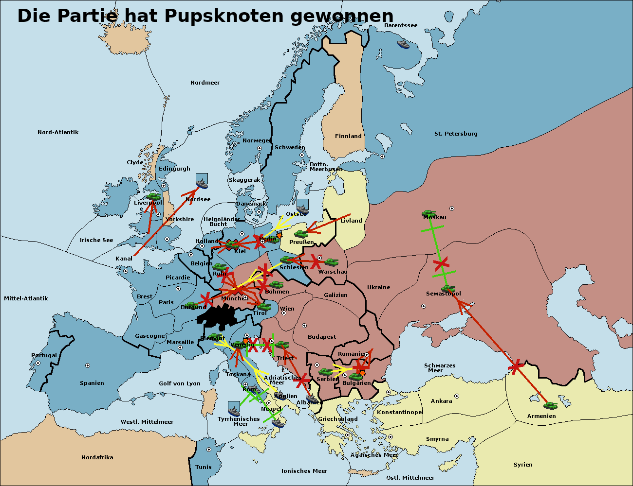 • Die Armee in Kiel support move nach München von Burgund.
