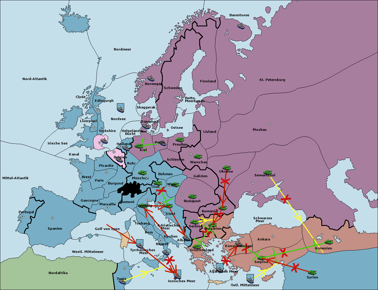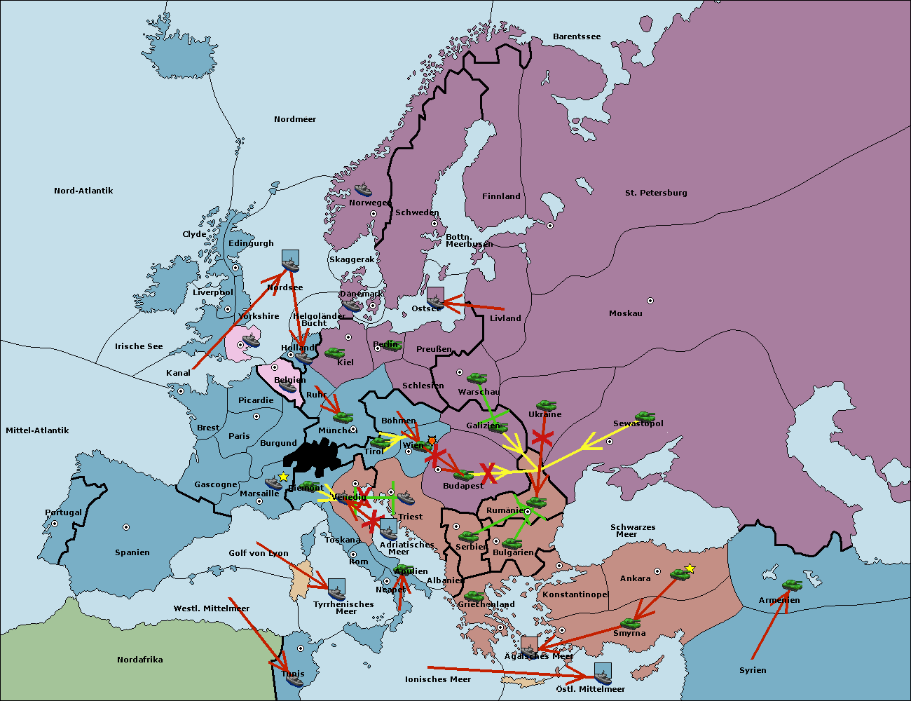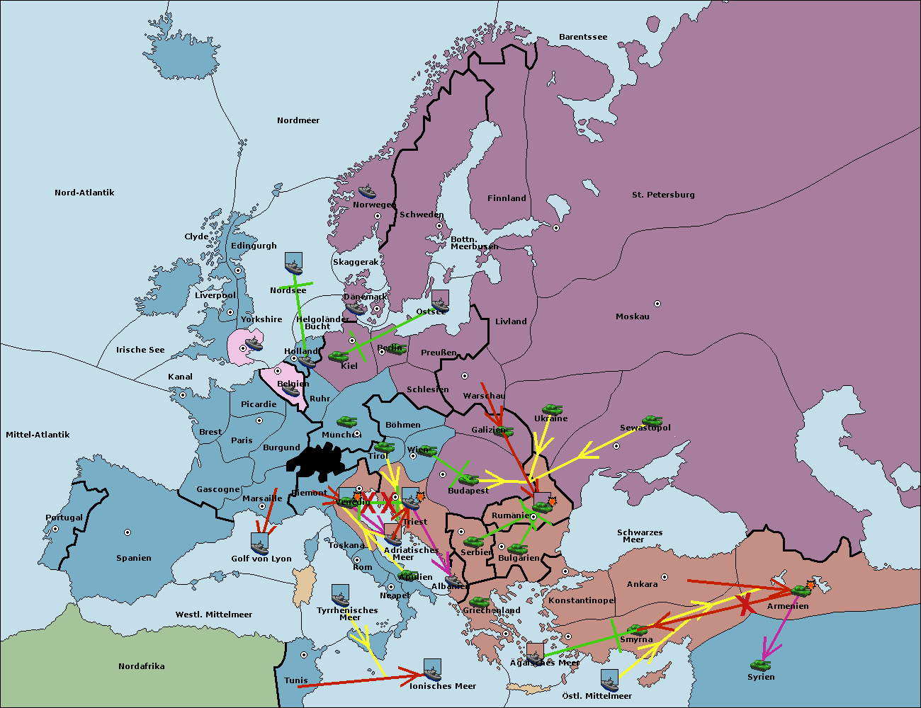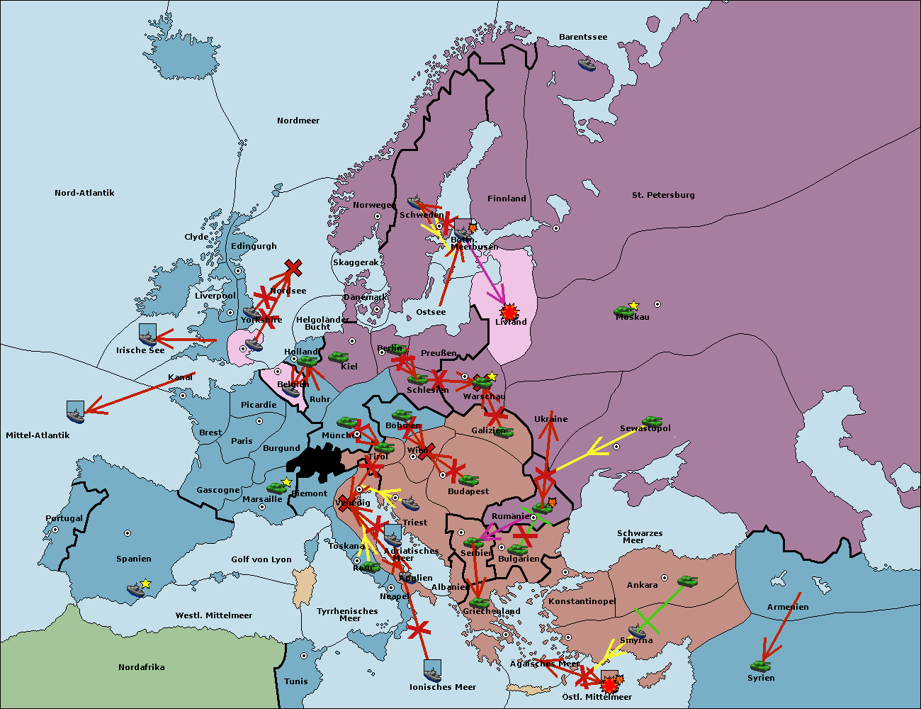 • Die Armee in Bulgarien wird zerstörtFlotte in Bulgarien gebaut.