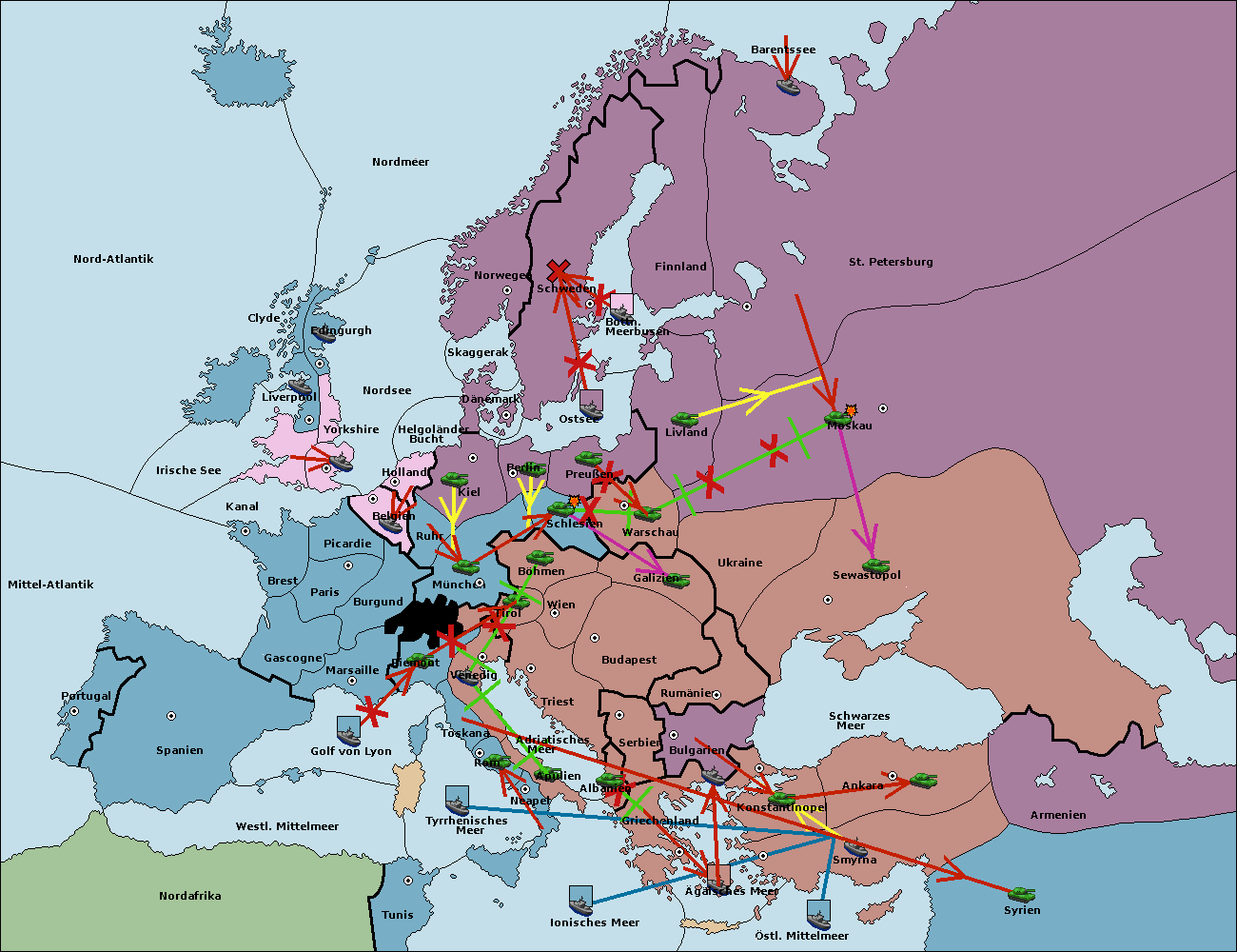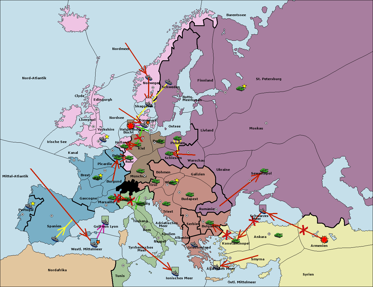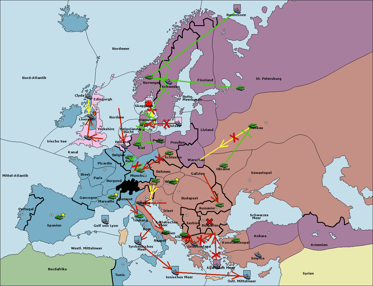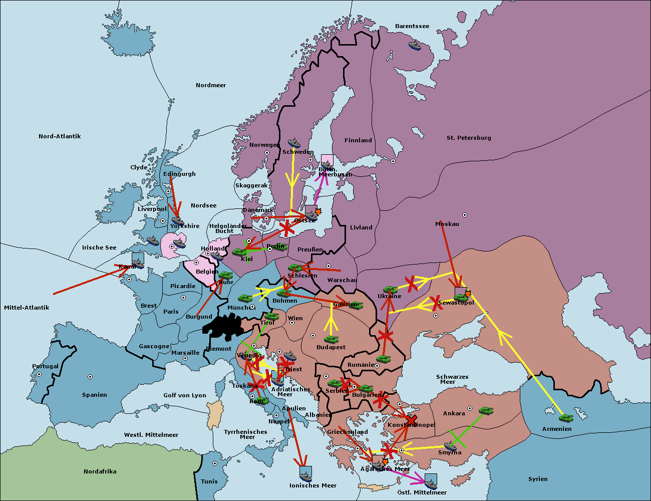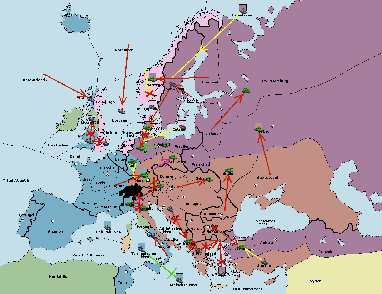 • Die Armee in Bulgarien wird zerstörtFlotte in Bulgarien gebaut.