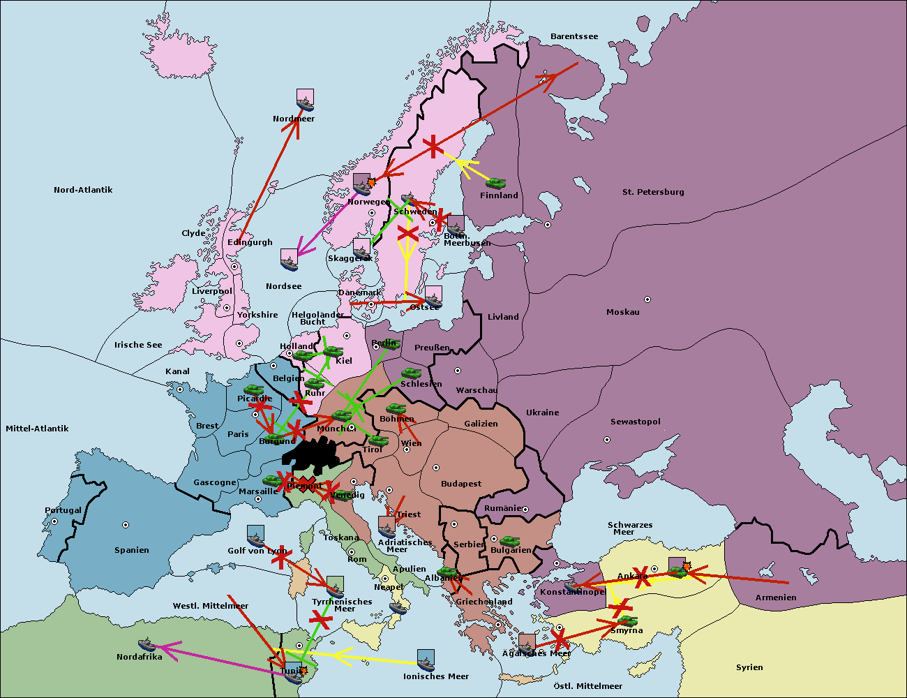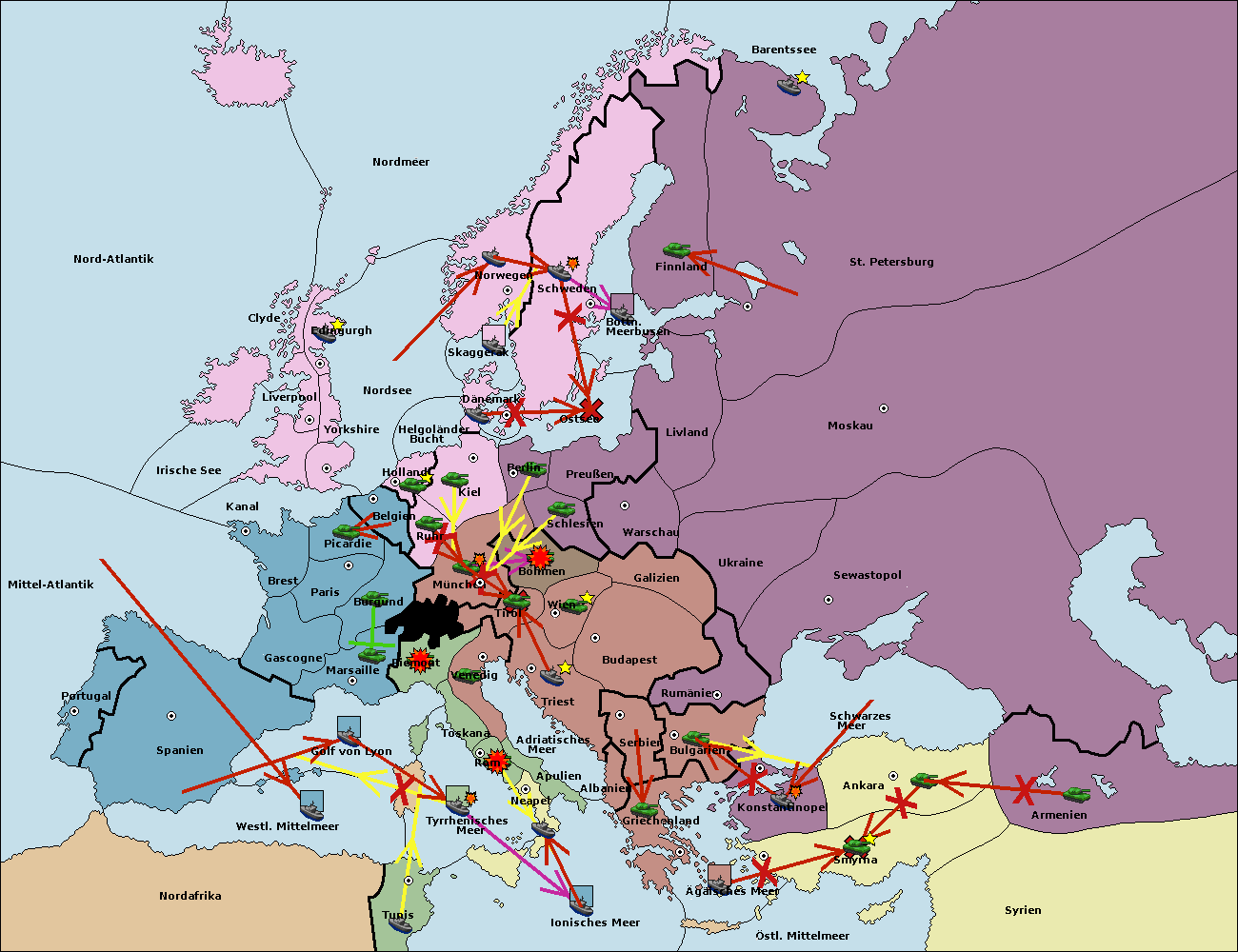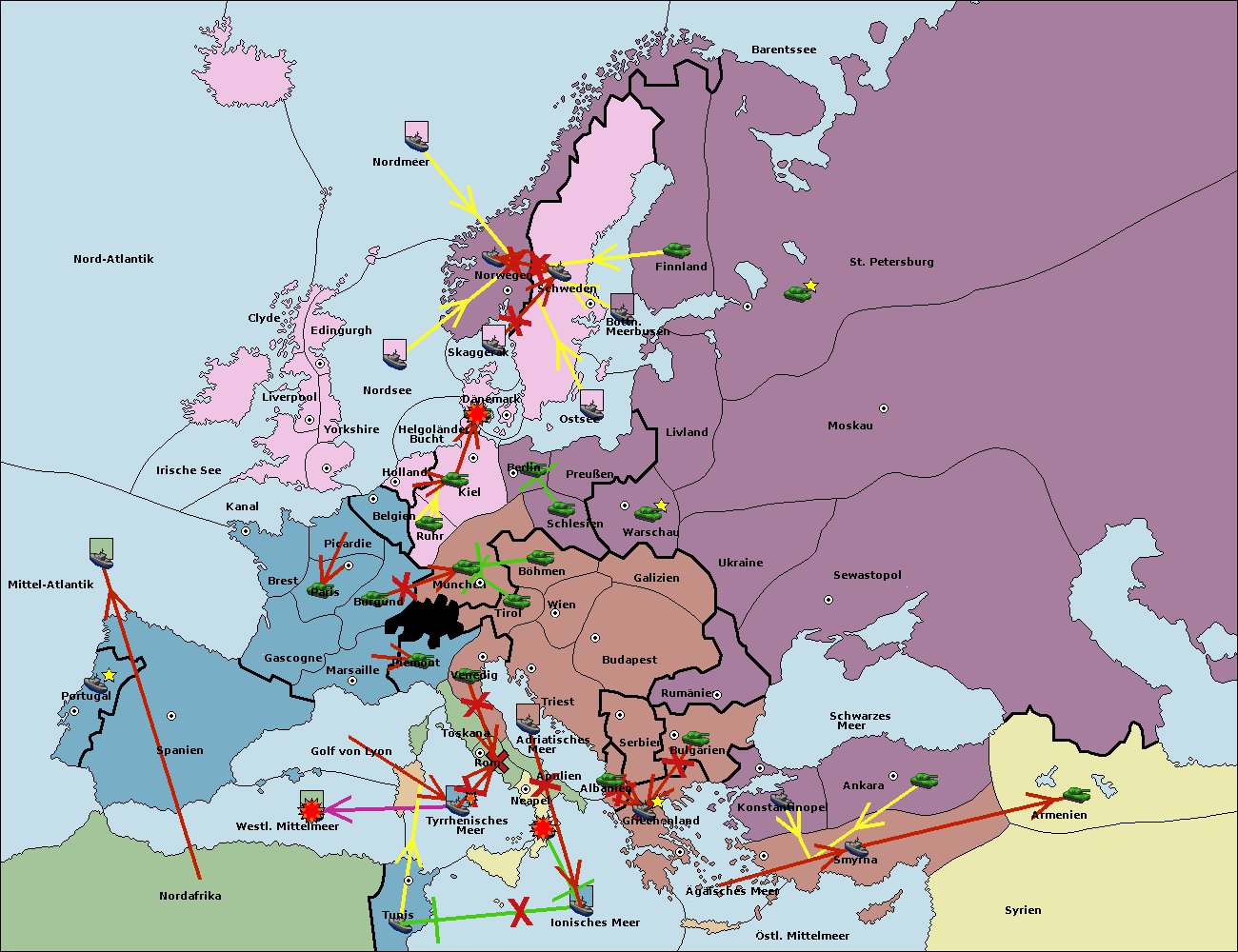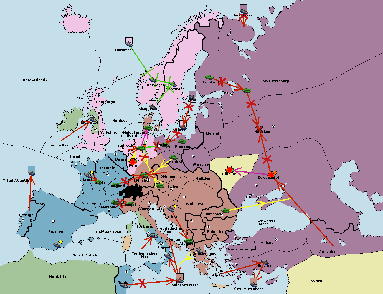 • Die Armee in Bulgarien wird zerstörtFlotte in Bulgarien gebaut.