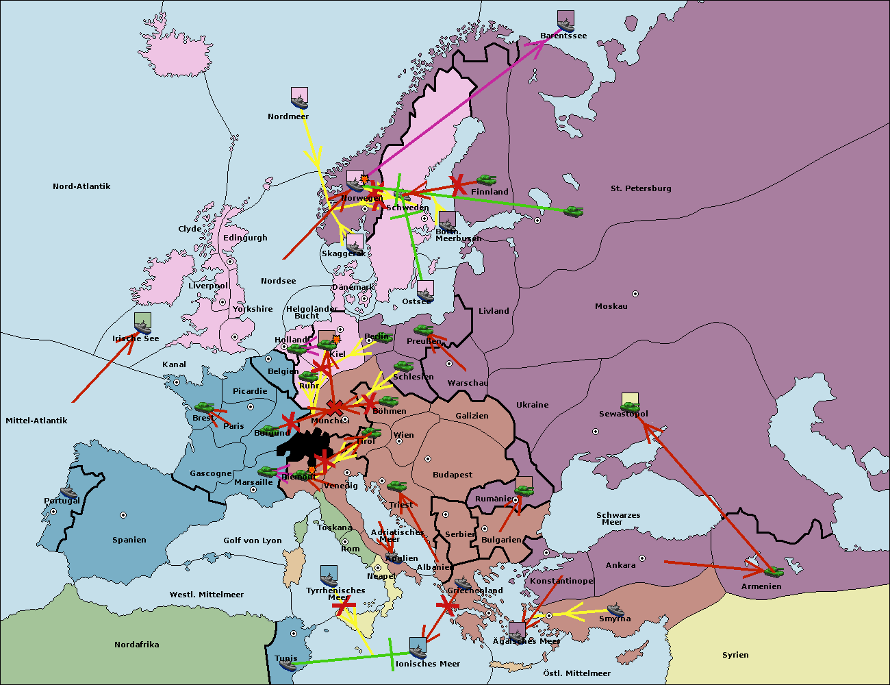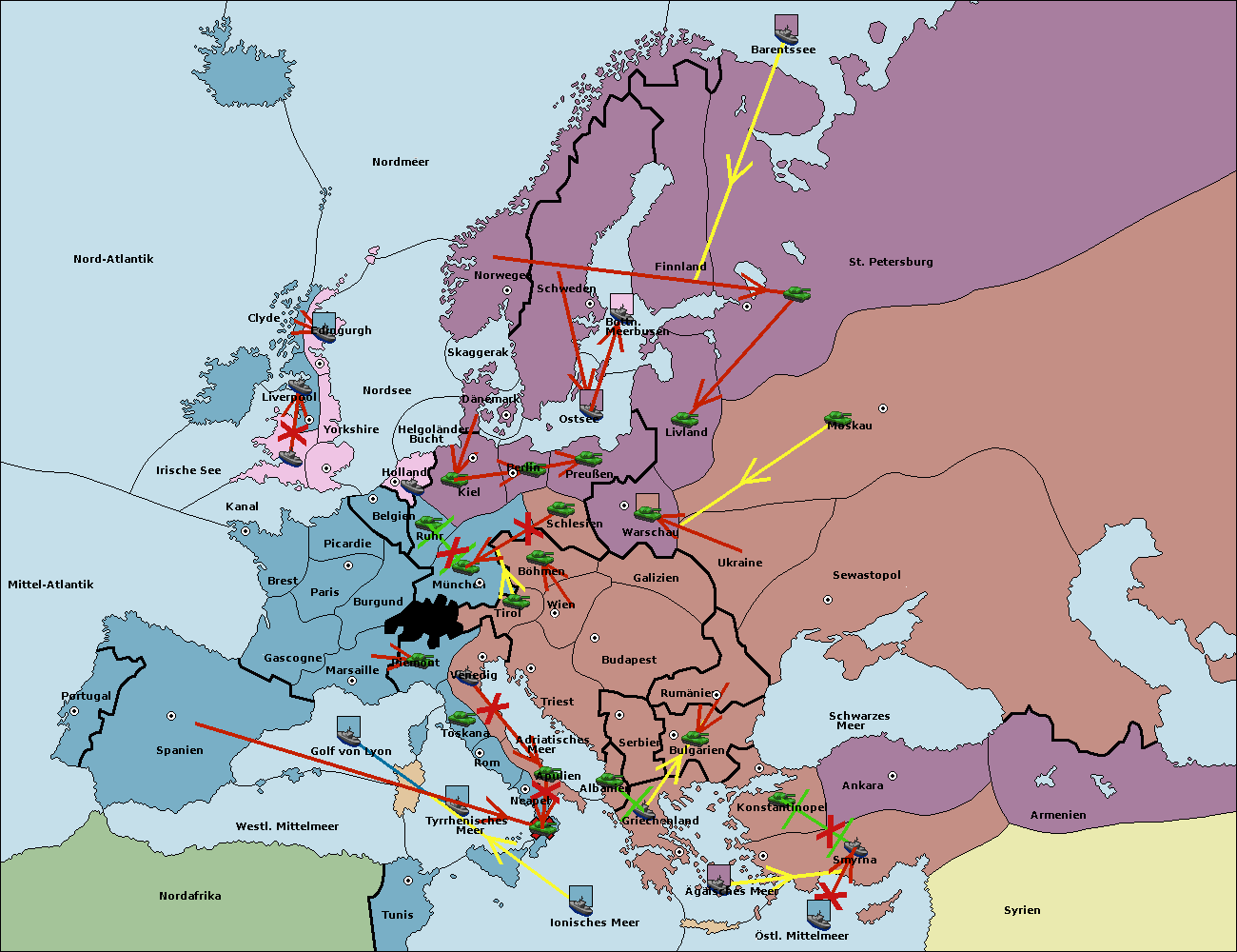 • Die Armee in Kiel wird zerstörtFlotte in Kiel gebaut.