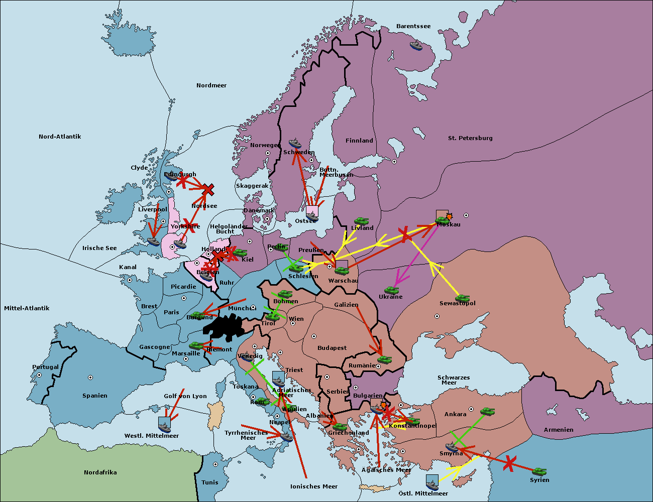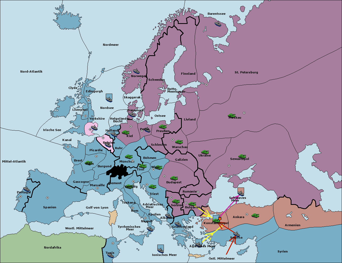 • Die Armee in Ankara support hold nach Konstantinopel.
