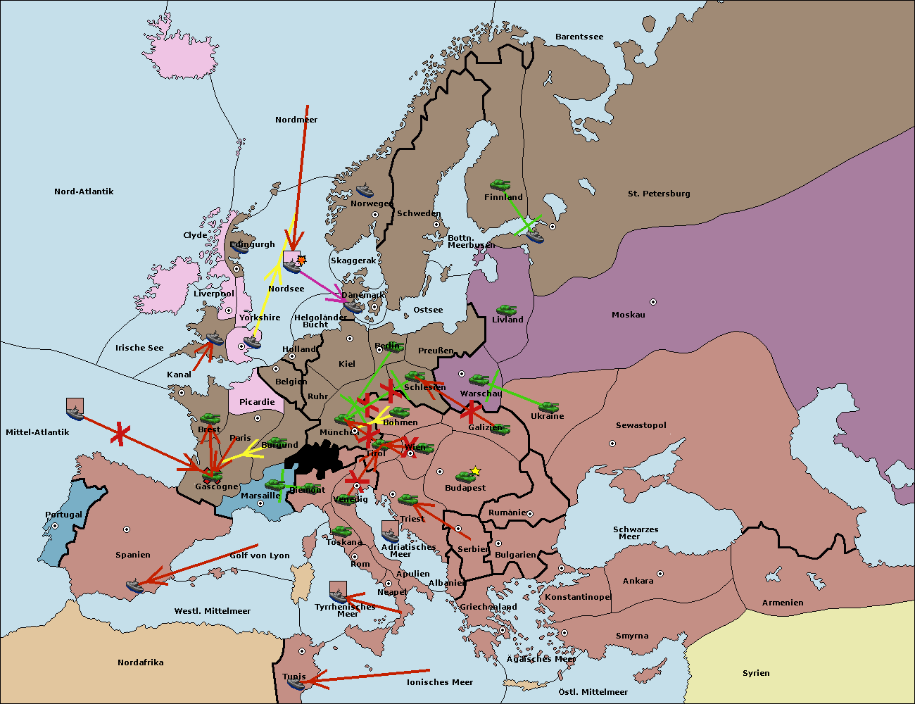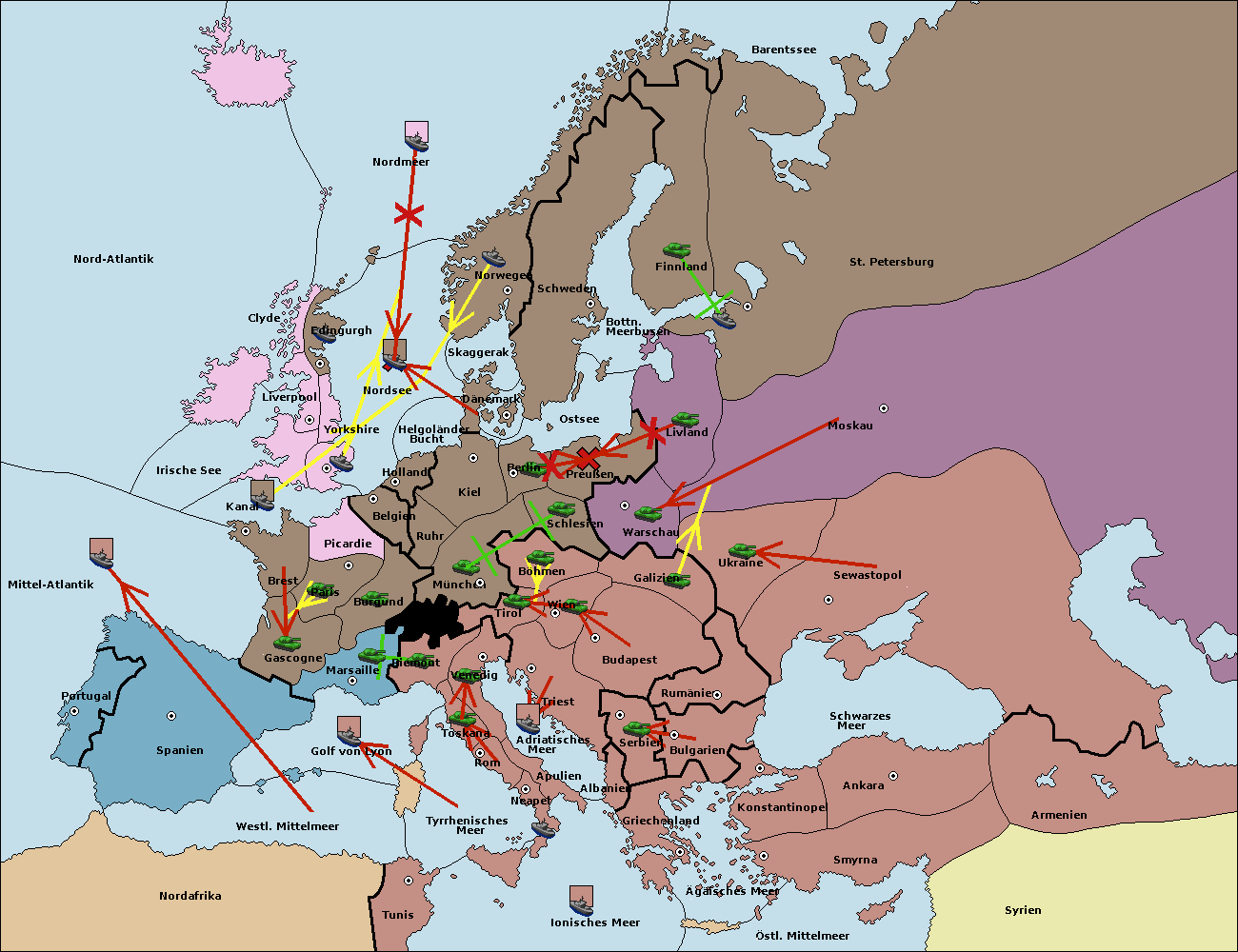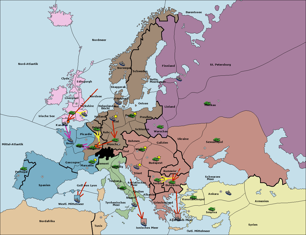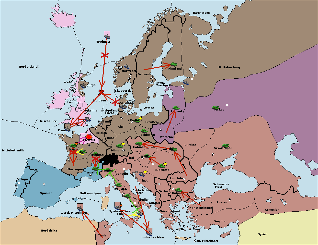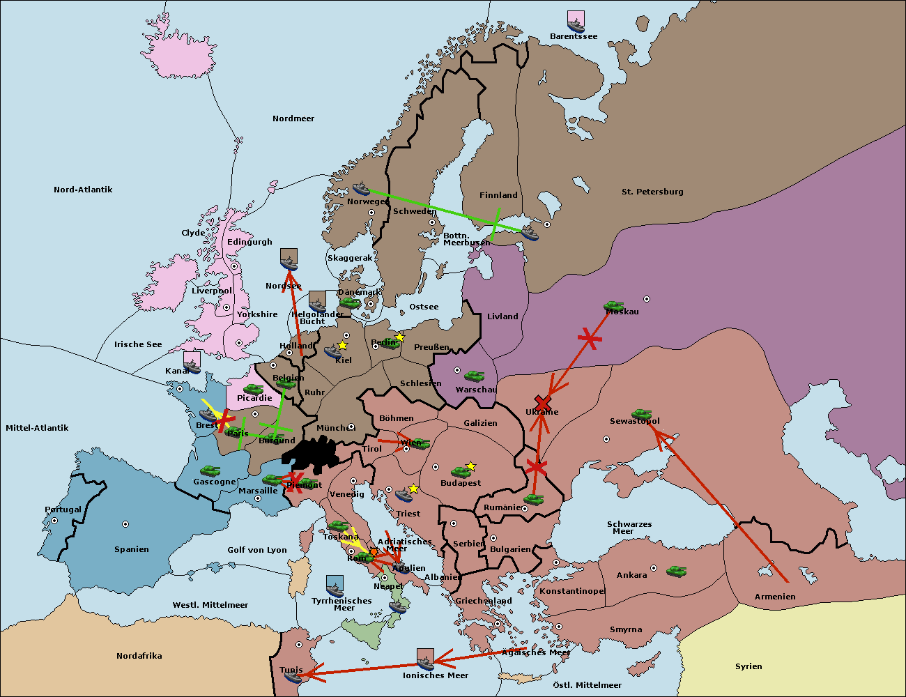 • Die Flotte in Spanien (Südküste) support move nach Marseille von Piemont.