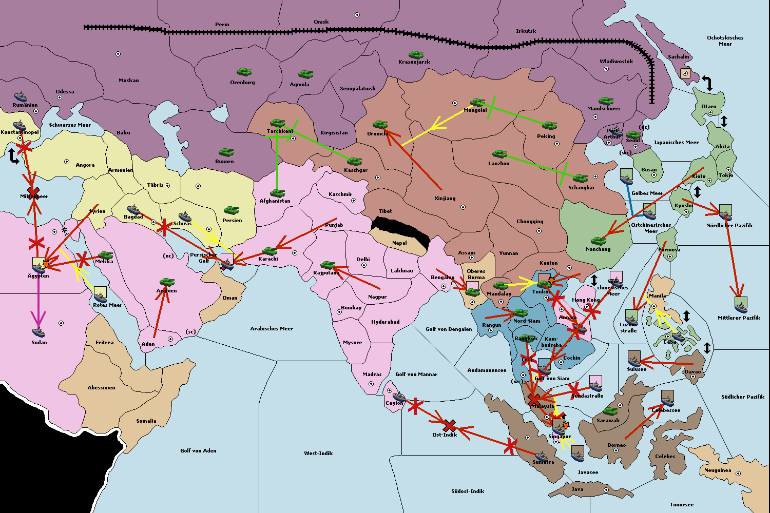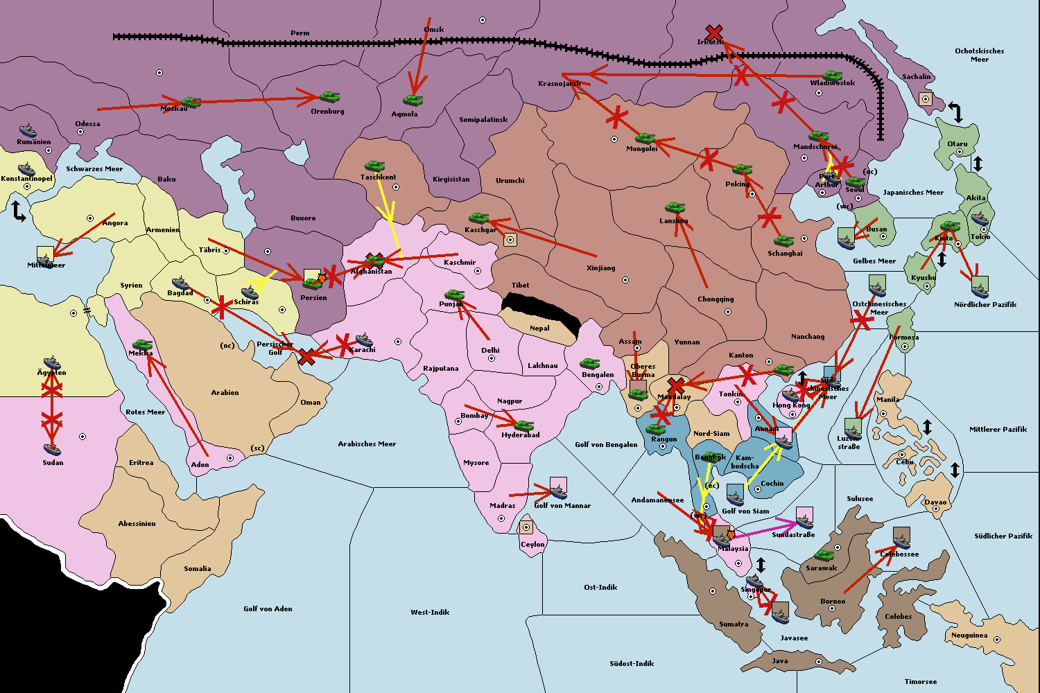 • Die Flotte in Ceylon move nach Ost-Indik. (gescheitert)