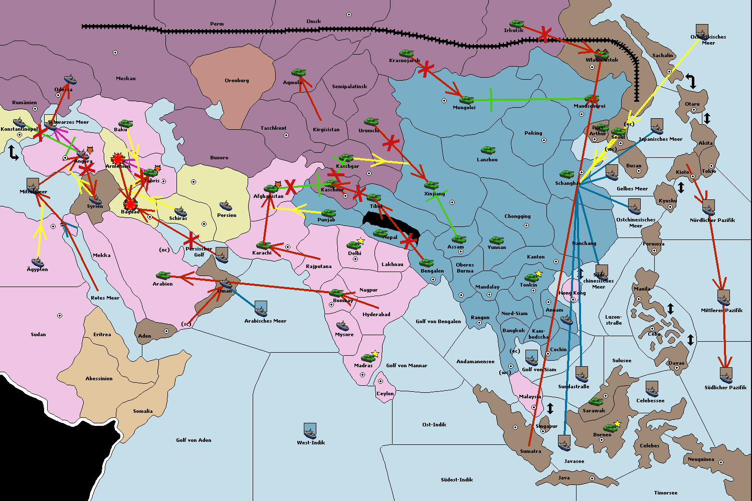 • Die Armee in Persien move nach Afghanistan. (gescheitert)